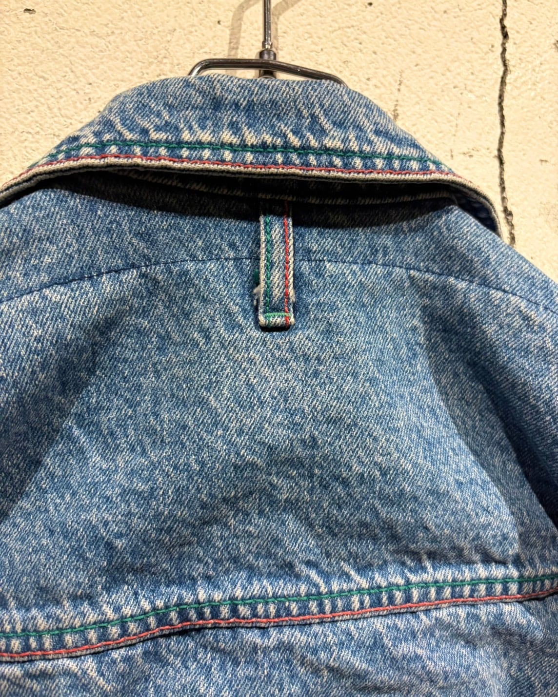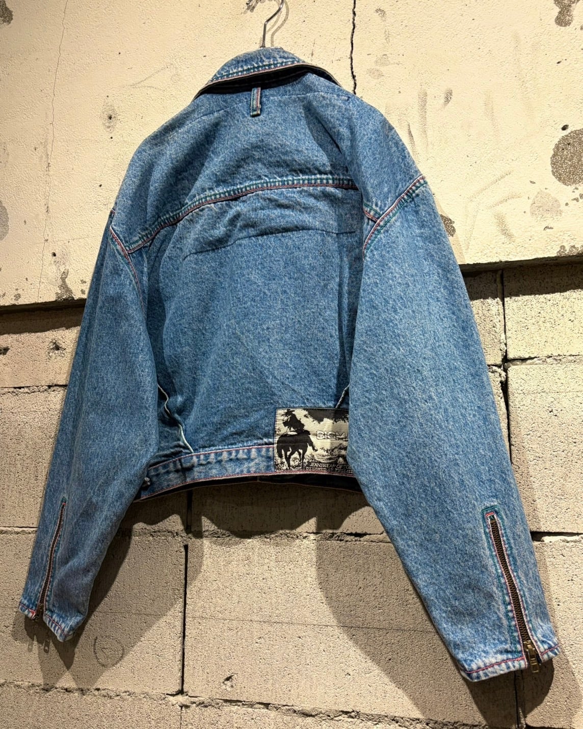 ユニークなパターンワーク、そしてファッションとしての完成度が合わさった、短丈デニムライダースの逸品です。