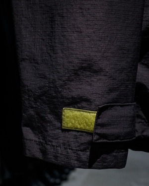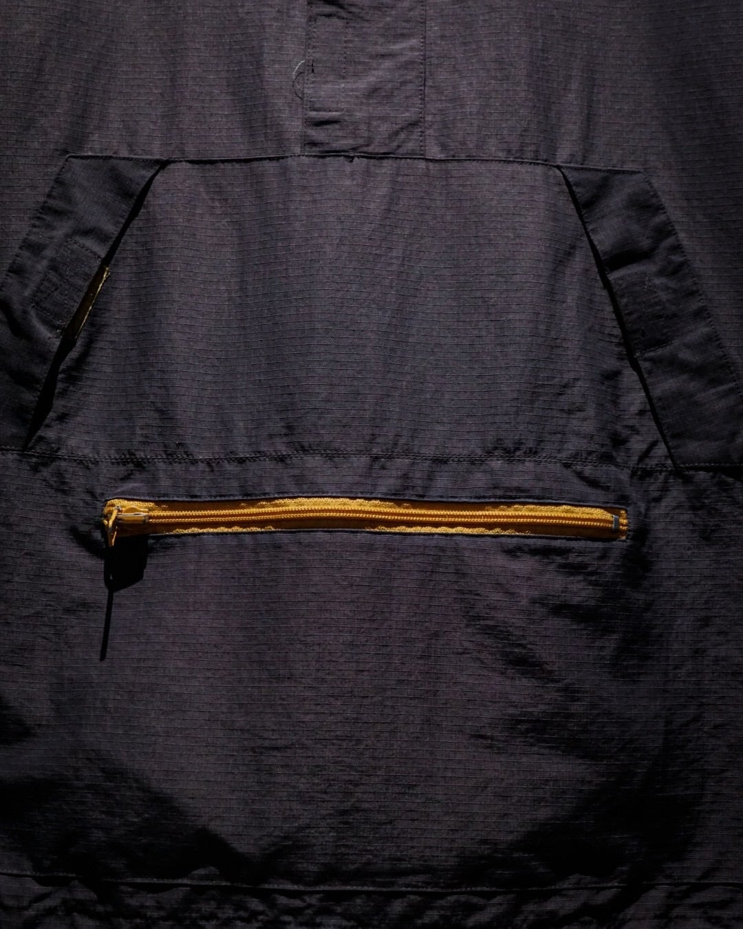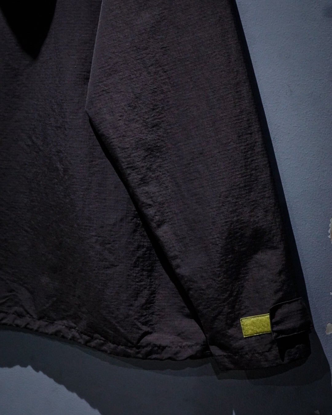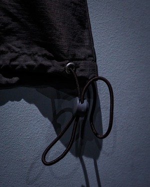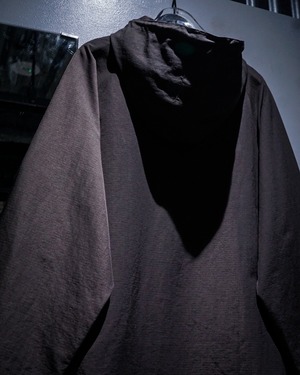フロントにはハーフジップ仕様に加え、存在感のあるカンガルーポケットを配置。さらに袖口のベルクロやドローコードなど、アノラックらしいギミックも抜かりなく備え、デザイン性と実用性を兼ね備えた構造に。胸元にはブランドロゴの刺繍がさりげなく入り、ミニマルな中にしっかりとアイデンティティを感じさせます。