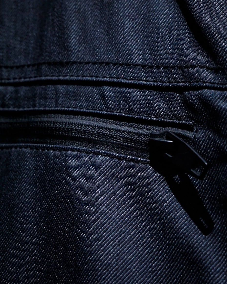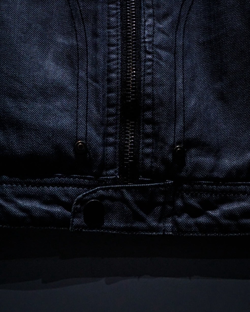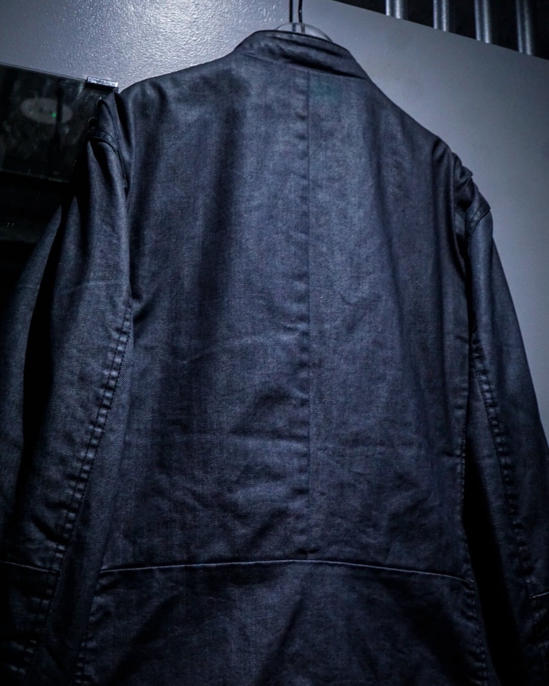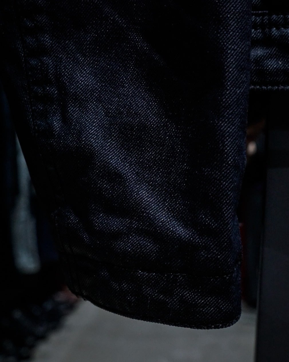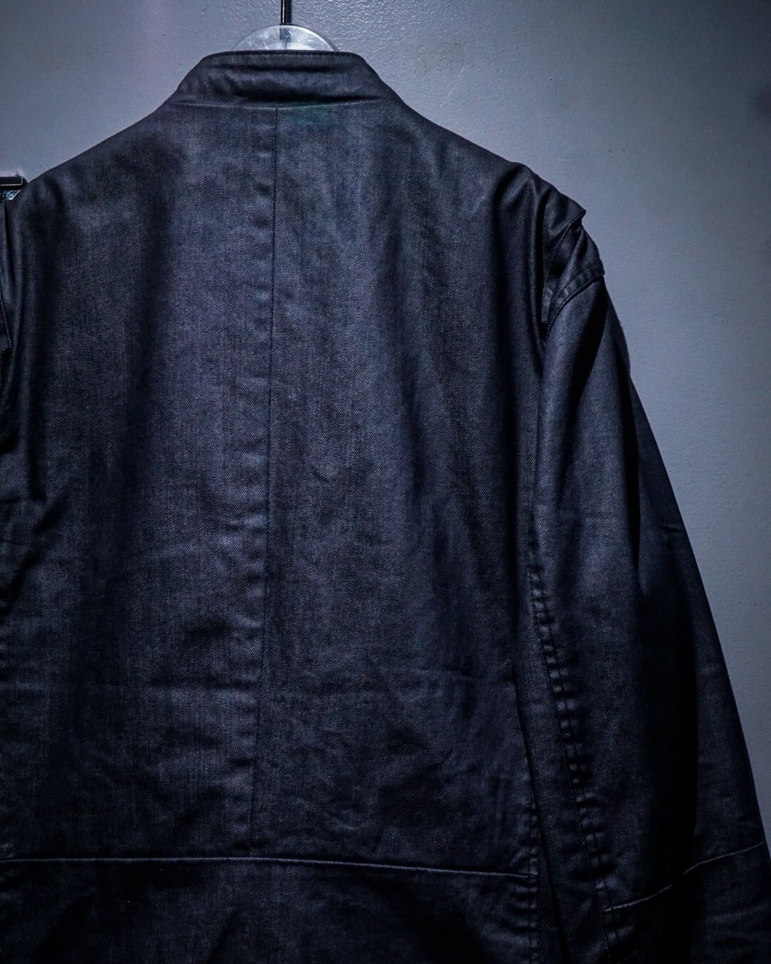 コーティングデニムの光沢と、盛り込まれたギミックが合わさった重厚感のあるルックスが超格好良い、、、