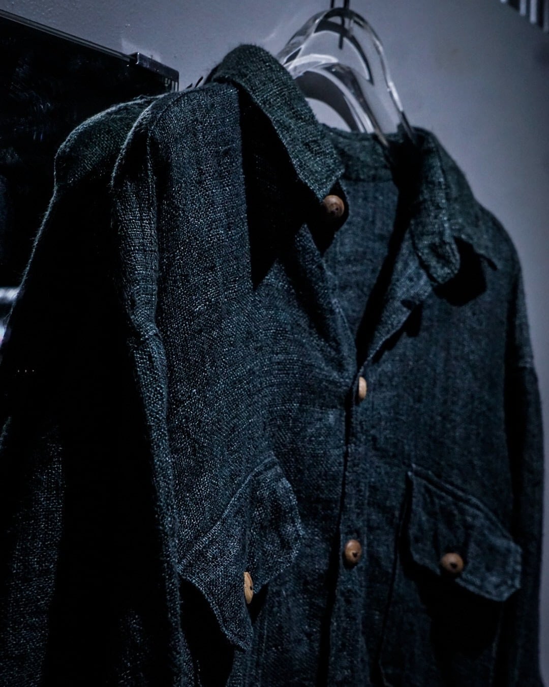本来は洋服用途ではなく麻袋などに用いられる荒いジュートをボディに採用した、アルチザンライクな空気感を纏ったジュートシャツ。