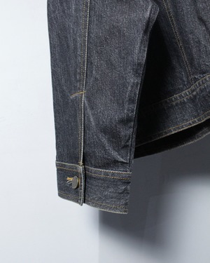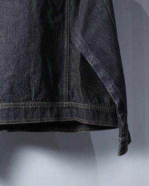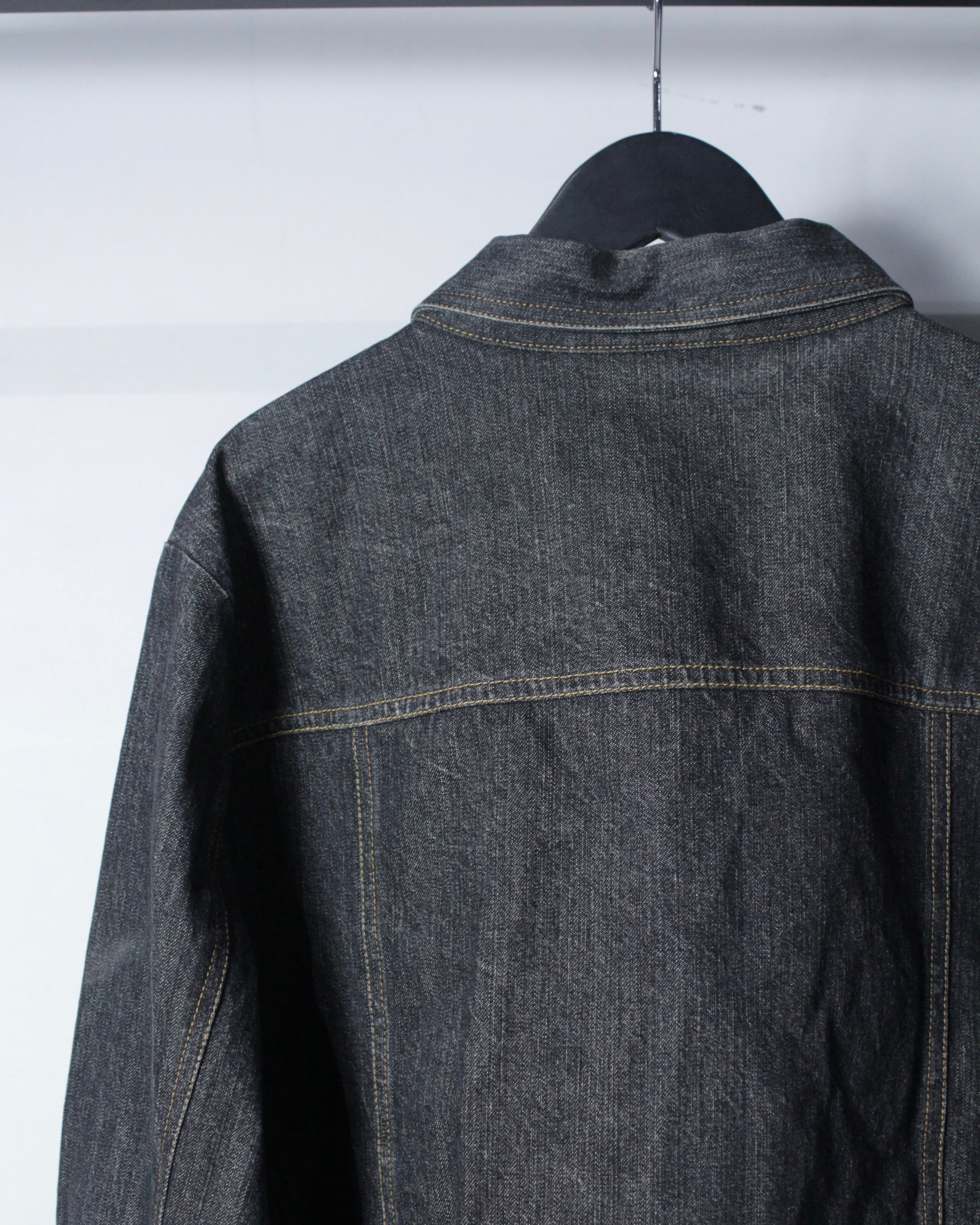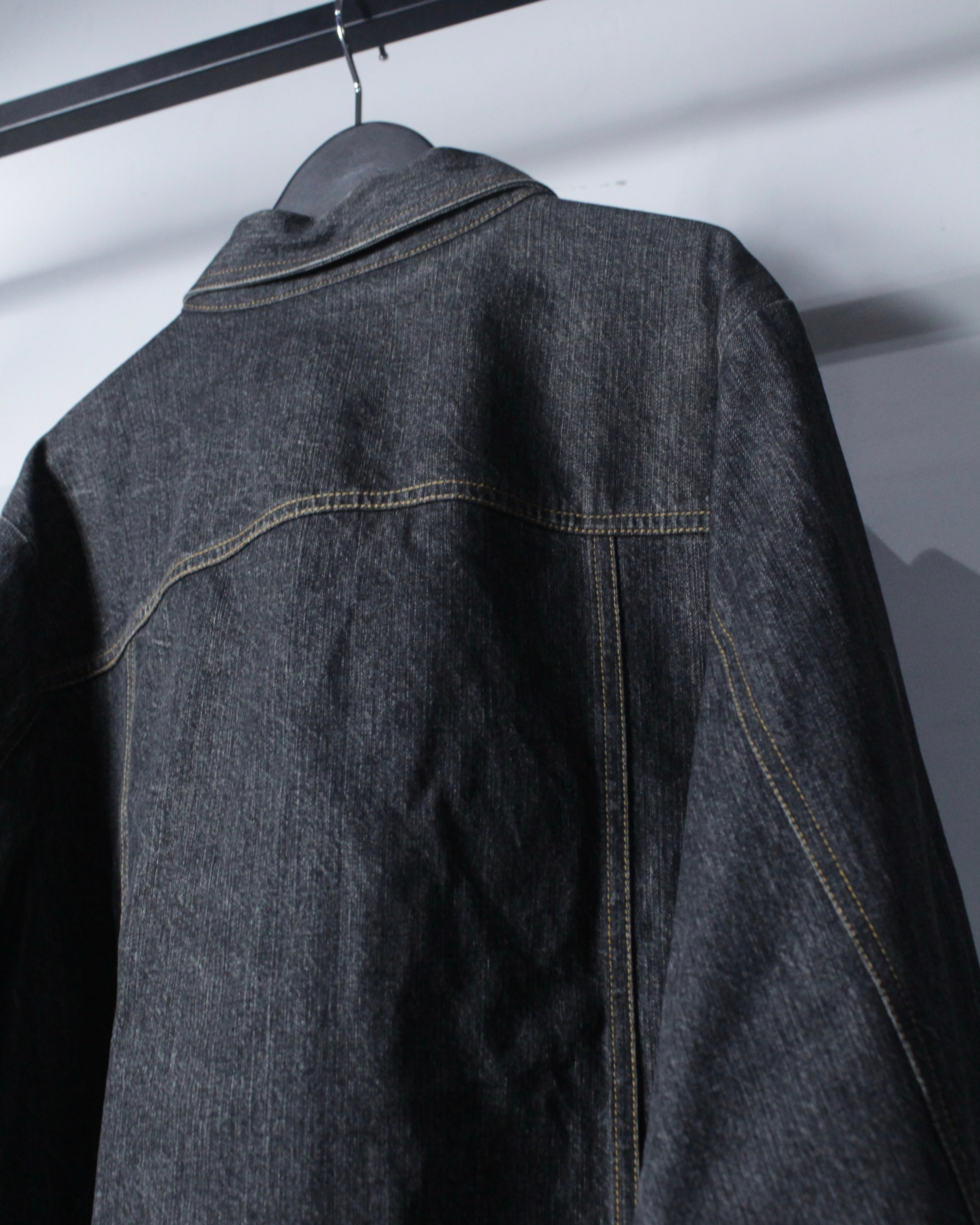 デニムアイテムの中では薄手な生地感で、ジャケットとして羽織るのは間違い無いですが、シャツとしてインナーに差し込み中から素材切り替えをチラつかせるのも洒落た着こなしかと。