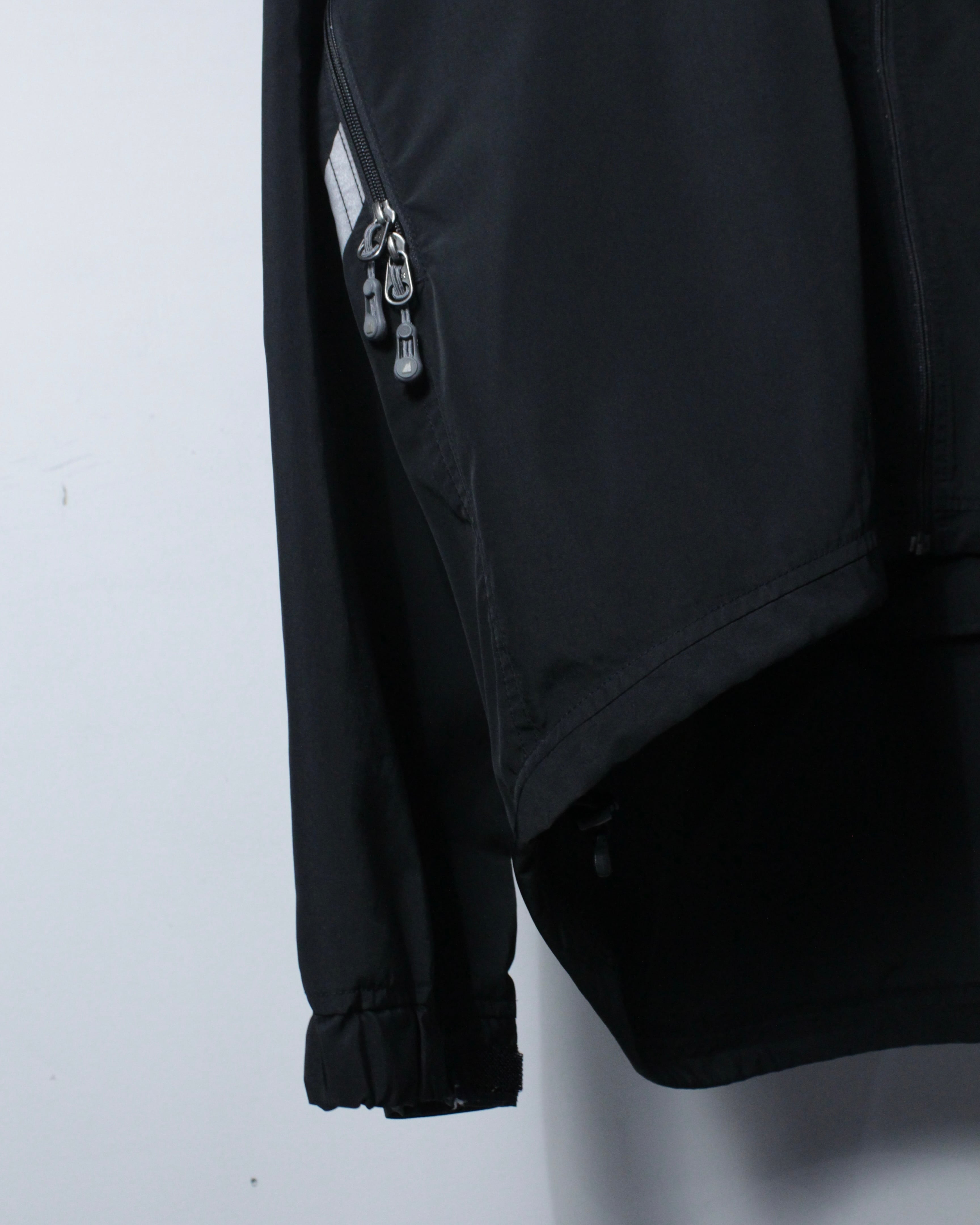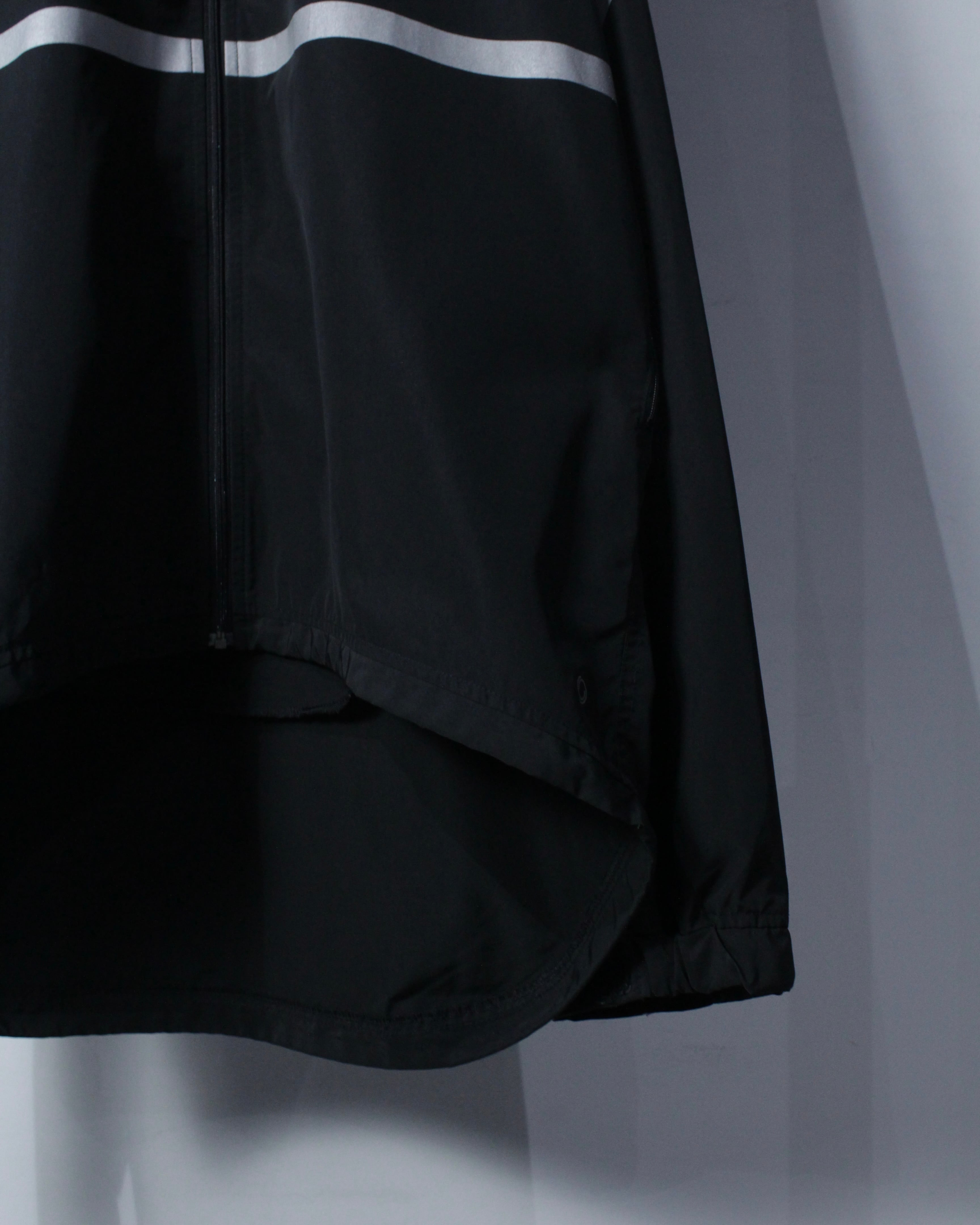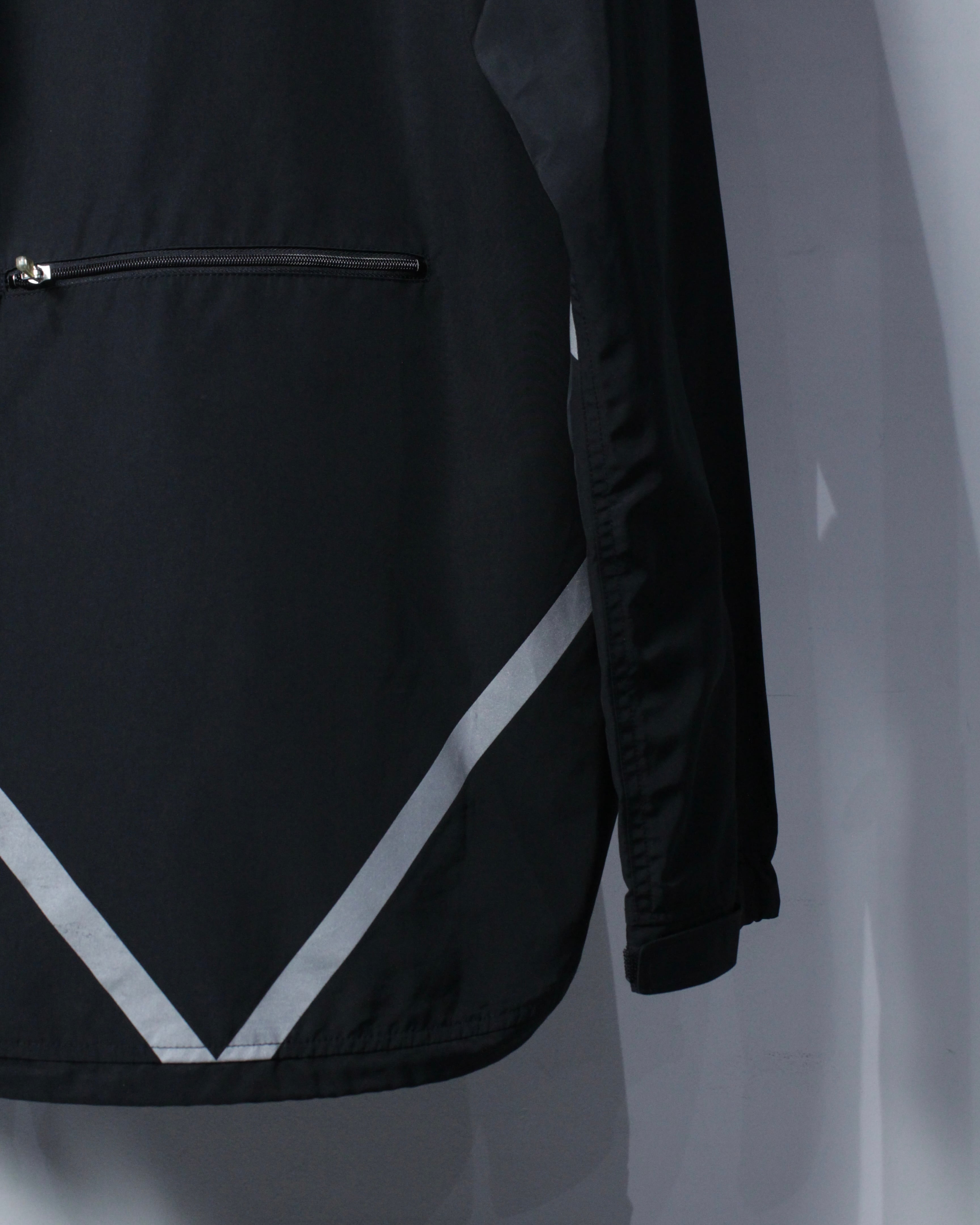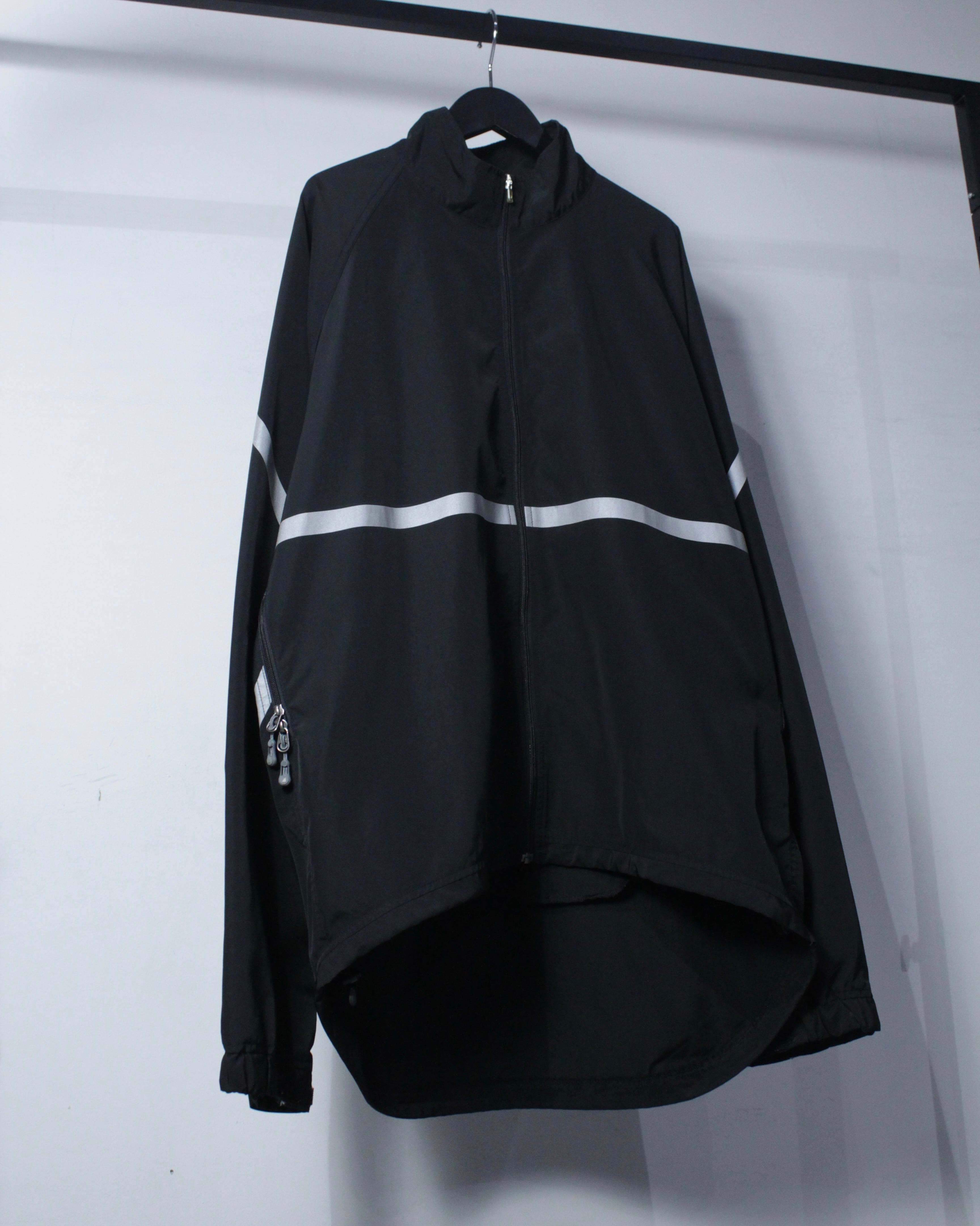 フロントはフルジップ仕様、加えて脇下にはジップ式ベンチレーションを搭載し、体温調節を可能にする実用的なディテール。背面にはジップポケットを配置し、収納力も兼ね備えた設計。さらに裾はフィッシュテール仕様となっており、シルエットに動きと奥行きを加えています。