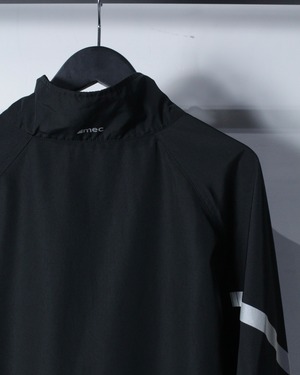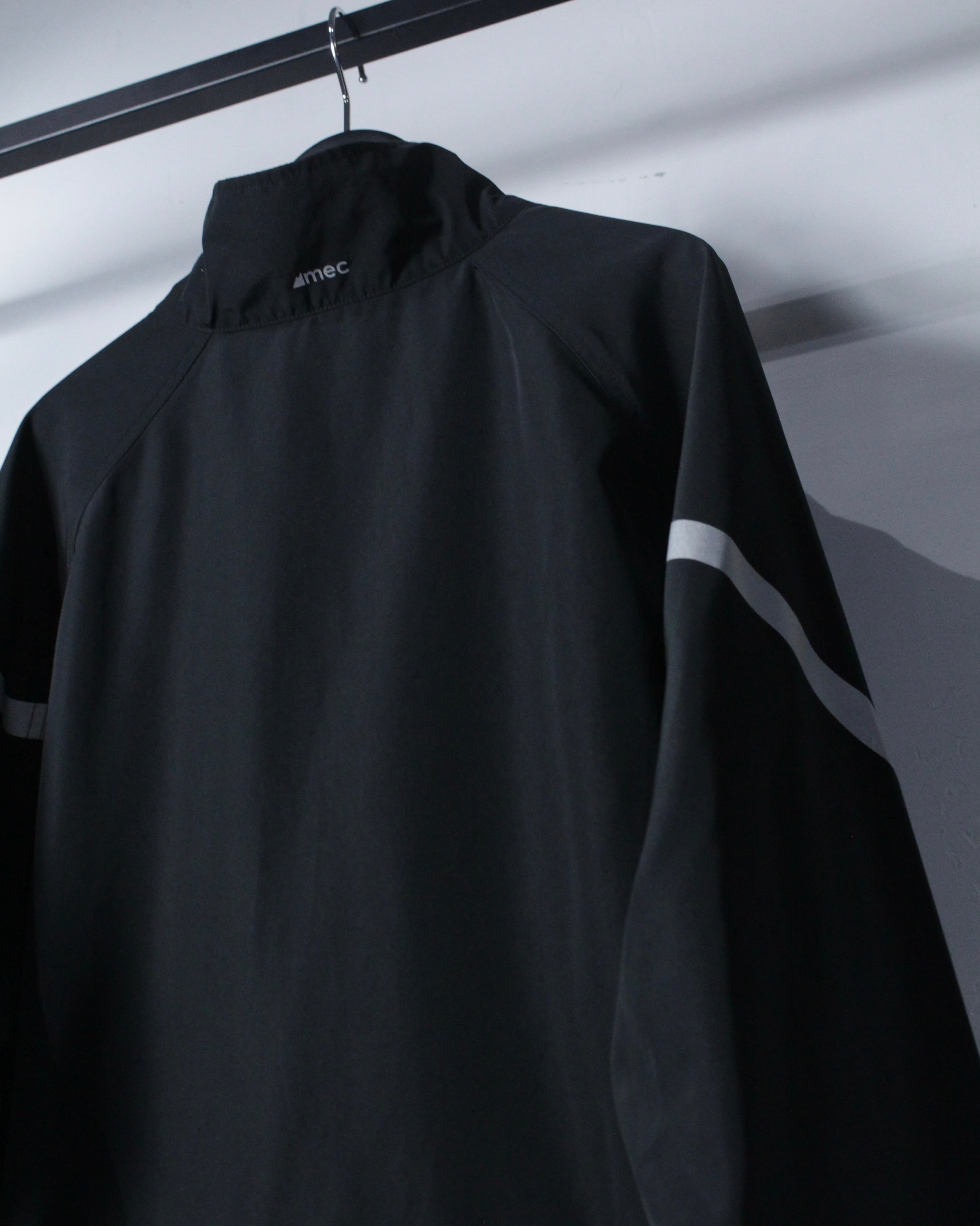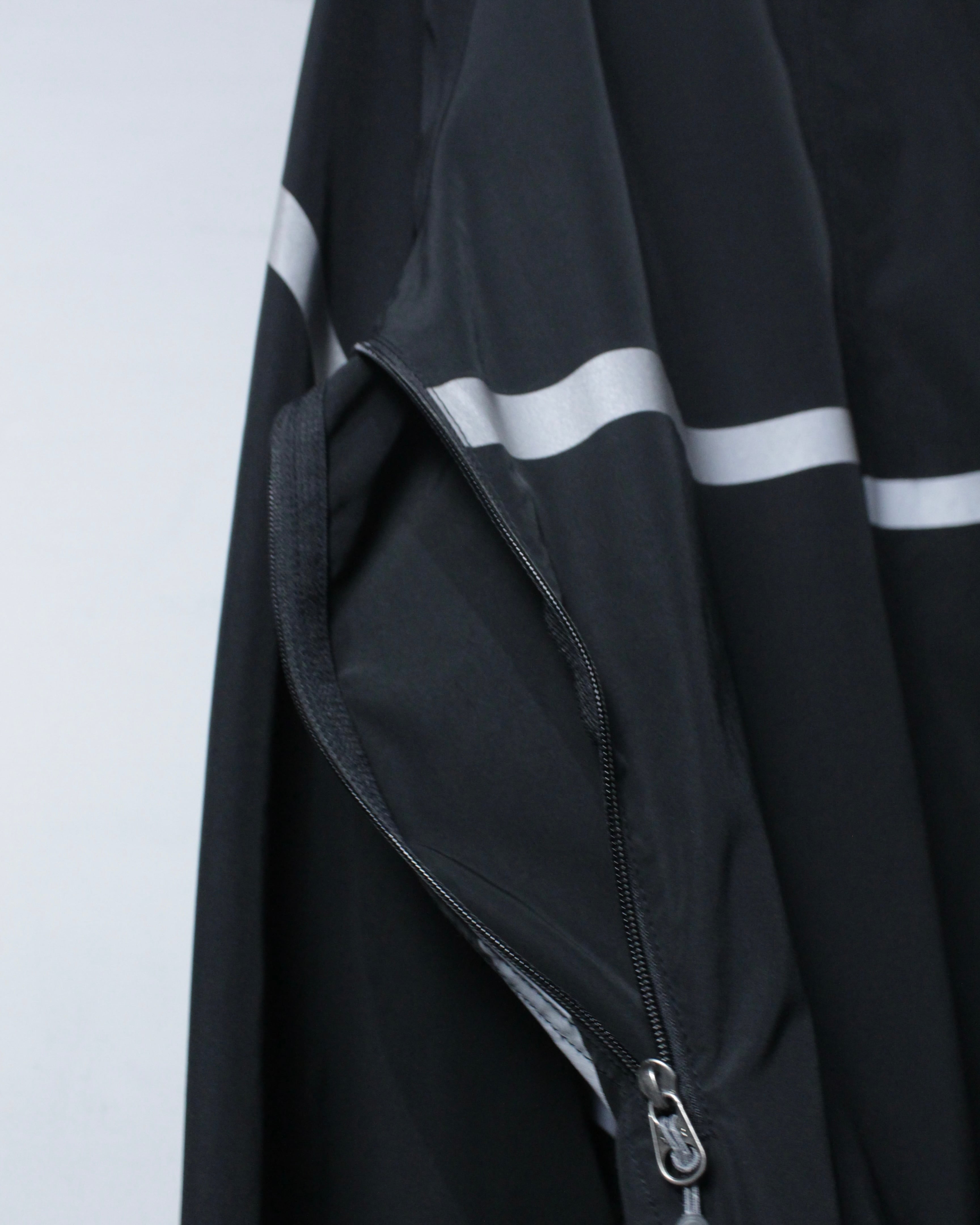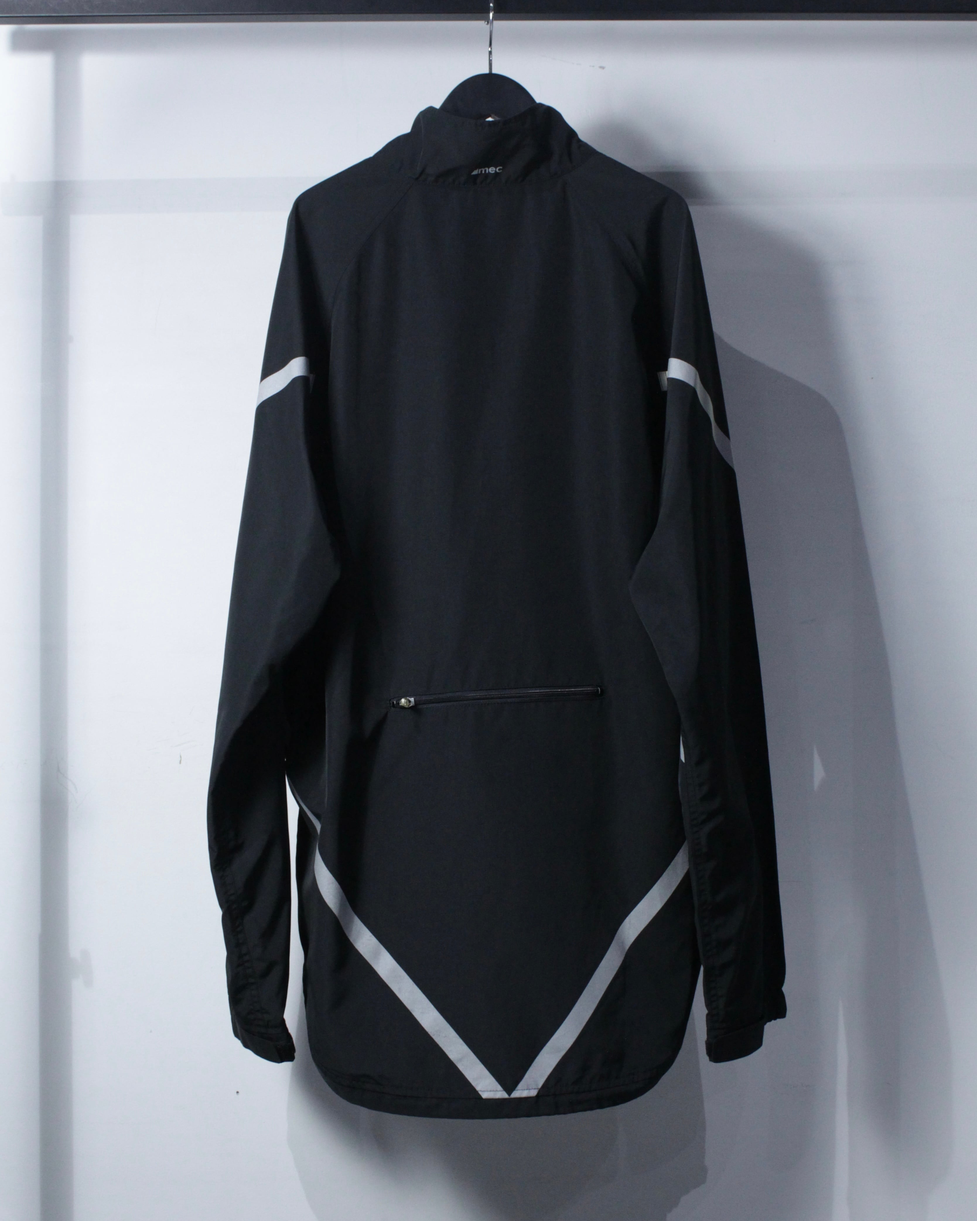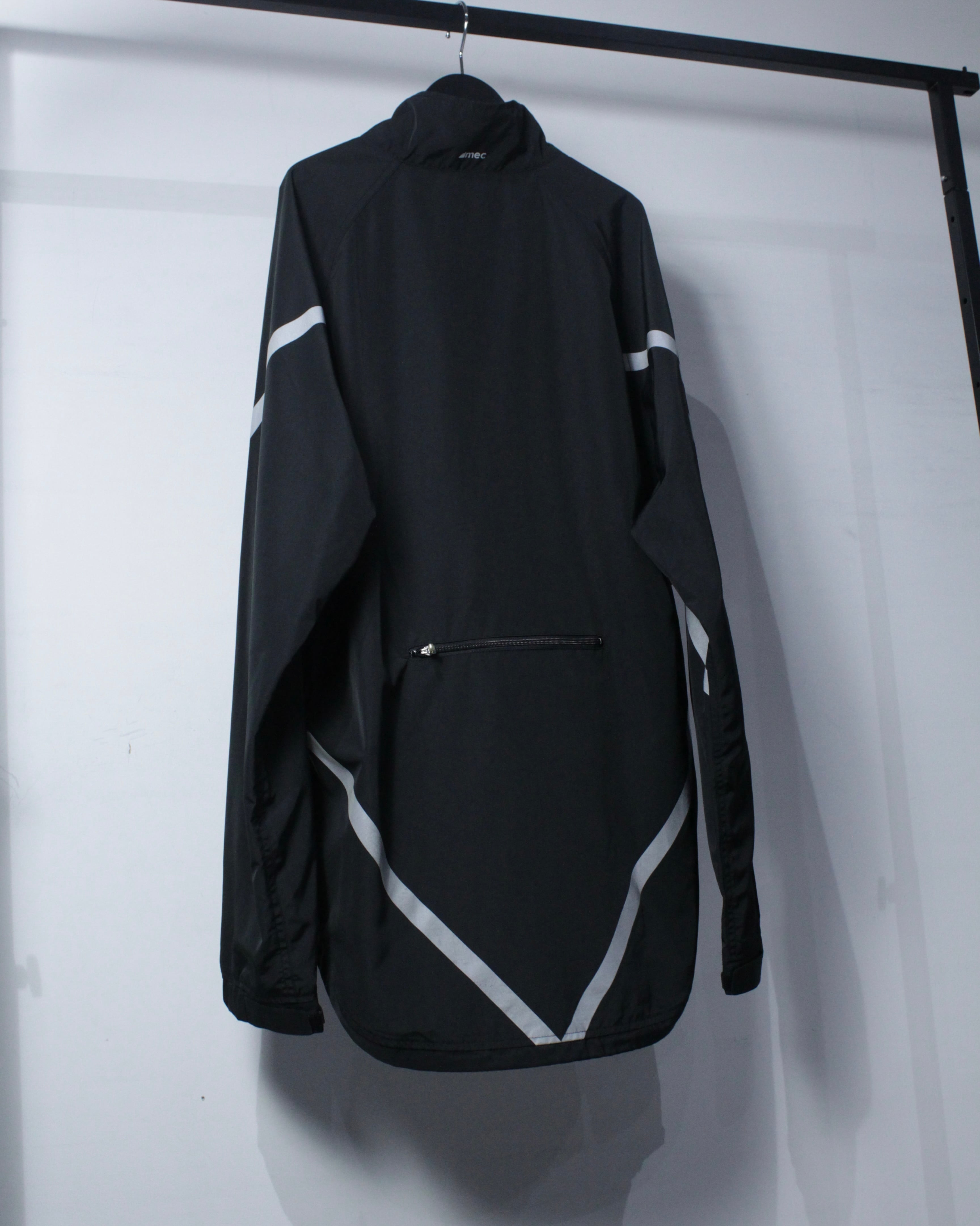 フロントはフルジップ仕様、加えて脇下にはジップ式ベンチレーションを搭載し、体温調節を可能にする実用的なディテール。背面にはジップポケットを配置し、収納力も兼ね備えた設計。さらに裾はフィッシュテール仕様となっており、シルエットに動きと奥行きを加えています。