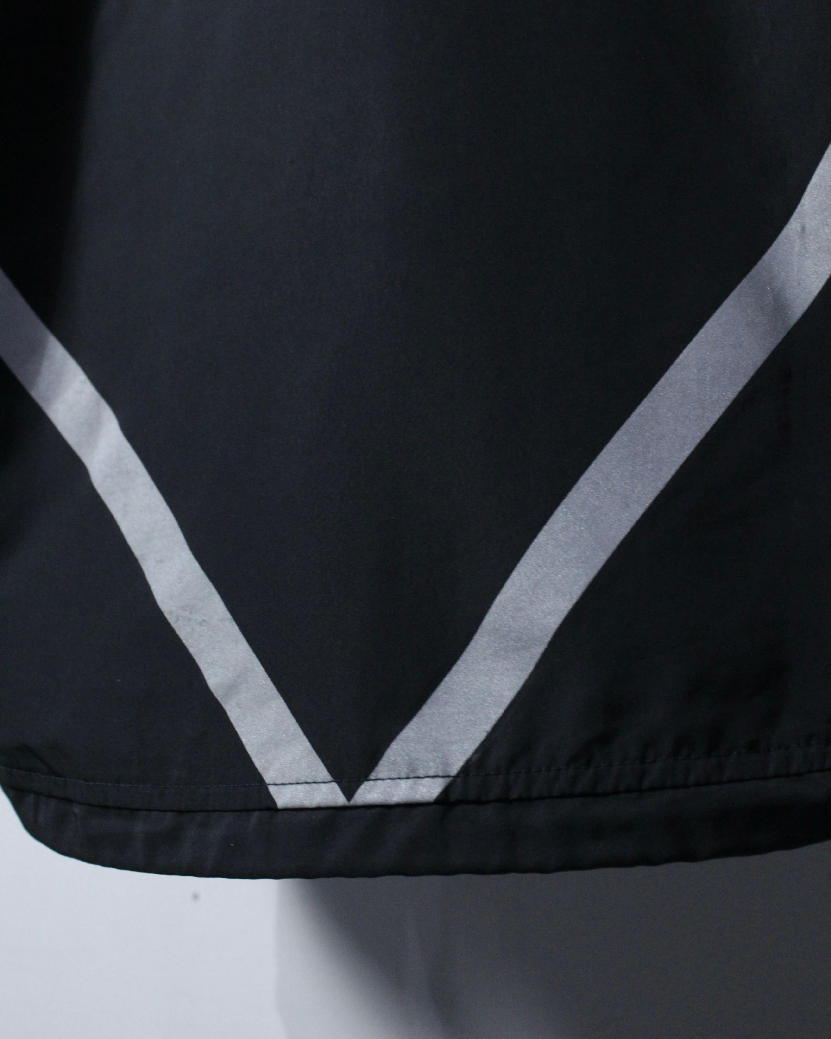 マットな質感のナイロンボディに、フロントからアームにかけてリフレクターラインを走らせた、都会的かつテック感のある佇まいを見せる1着。