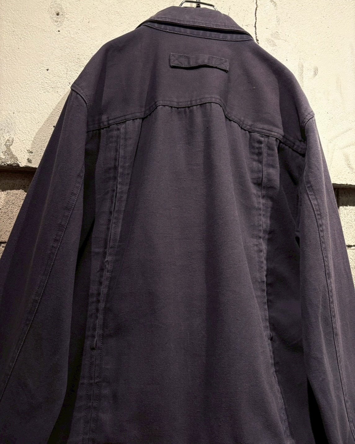 フロントはフラップ付きの胸ポケットにメタルボタンを配した、王道のトラッカーデザイン。無駄を削ぎ落としたシンプルな構造ながら、ワークブランドらしい確かな作り込みが随所に感じられます。