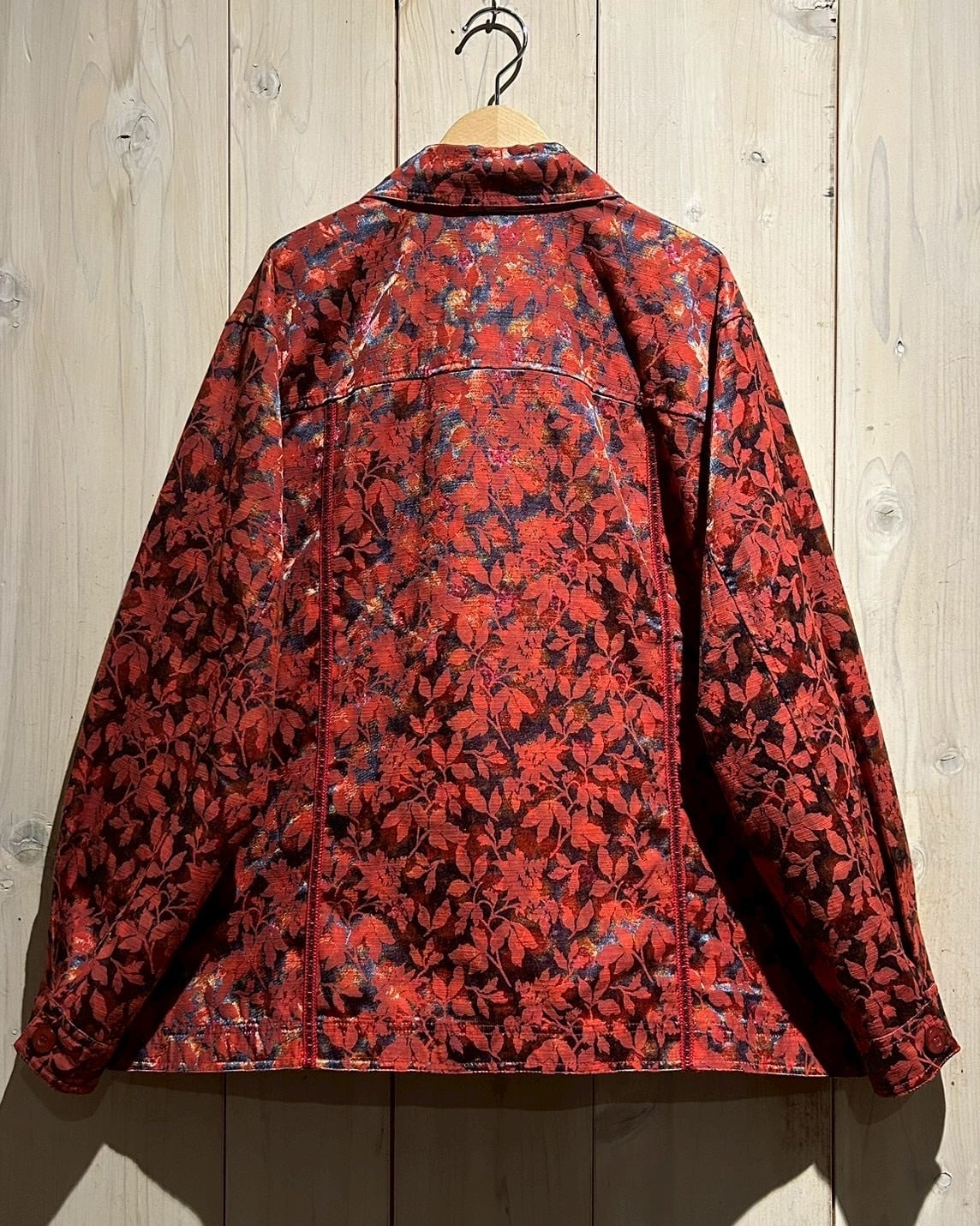 ベースはデニムジャケットでお馴染みのトラッカー型を採用。胸元の切り替えやボタンフロントといった王道のディテールに、華やかな柄が掛け合わさることで生まれた、カジュアルさと上品さが合わさった絶妙なデザインバランスが◎