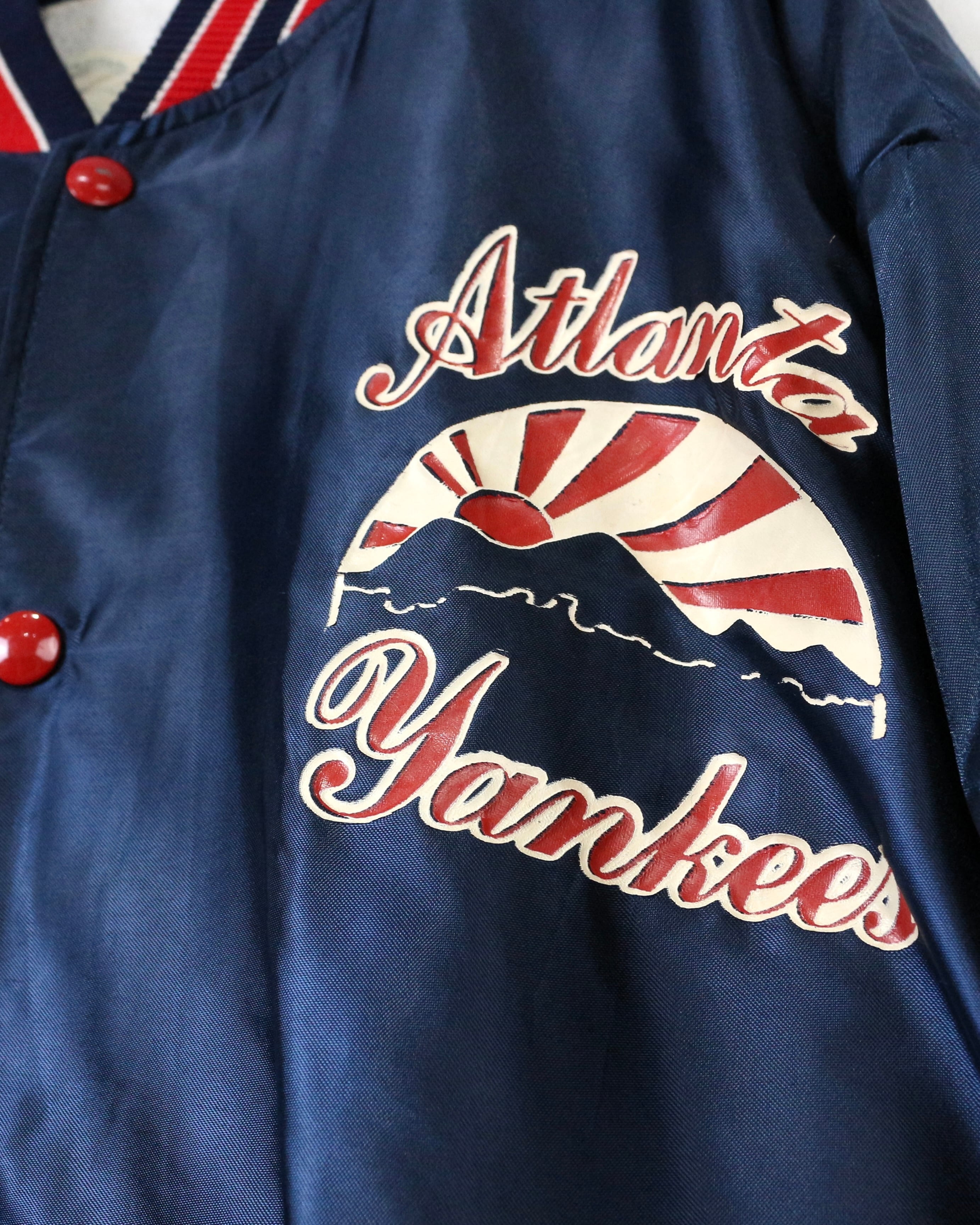左胸には“Atlanta Yankees”のロゴを配置。Atlanta BravesとNew York Yankeesを掛け合わせた架空チームという遊び心あるデザインに加え、背面にはコロラド州アスペンを彷彿とさせるグラフィックを大胆に落とし込み、前後でしっかりと主張のある仕上がりに。老舗ブランドらしい完成度の高さが光りますね。