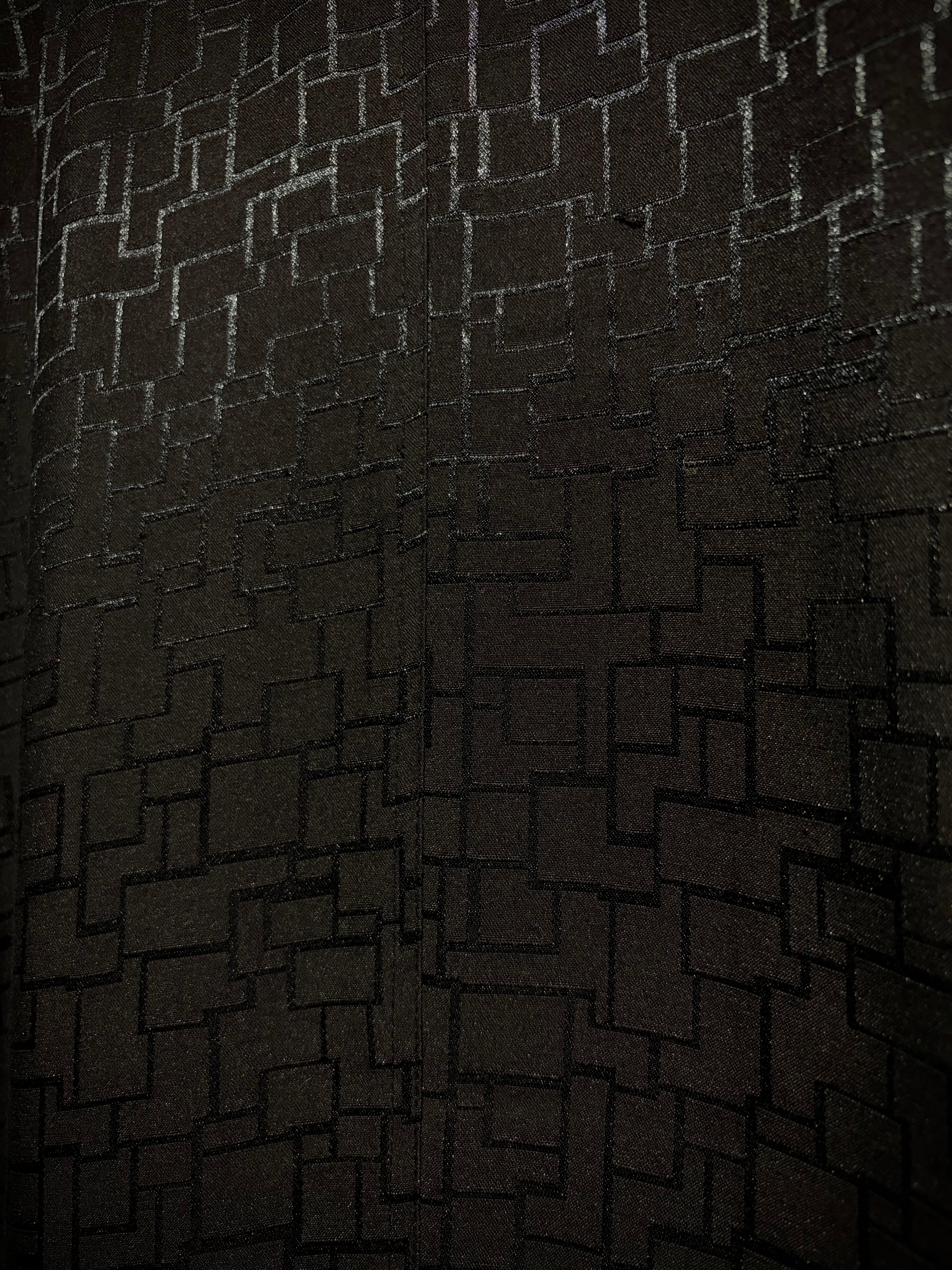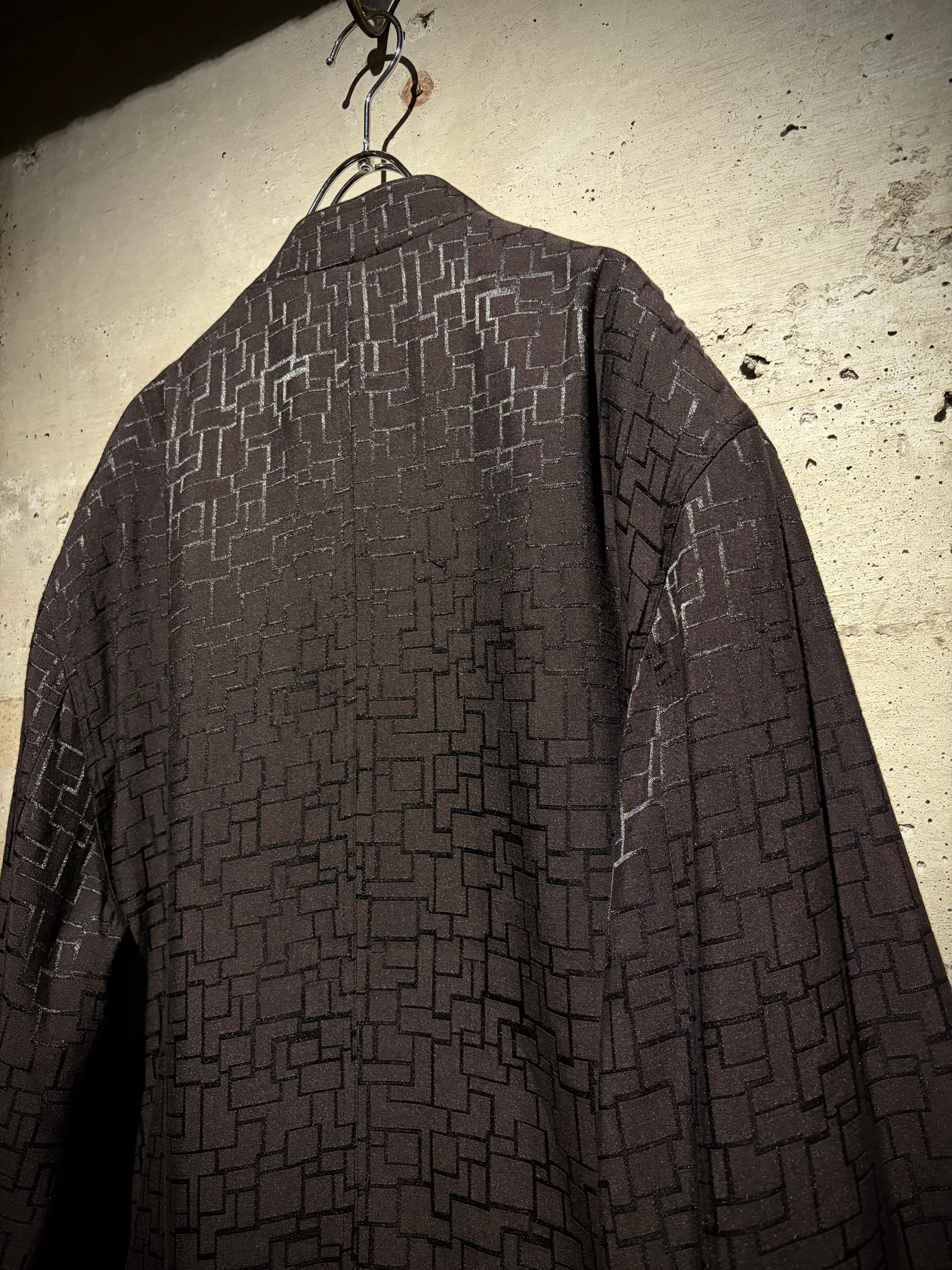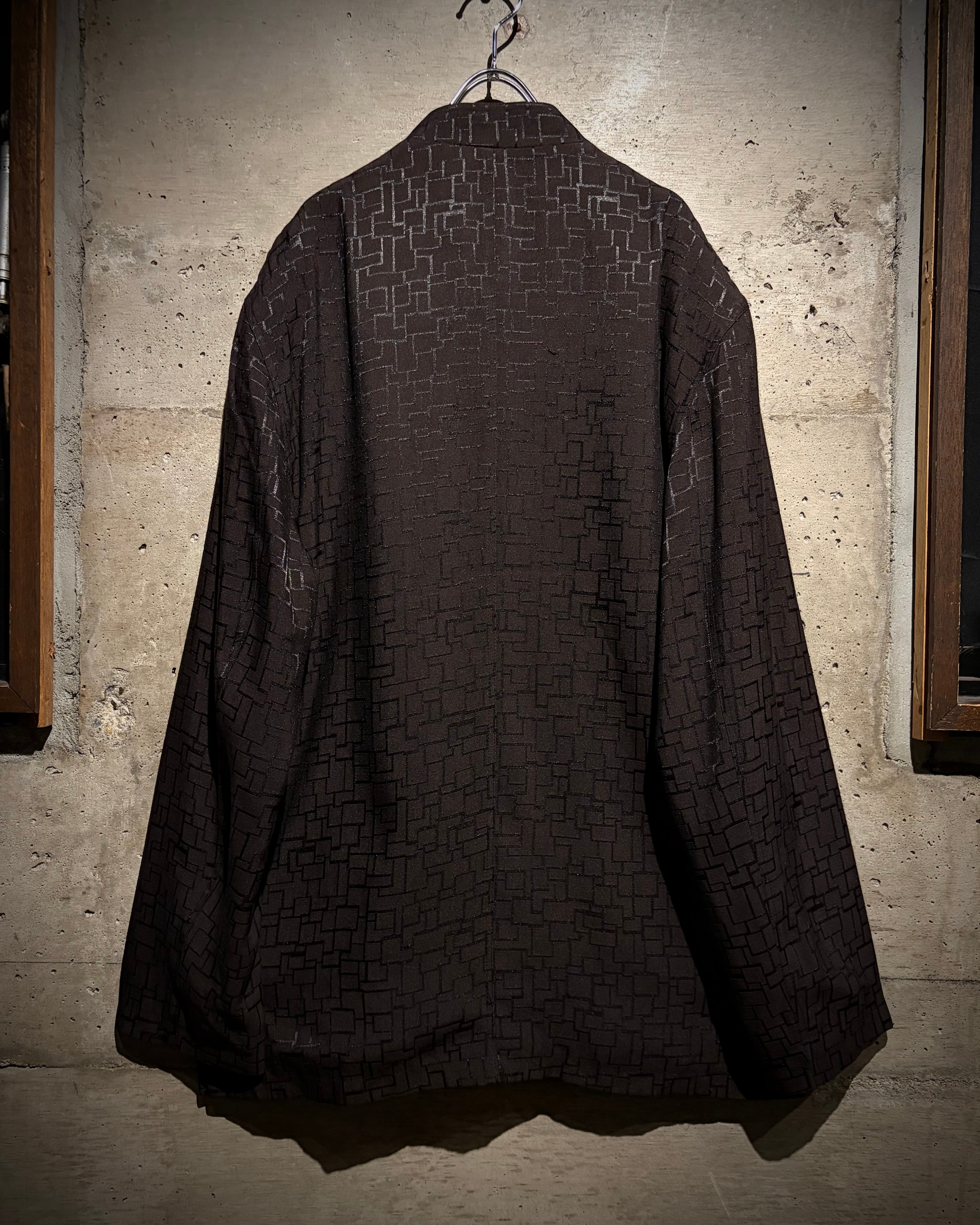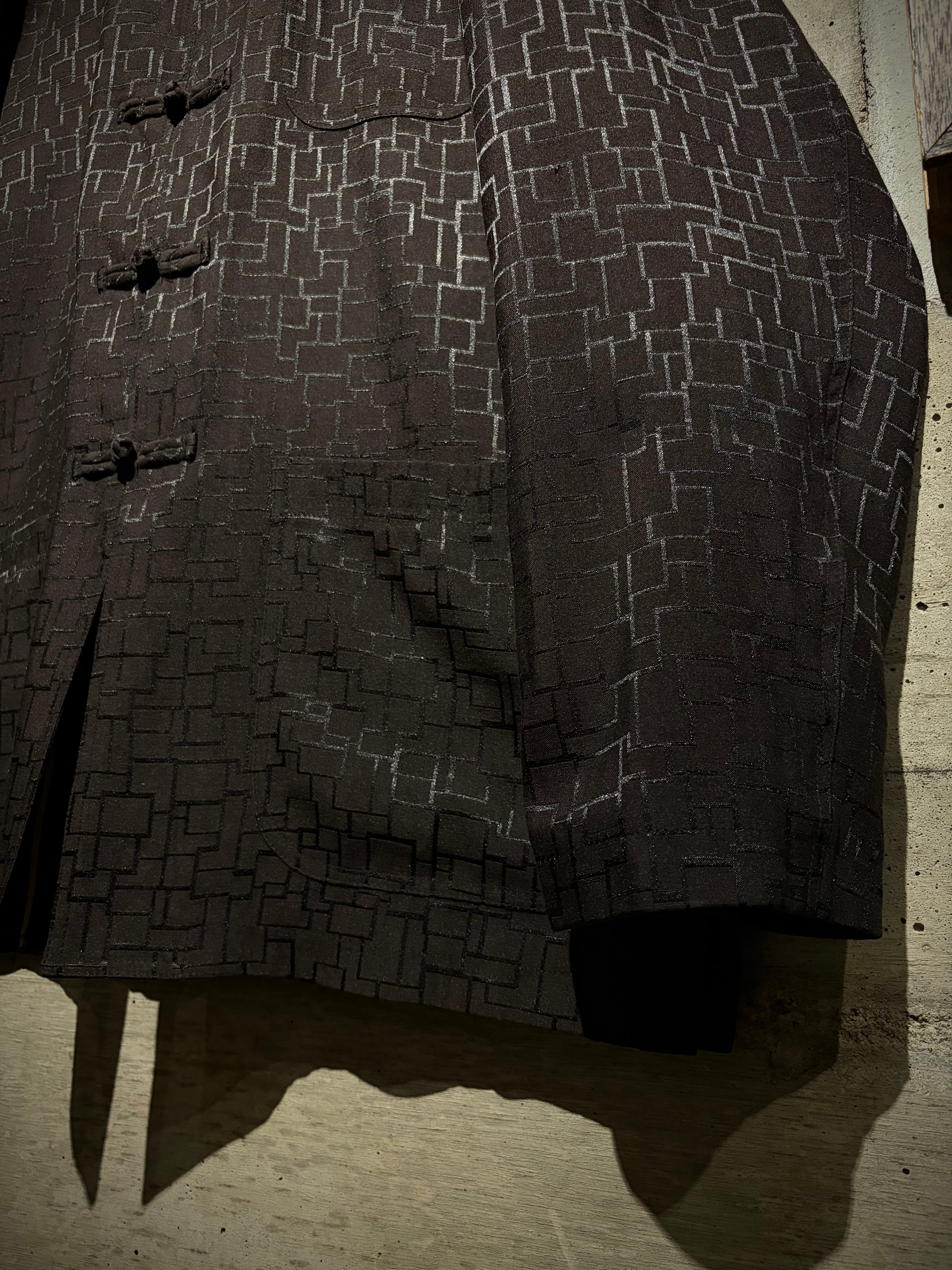 軽やかで滑らかなファブリックをボディに使用し、幾何学調のブロックパターンを全面に配したモダンな雰囲気漂うチャイナシャツジャケット。