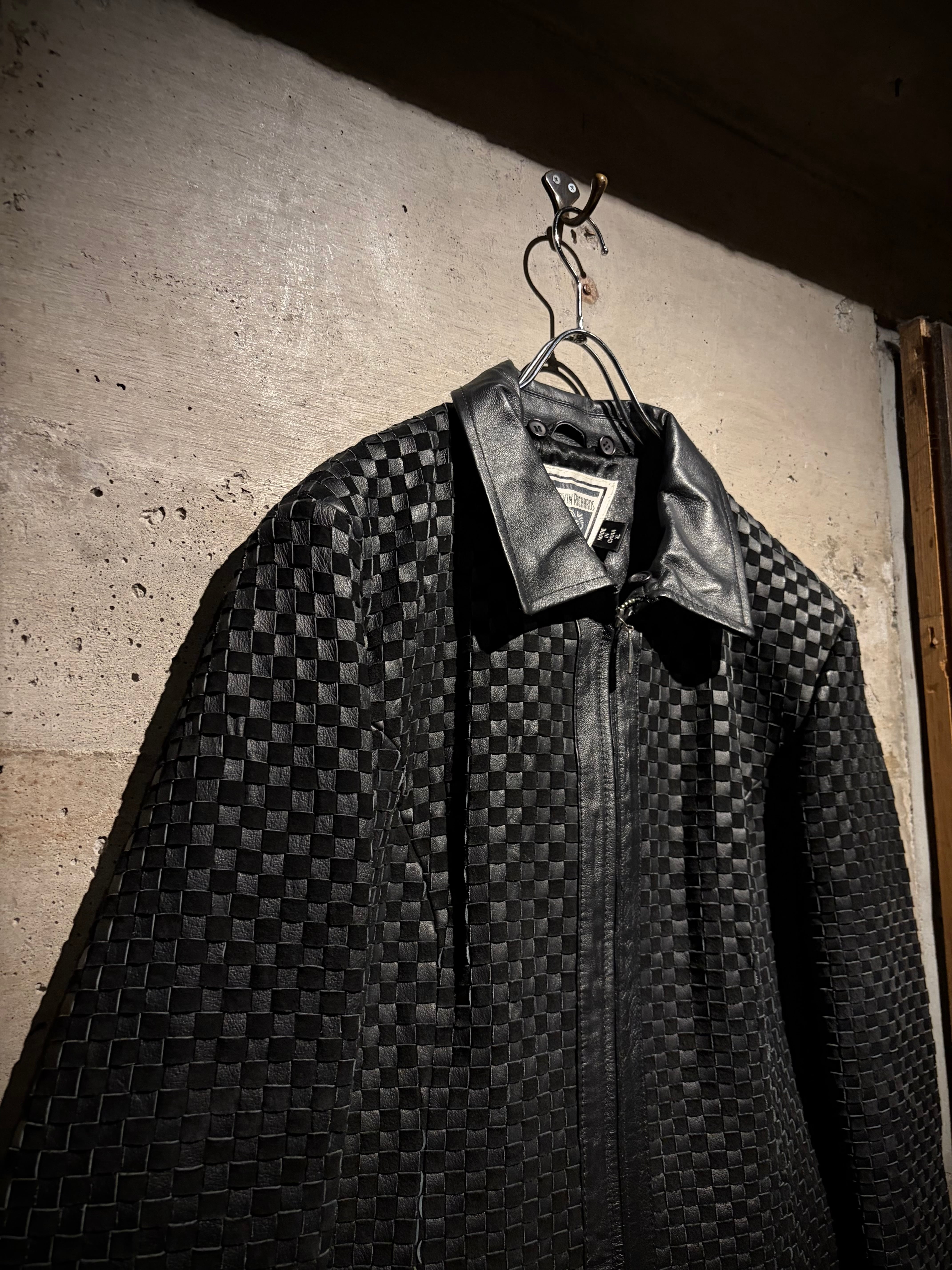 短冊状にカットされたレザーを一つ一つ丁寧に編み込んで作られた、“Marvin Richard”のスペシャルなイントレチャートレザージャケット。