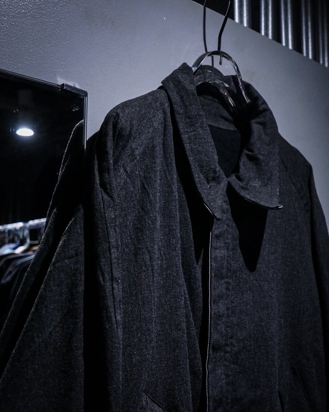 フワッと柔らかで、ライトな質感のダークグレーを基調としたウールボディをベースに、フロント裾にはリフレクターパッチとオーバルのブランドロゴパッチを配置。上質で洗練されたジャケットに宿るテクニカルなディテールがアクセントになり、非常に都会的な雰囲気を持った1着。