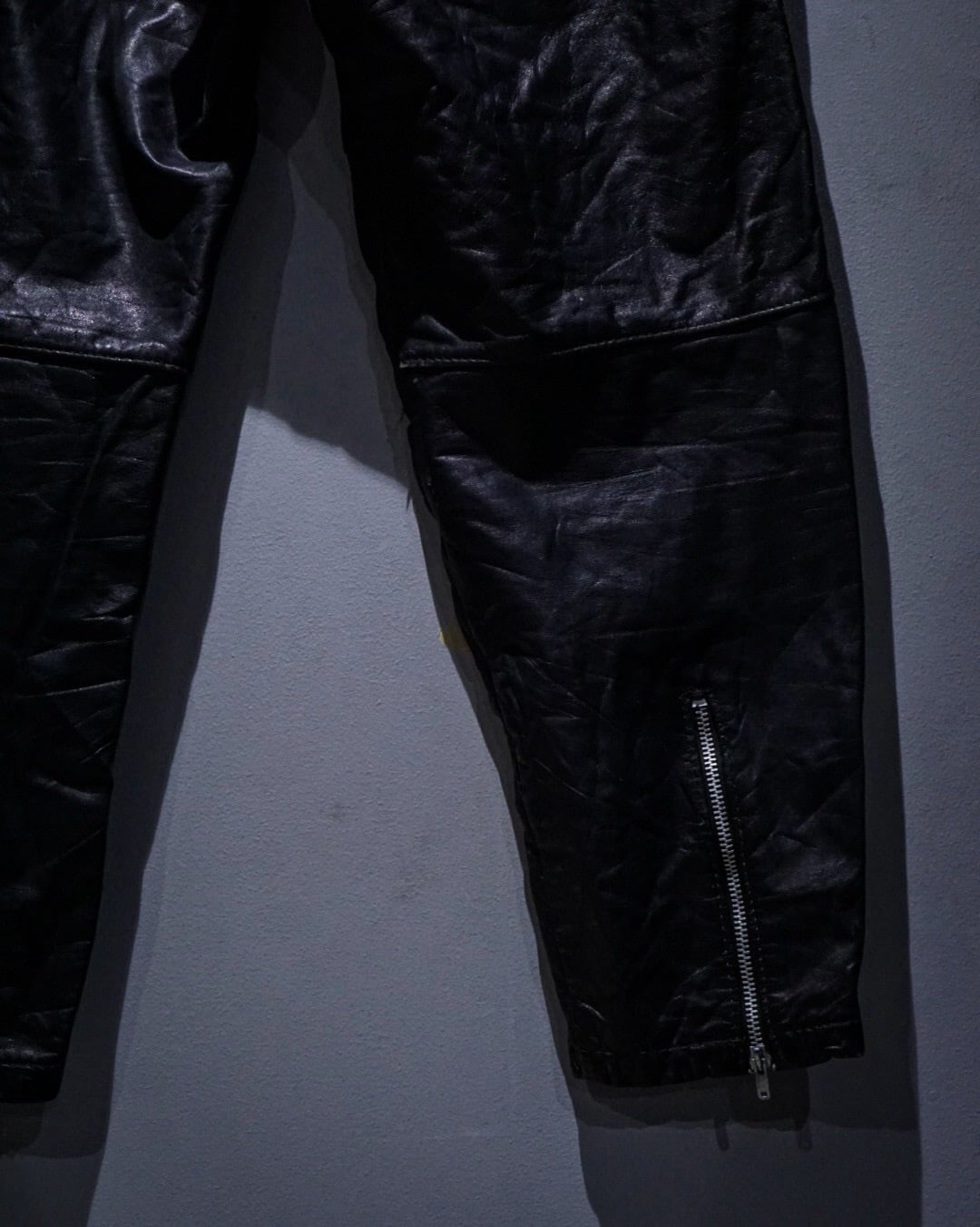 裾にはジップを配し、ブーツイン、アウトどちらにも対応可能。立体的なパターンとレザーの質感が相まって、着用時のシルエットも抜群。