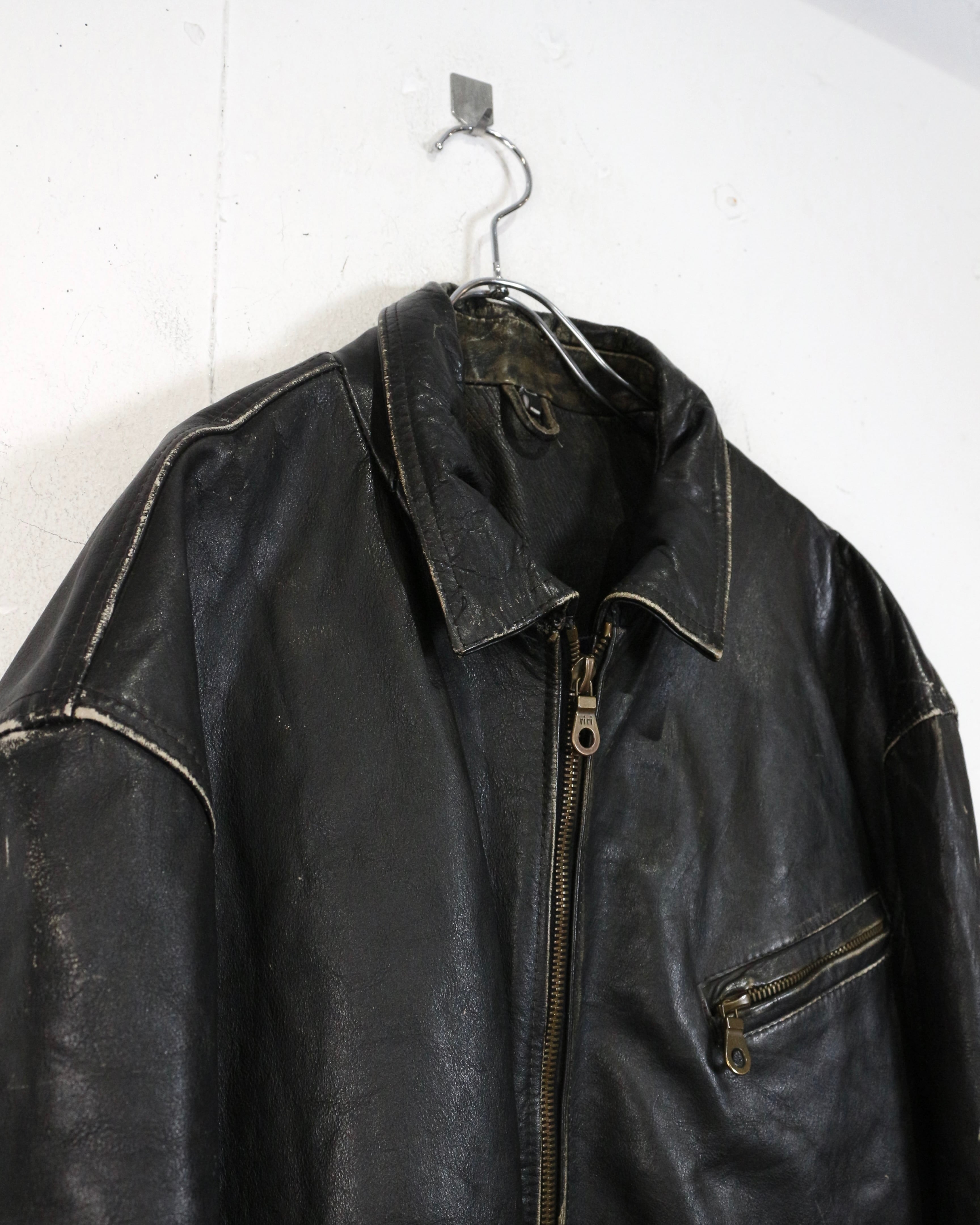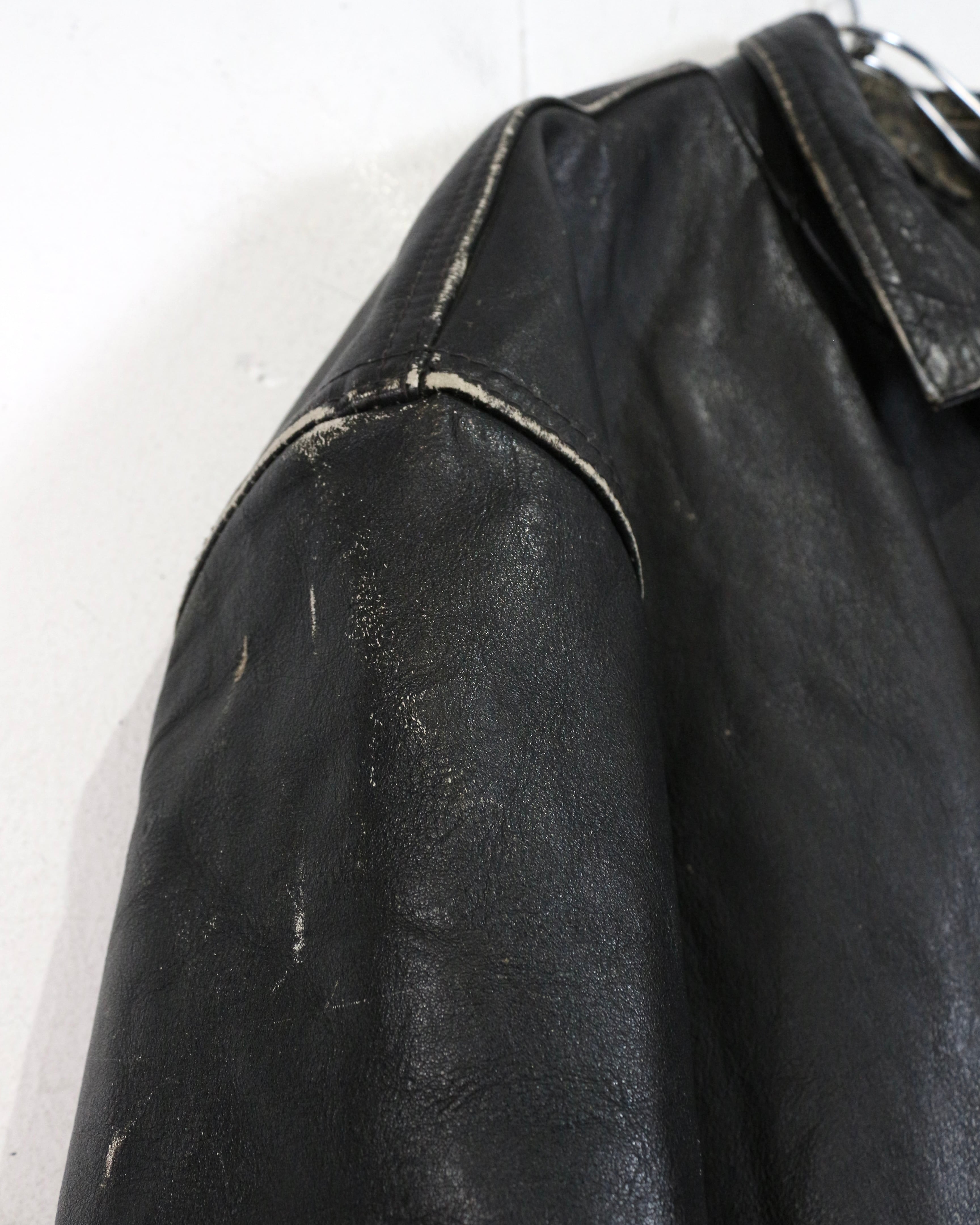 ヴィンテージならではの圧倒的な存在感を放つ、ブラックレザージャケット。