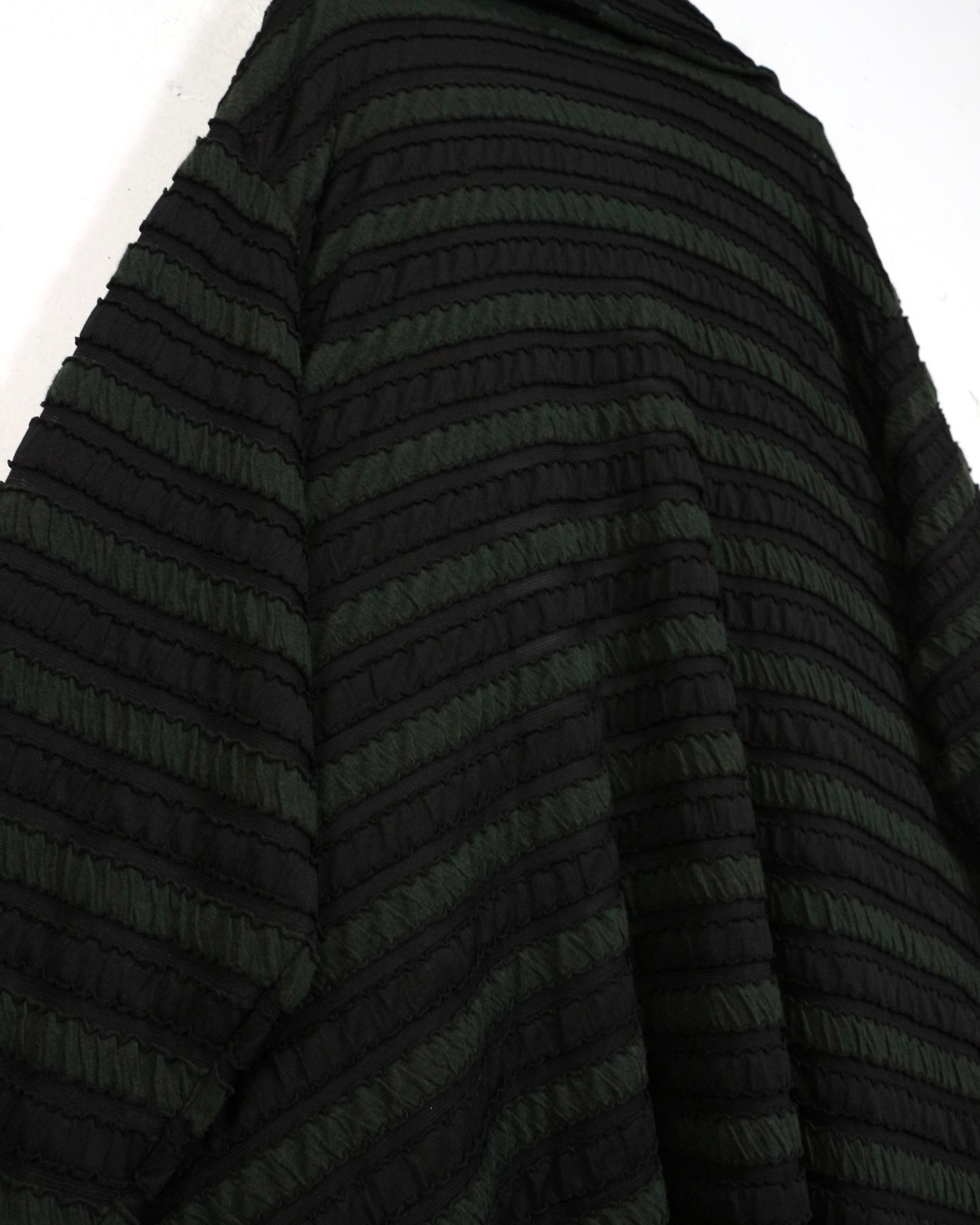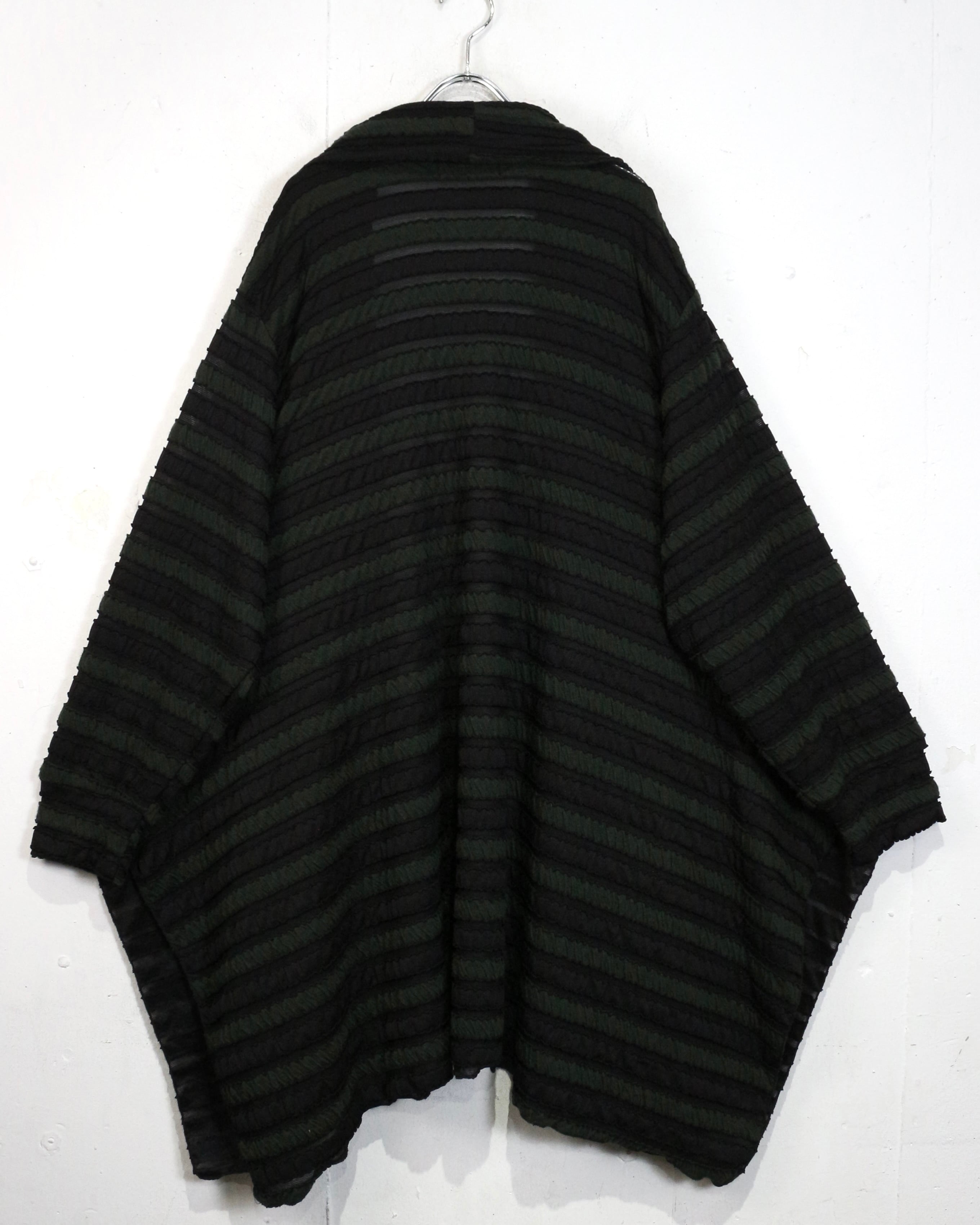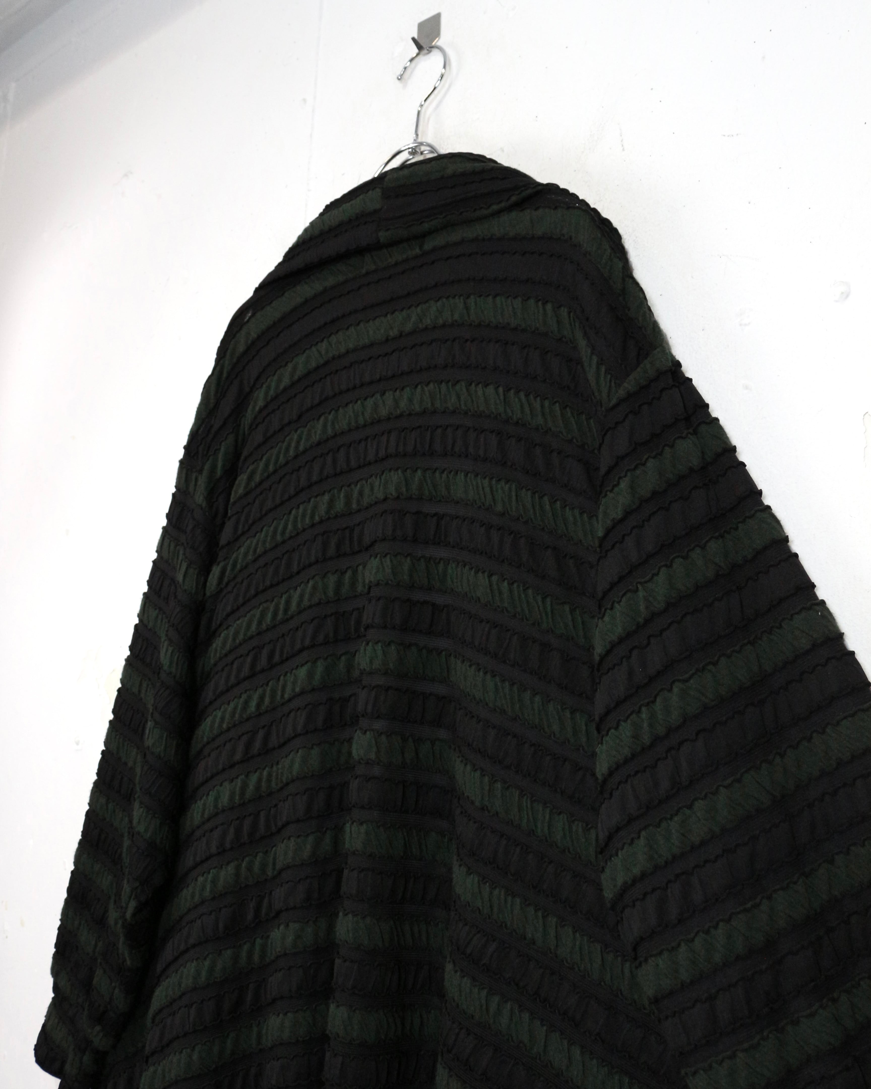 程よく透け感のあるシアーのボディに、シュリンク加工を施した生地を載せ、ボーダー柄に仕上げたベルギー製のガウンジャケット。