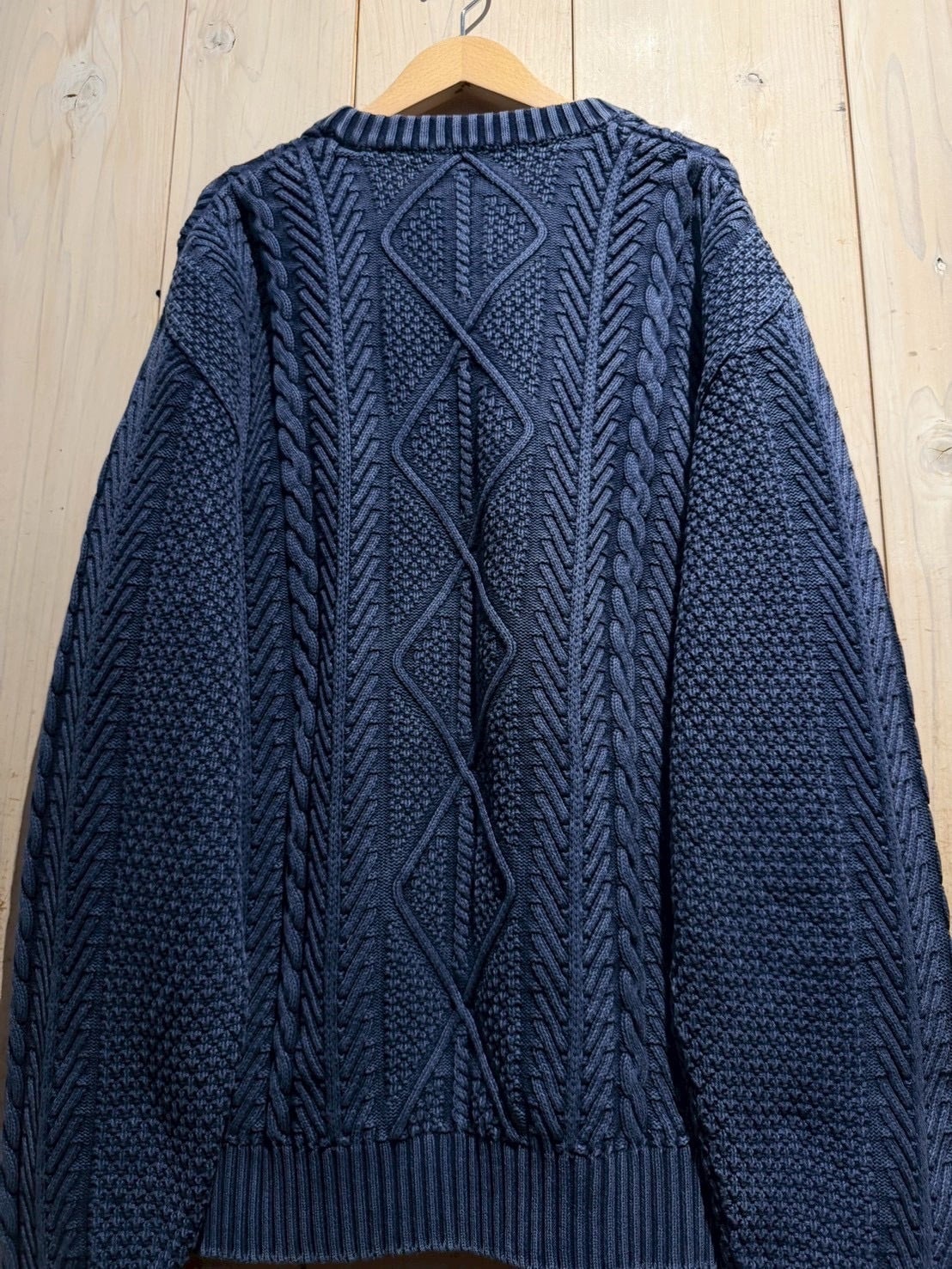 アイルランド西部、アラン諸島発祥の漁師の防寒着をルーツに持つアランニットの逸品。伝統的な編み柄をふんだんに落とし込んだ1着。