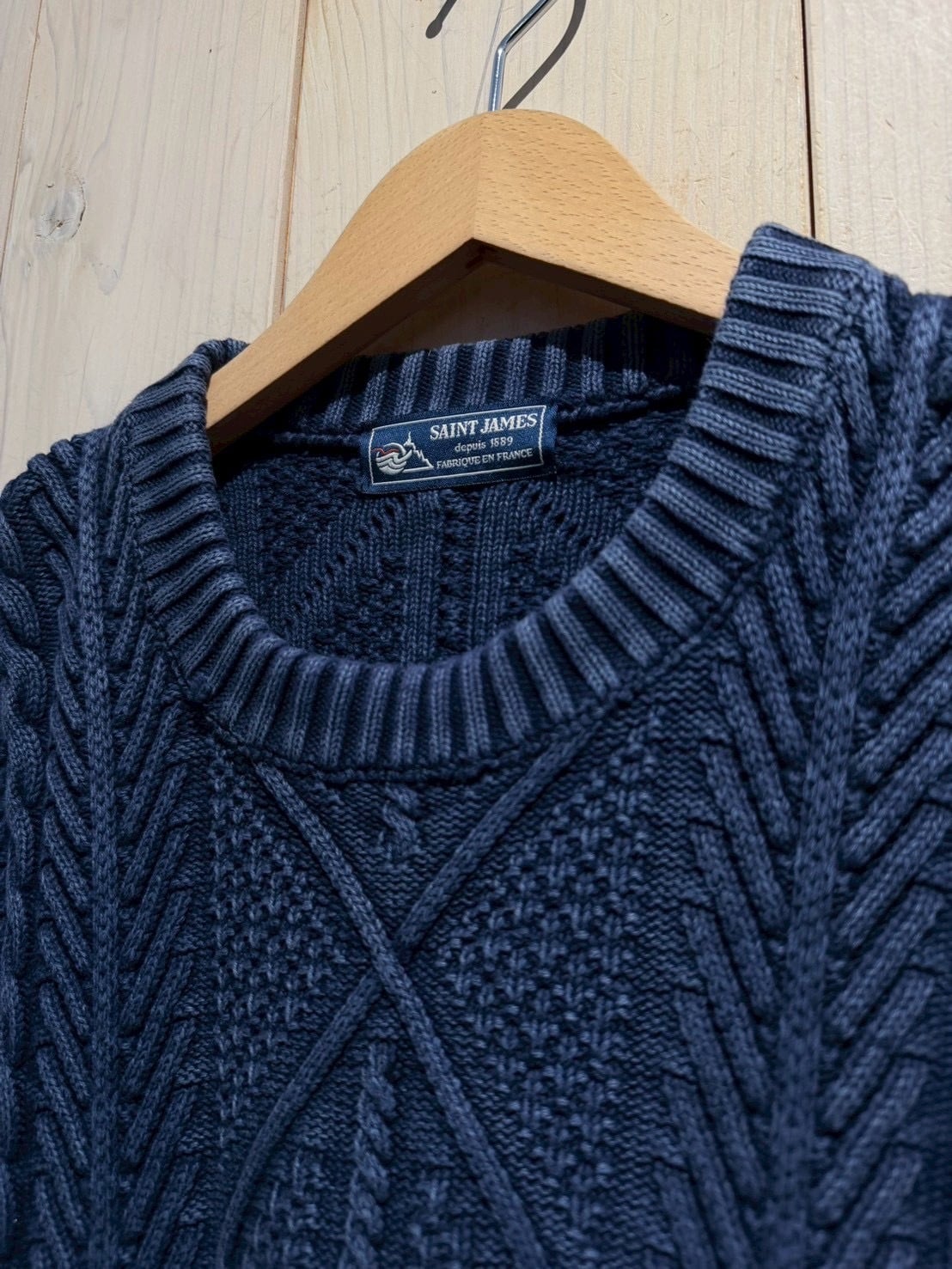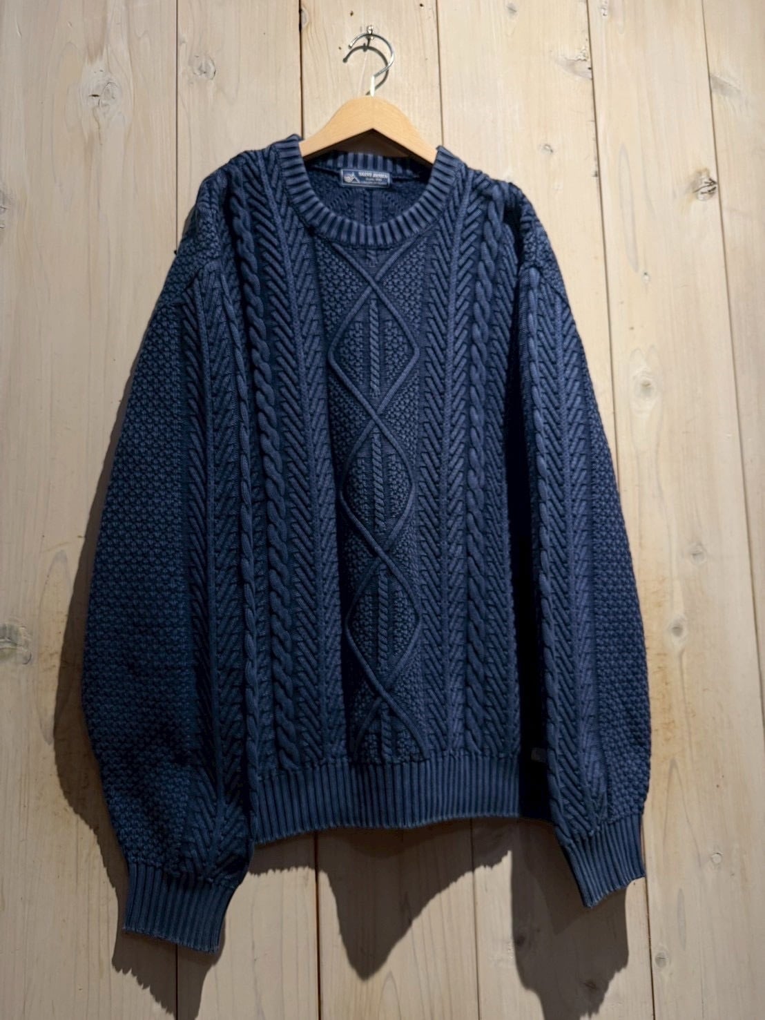 バックボーンにファッション的な目線で見ても素晴らしい、“SAINT JAMES”よりインディゴアランニットの逸品です。