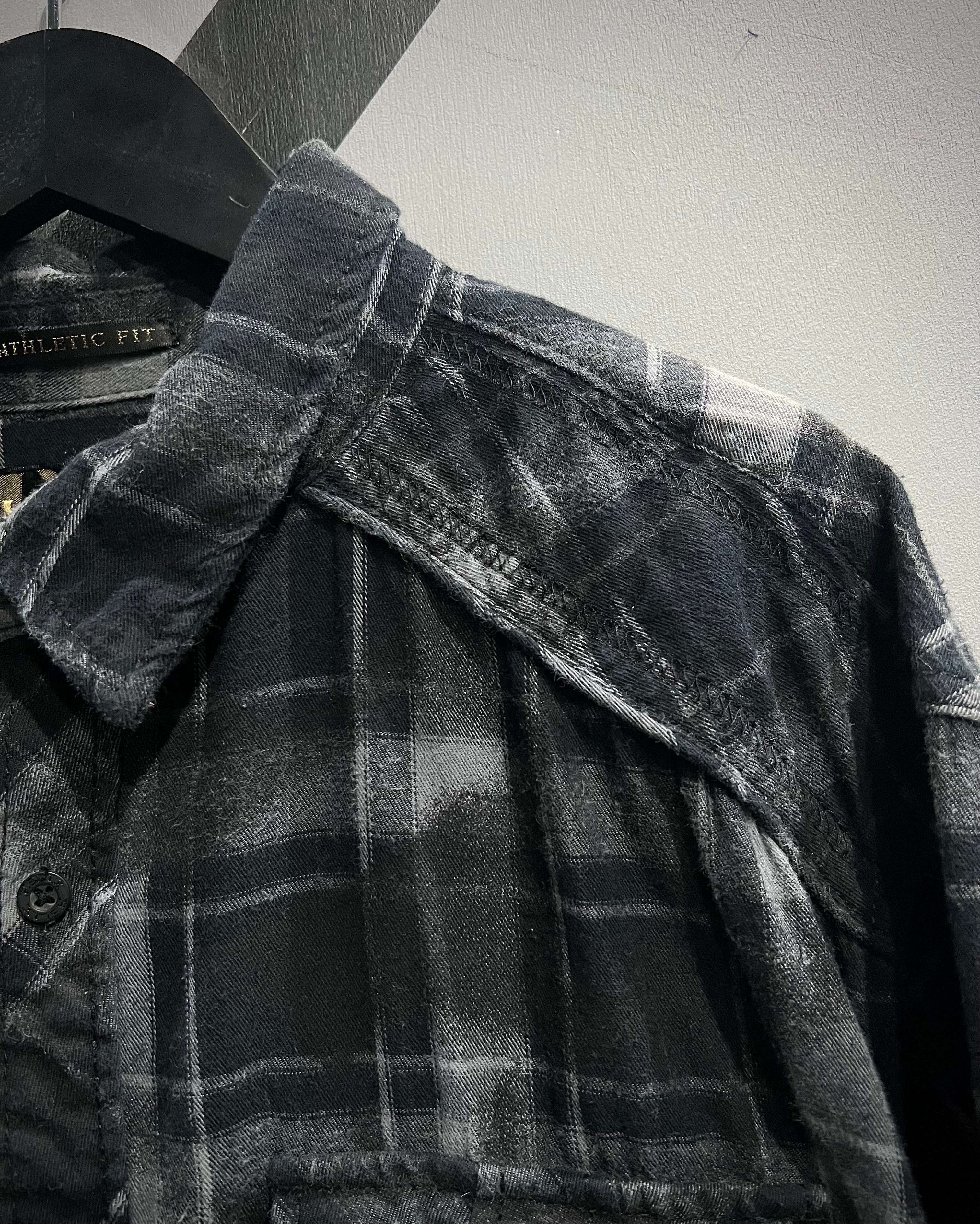 ブラック×ホワイトのモノトーンベースのチェックに、まるで染めを施したかのようなムラ感が広がるネルシャツ。