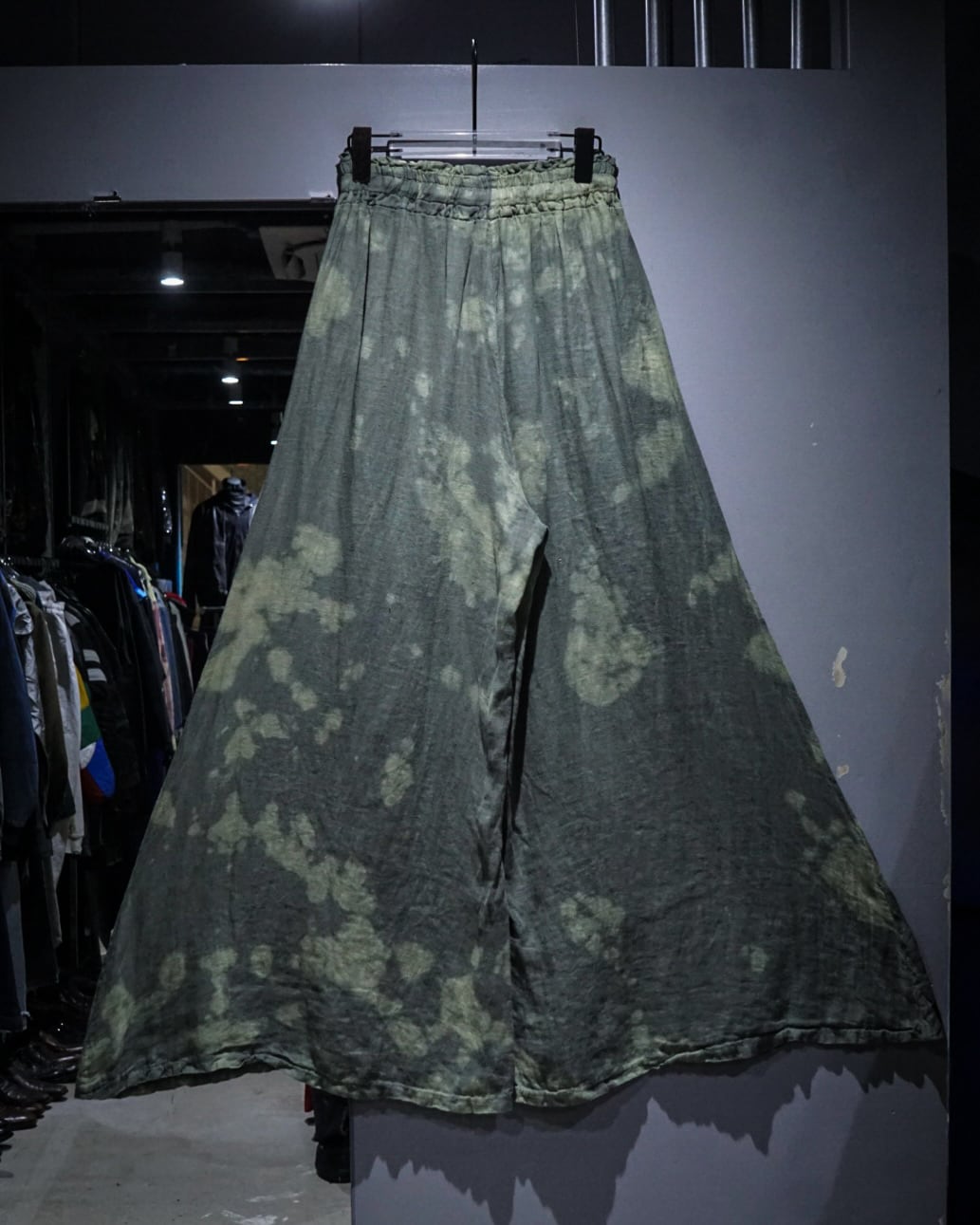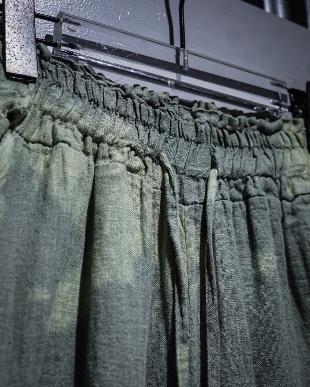自然素材×ブリーチ加工という対極の要素を掛け合わせた、独特な雰囲気を放つリネンレイヴパンツの逸品です。