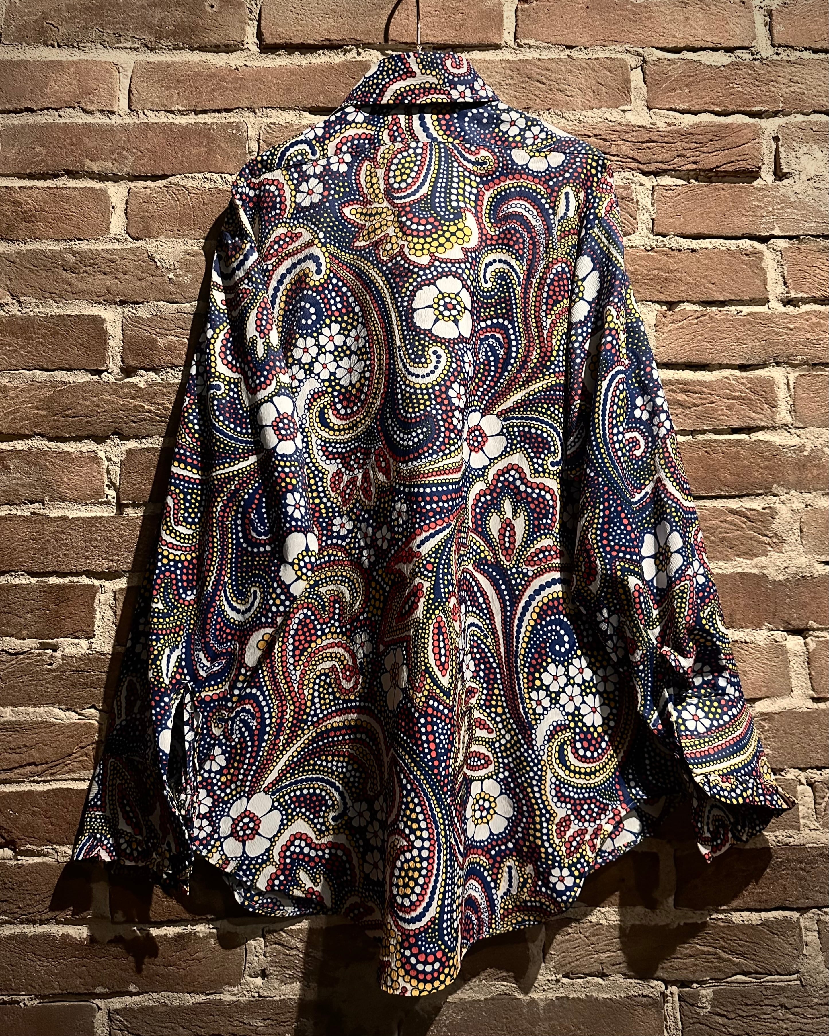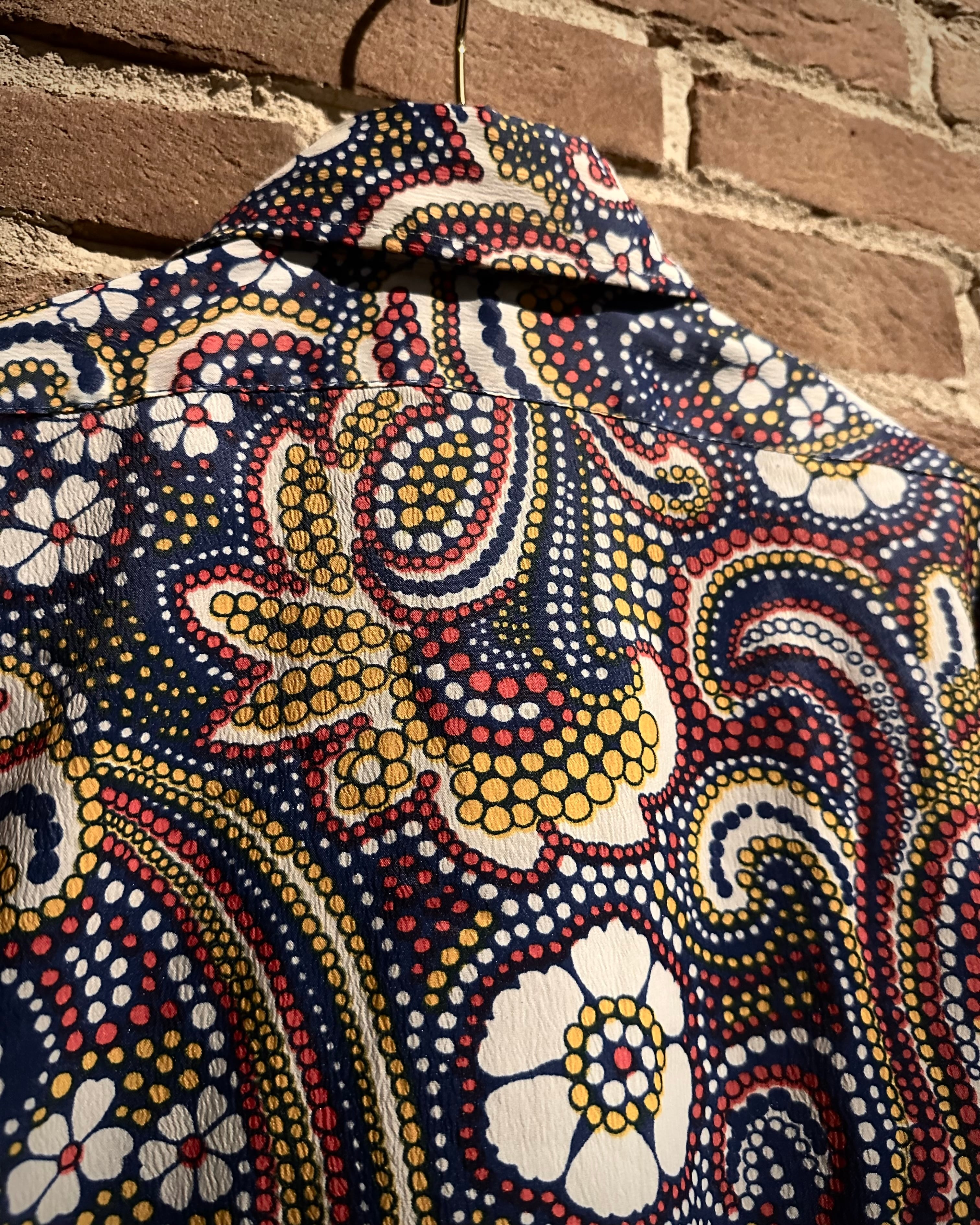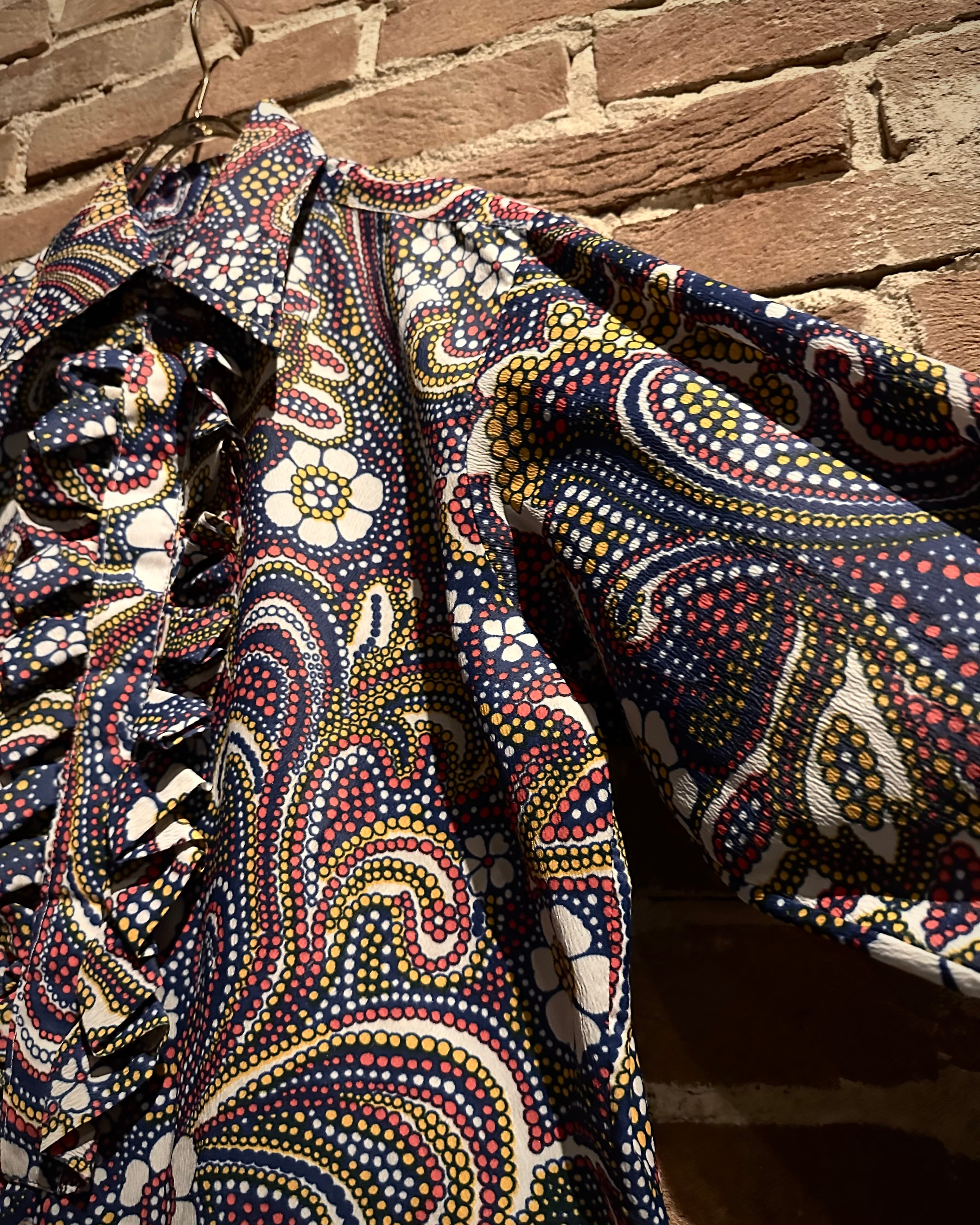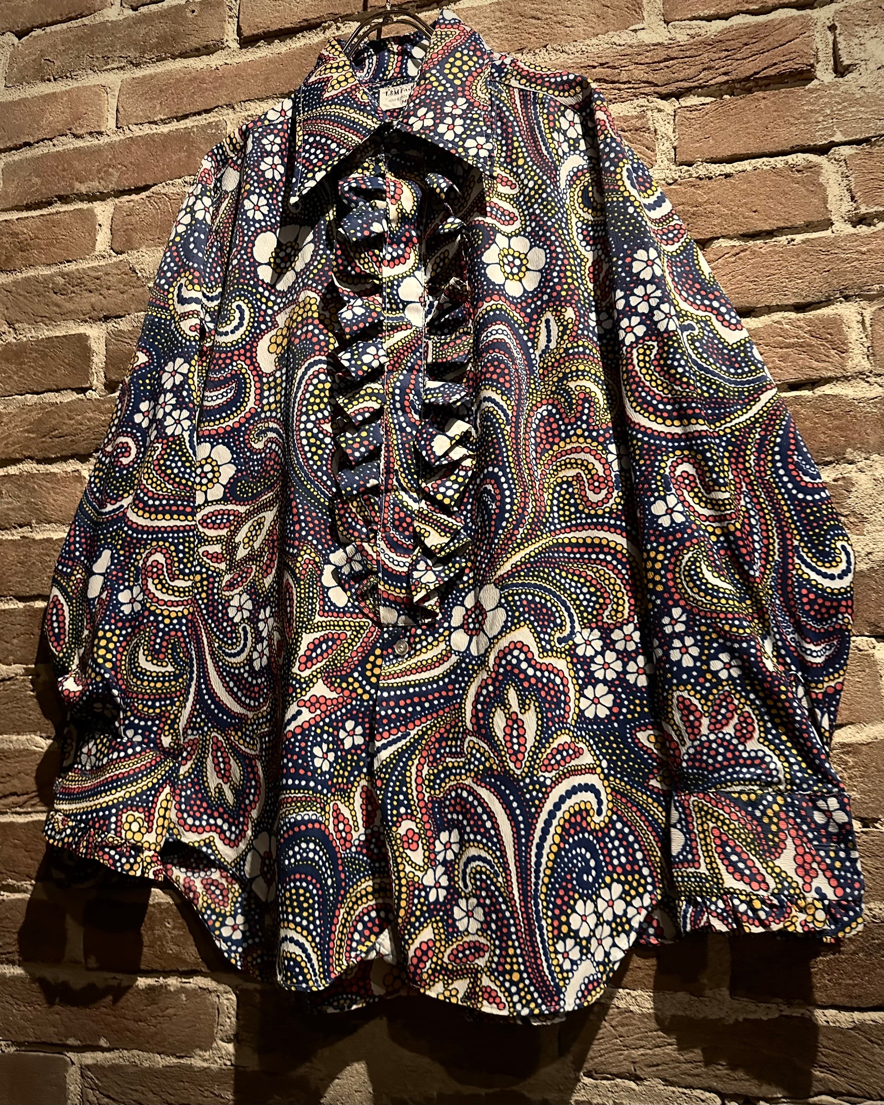 70’sカルチャーを色濃く反映した、アーティスティックな総柄フリルシャツをご紹介いたします。