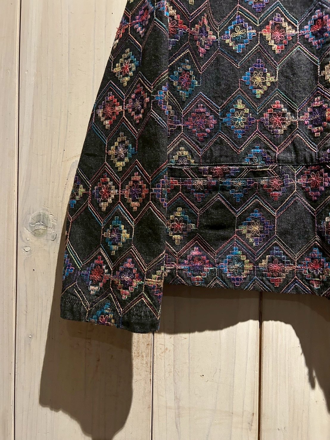 ヴィンテージにおいても定番とされる刺繍のアイテムですが、ここまで緻密かつアーティスティックなルックスに仕上げられているのは、このブランドならではかと。