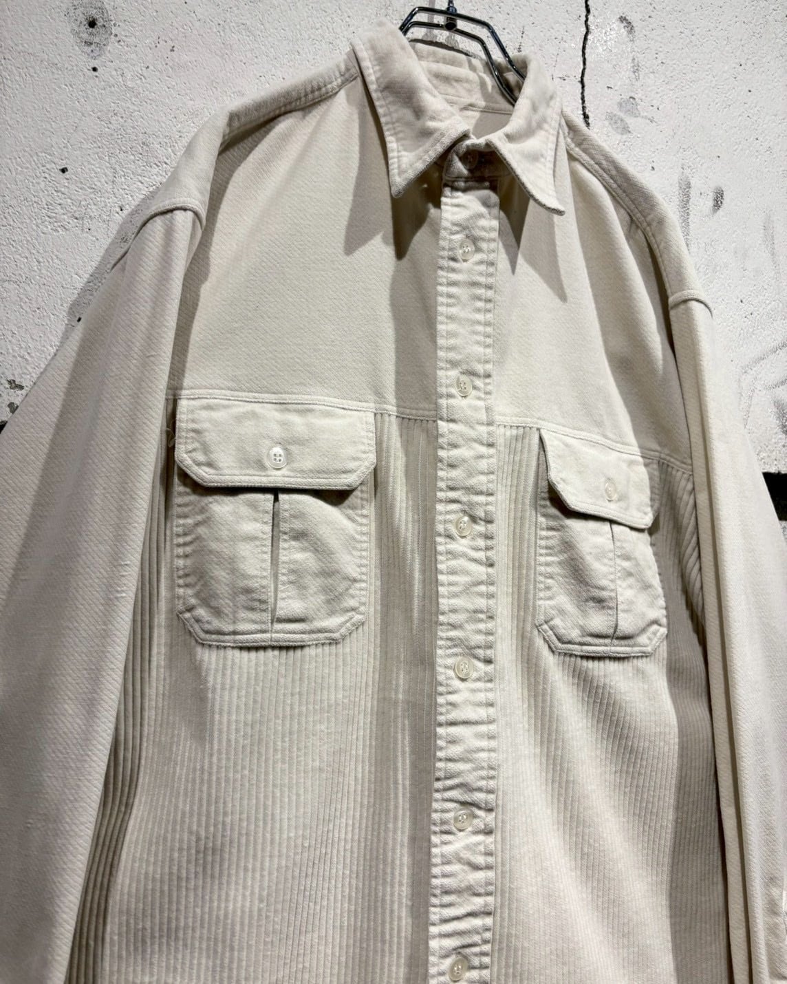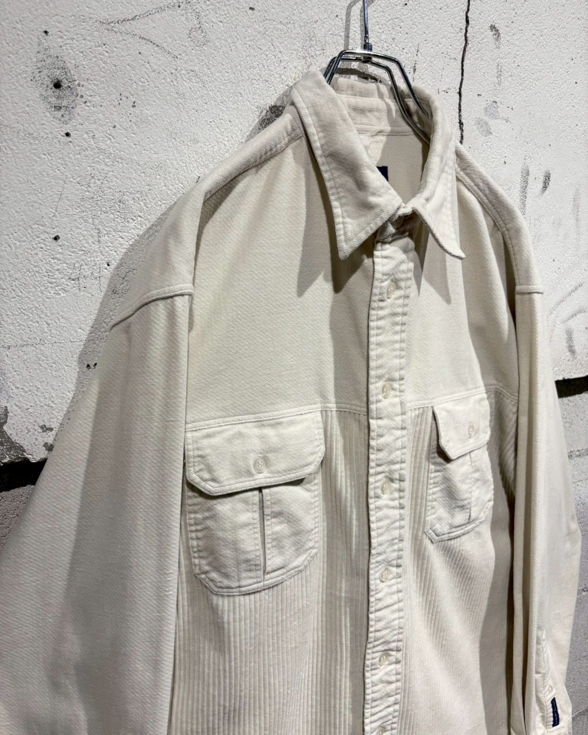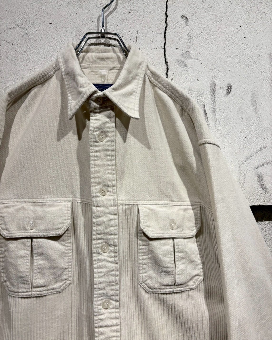 柔らかなコットン素材をベースに、身頃へコーデュロイを切り替えたデザインが特徴的な長袖シャツ。