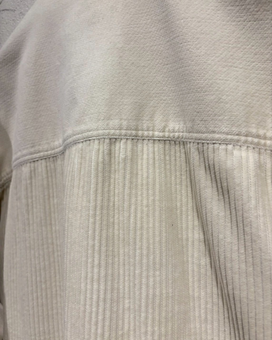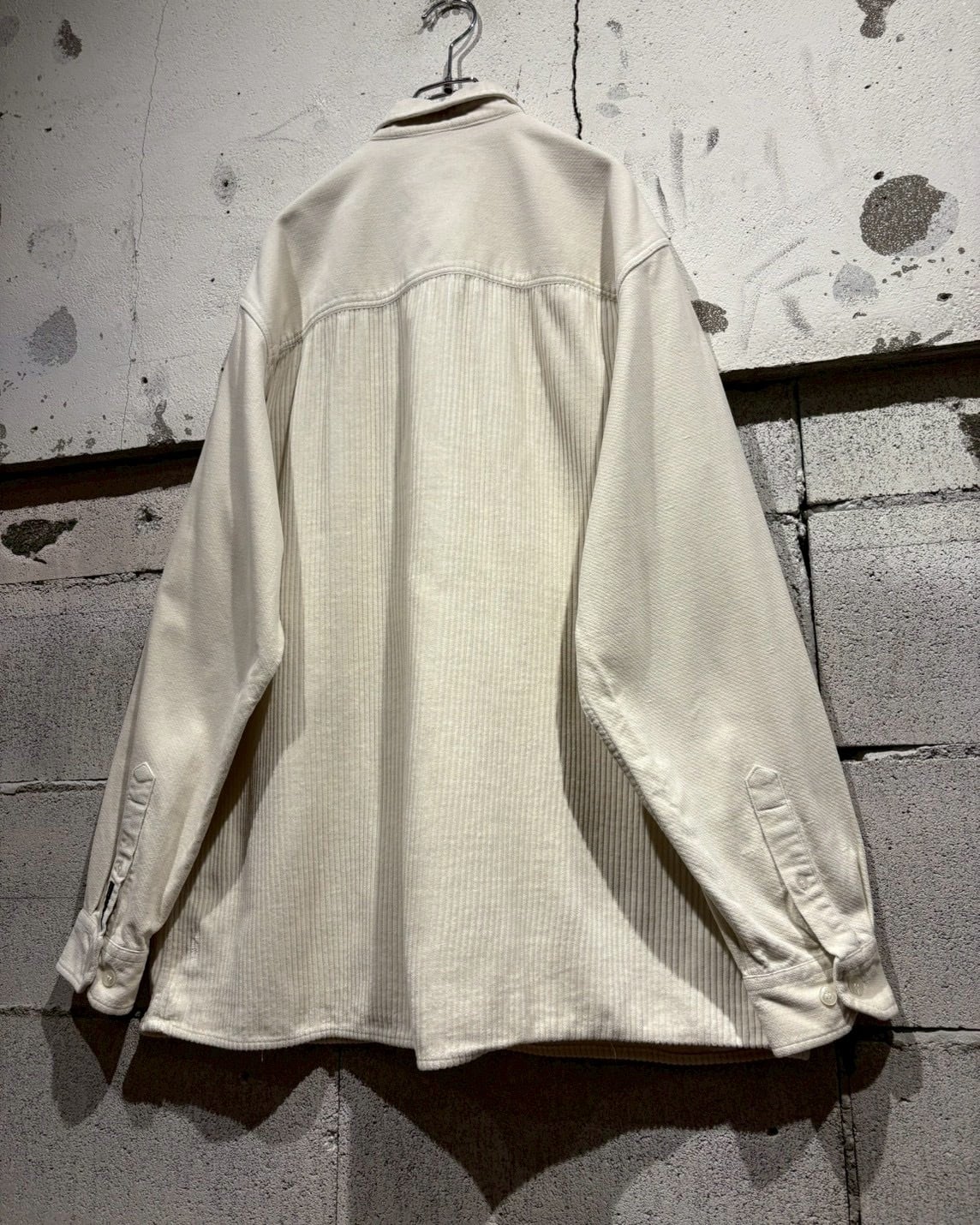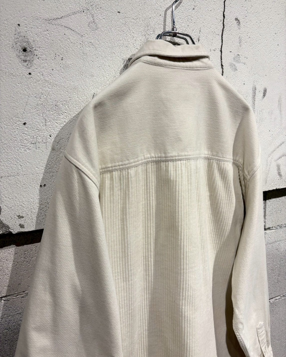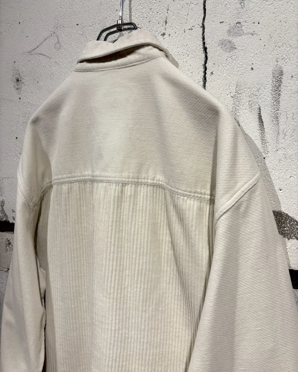 柔らかなコットン素材をベースに、身頃へコーデュロイを切り替えたデザインが特徴的な長袖シャツ。