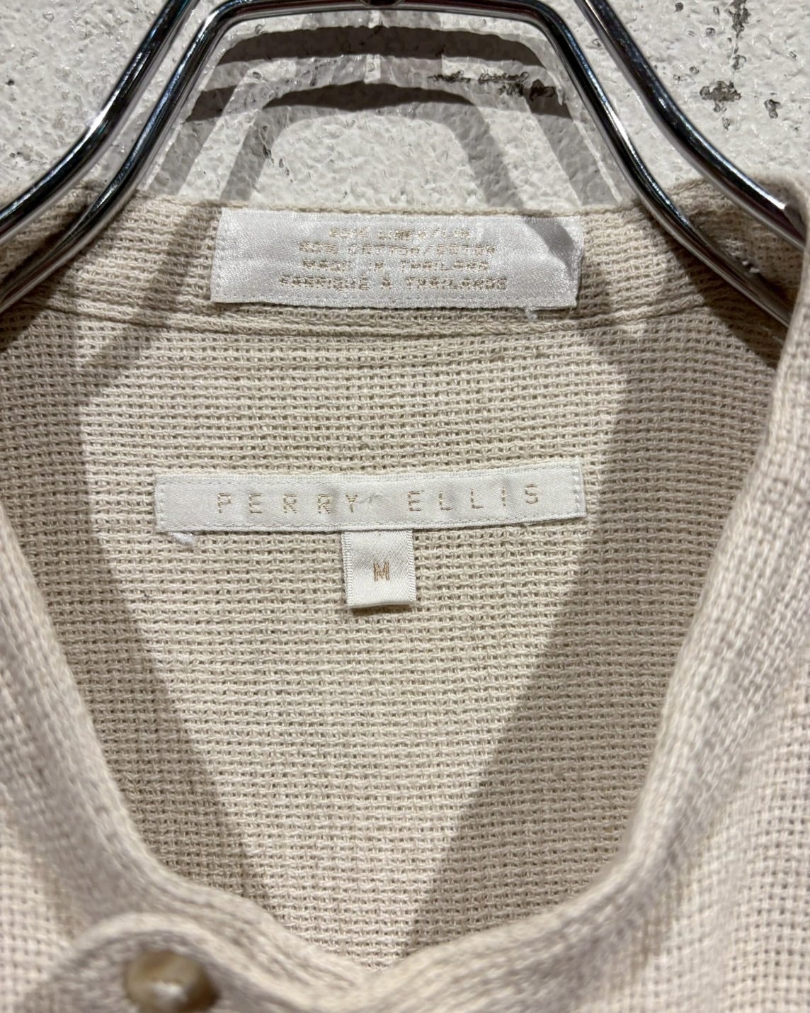 ニュークラシックと称されるスタイルを確立し、マークジェイコブスやトムフォードといった名だたるデザイナーも在籍していたことで知られるファッションブランド“PERRY ELLIS”より、ミニマルな美しさが際立つバンドカラーシャツをご紹介いたします。