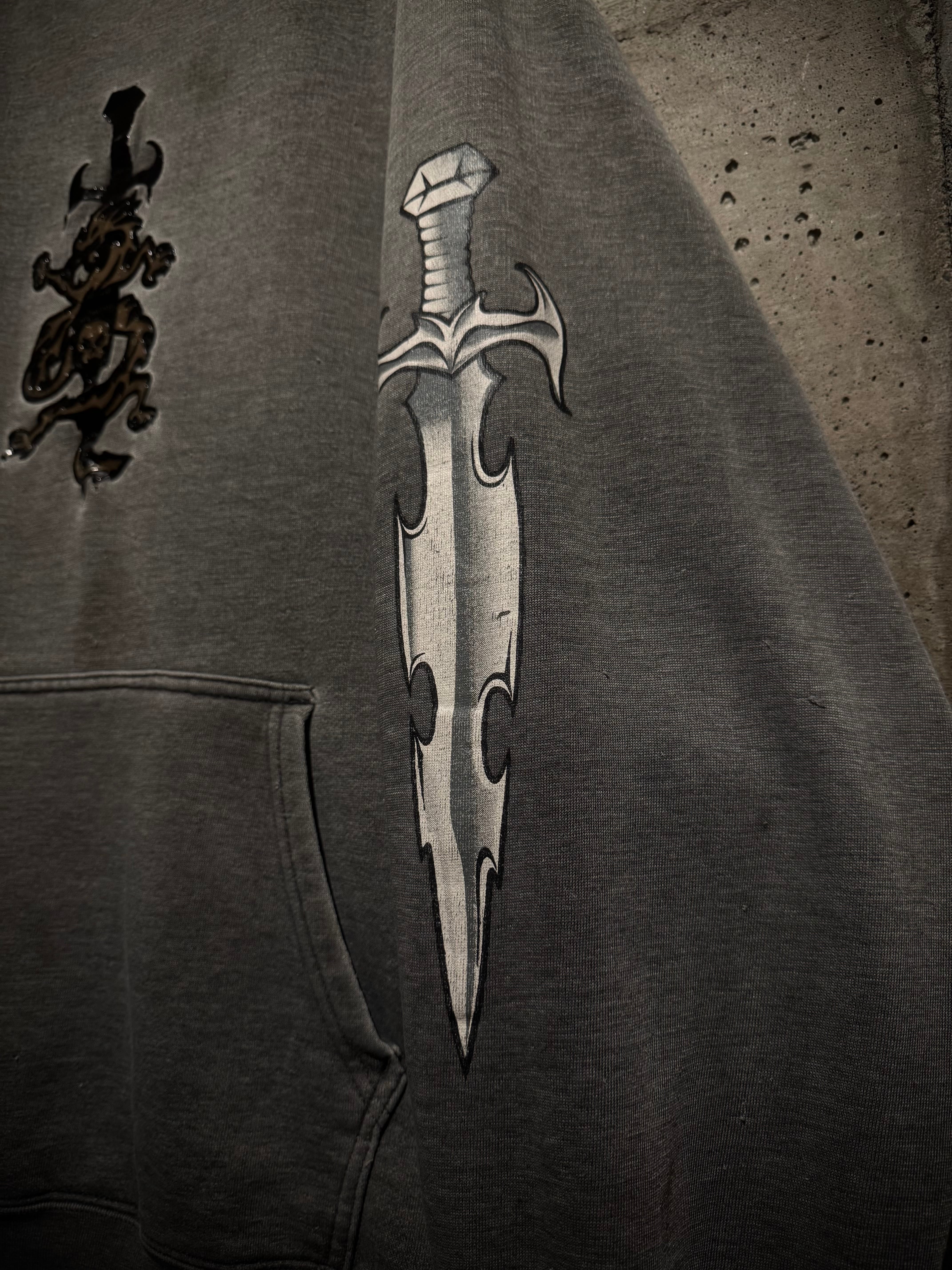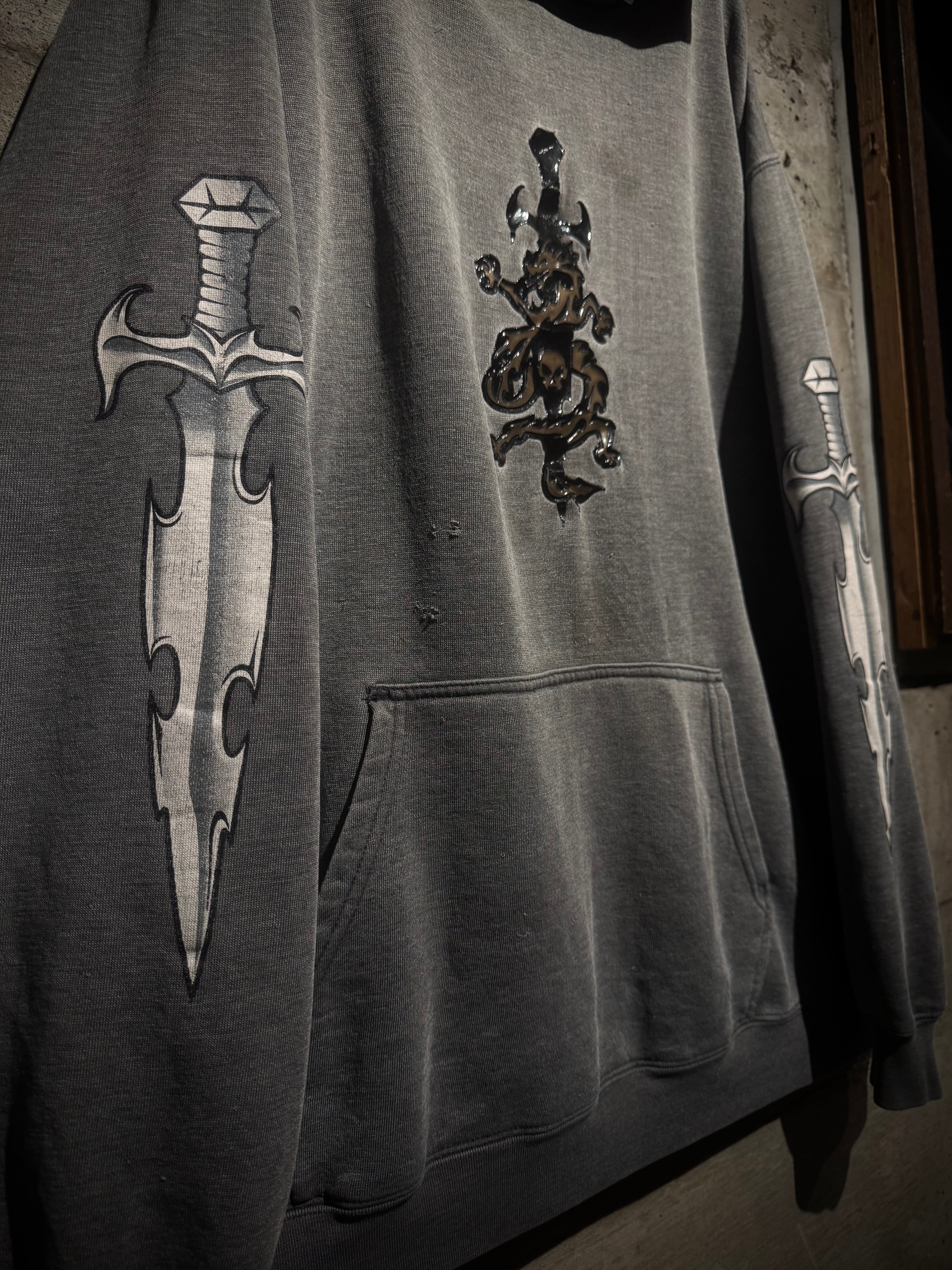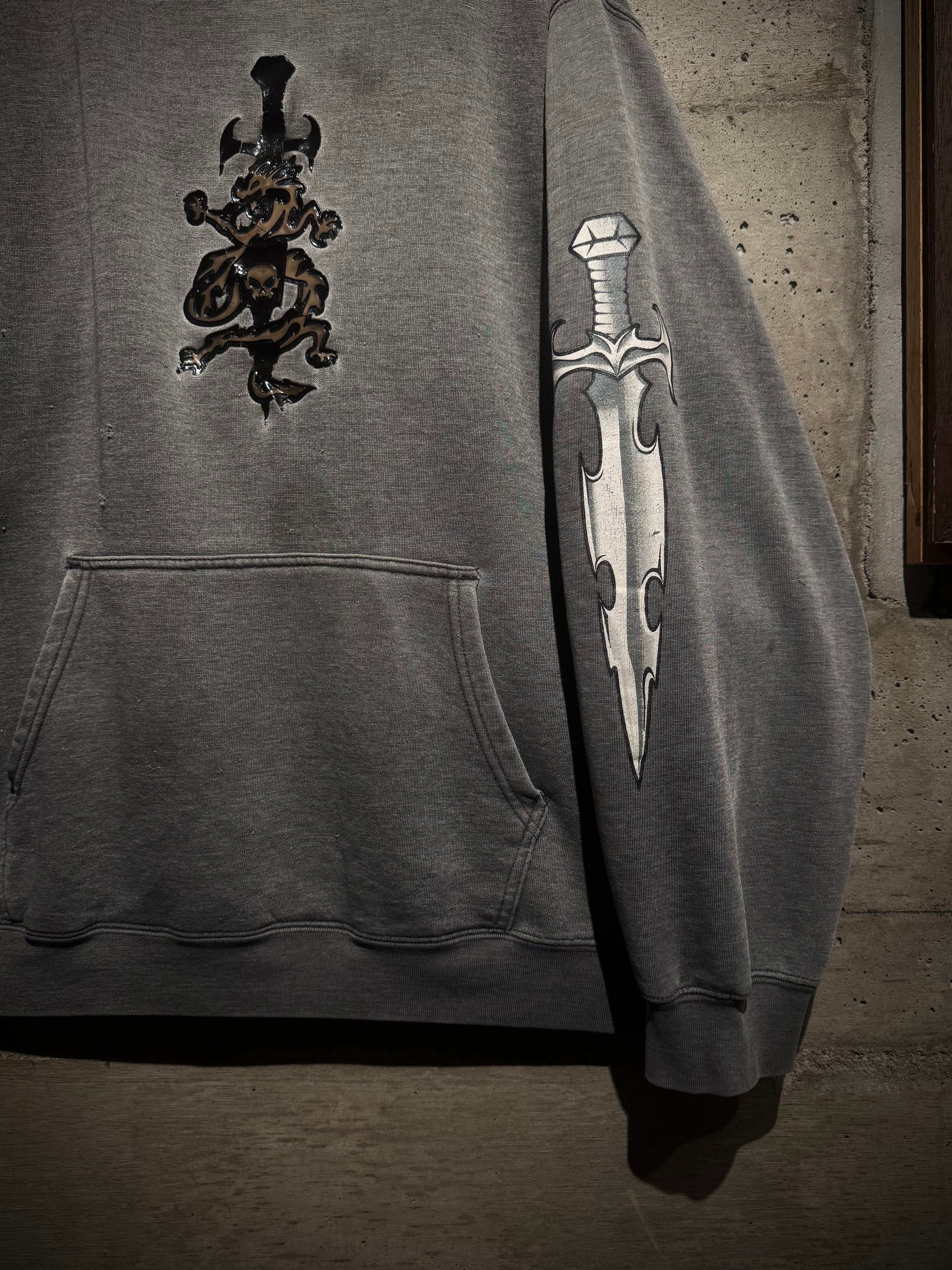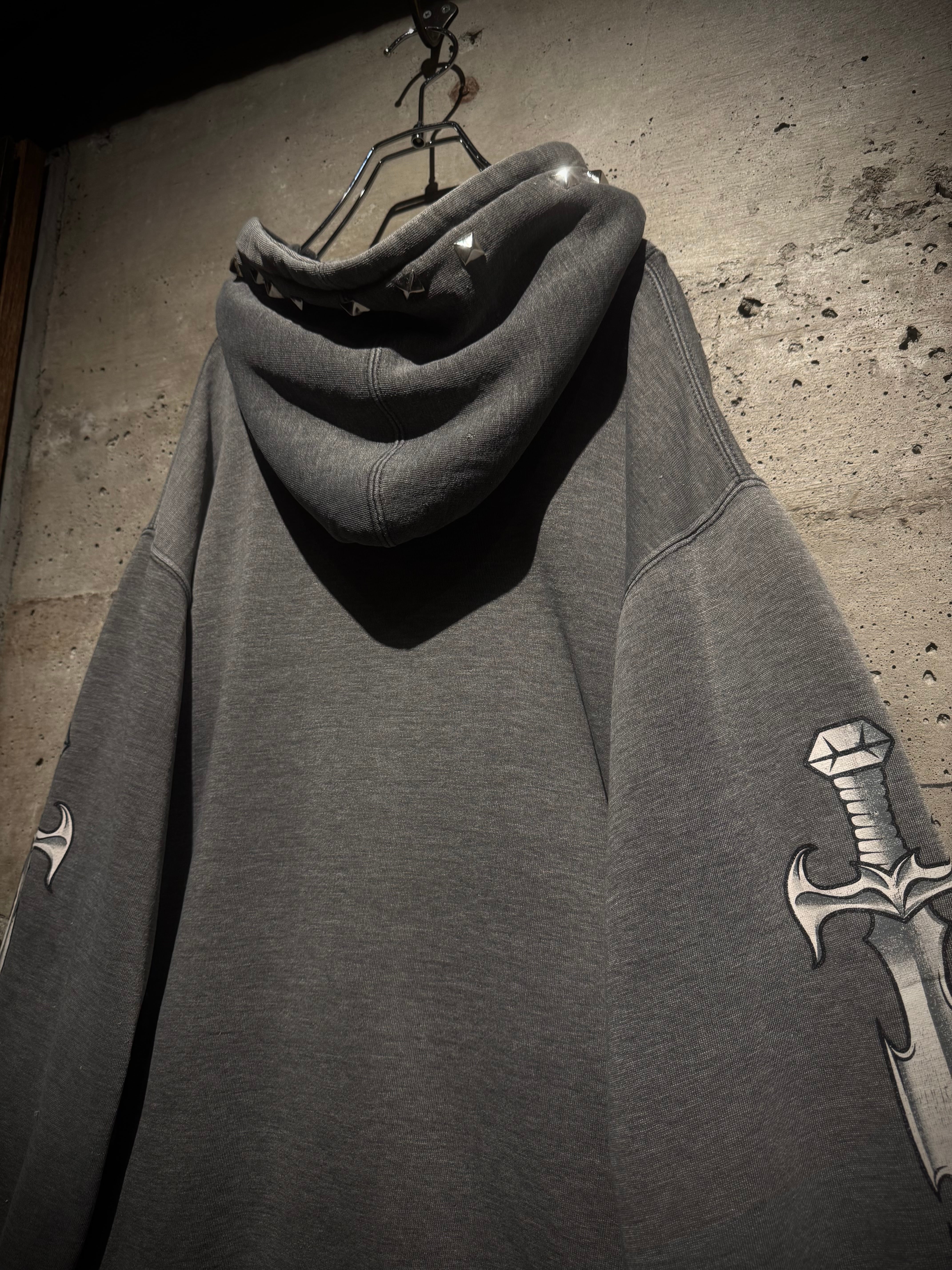 ストリート感と、退廃的な要素がかけ合わさった存在感抜群のプルオーバーフーディ。