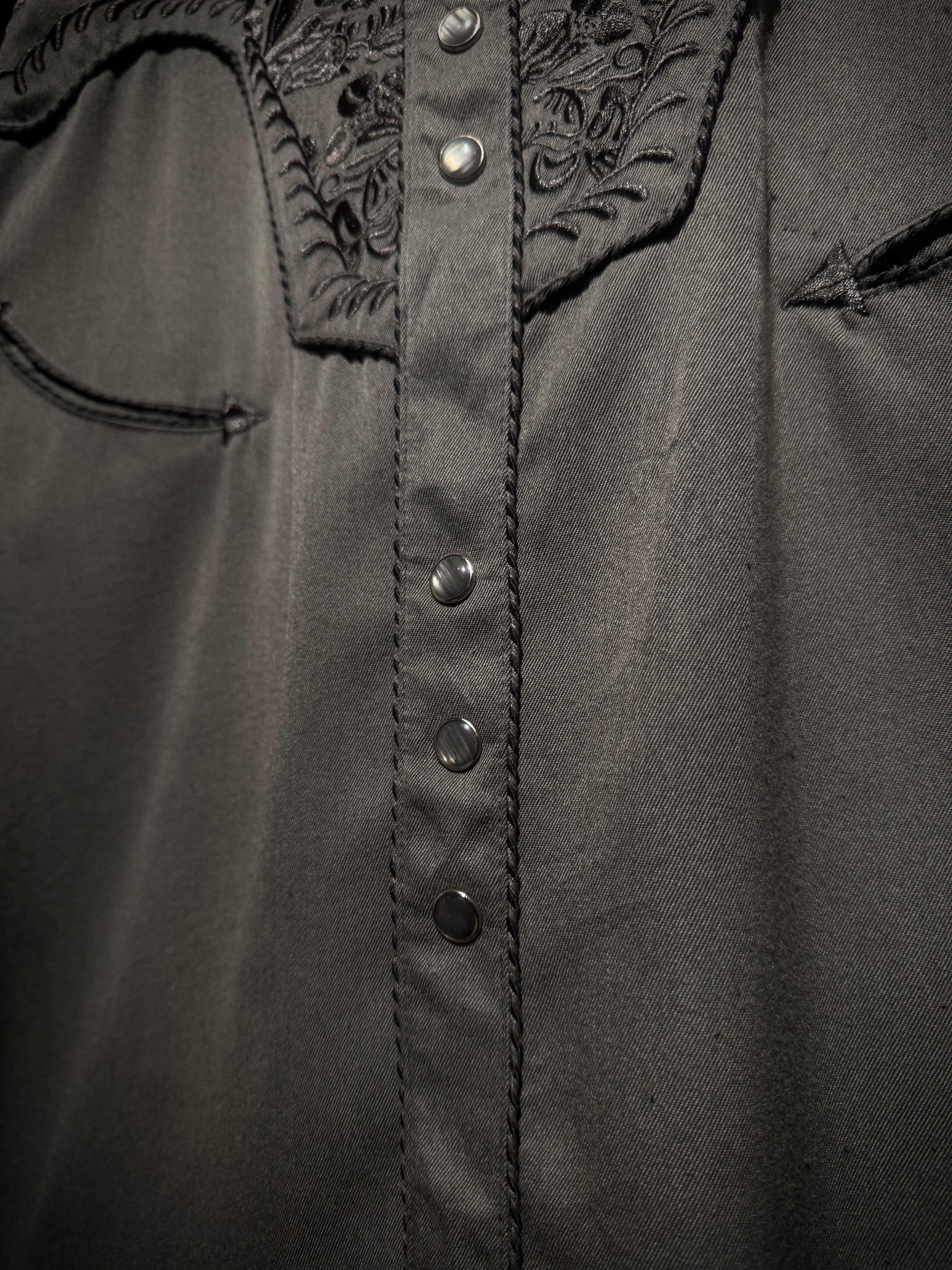 パールスナップボタンやアローポケット、ウエスタンヨークといったクラシックなディテールをしっかりと踏襲しつつ、全体をグレーで統一することで、洗練されたモードな雰囲気を纏っています。