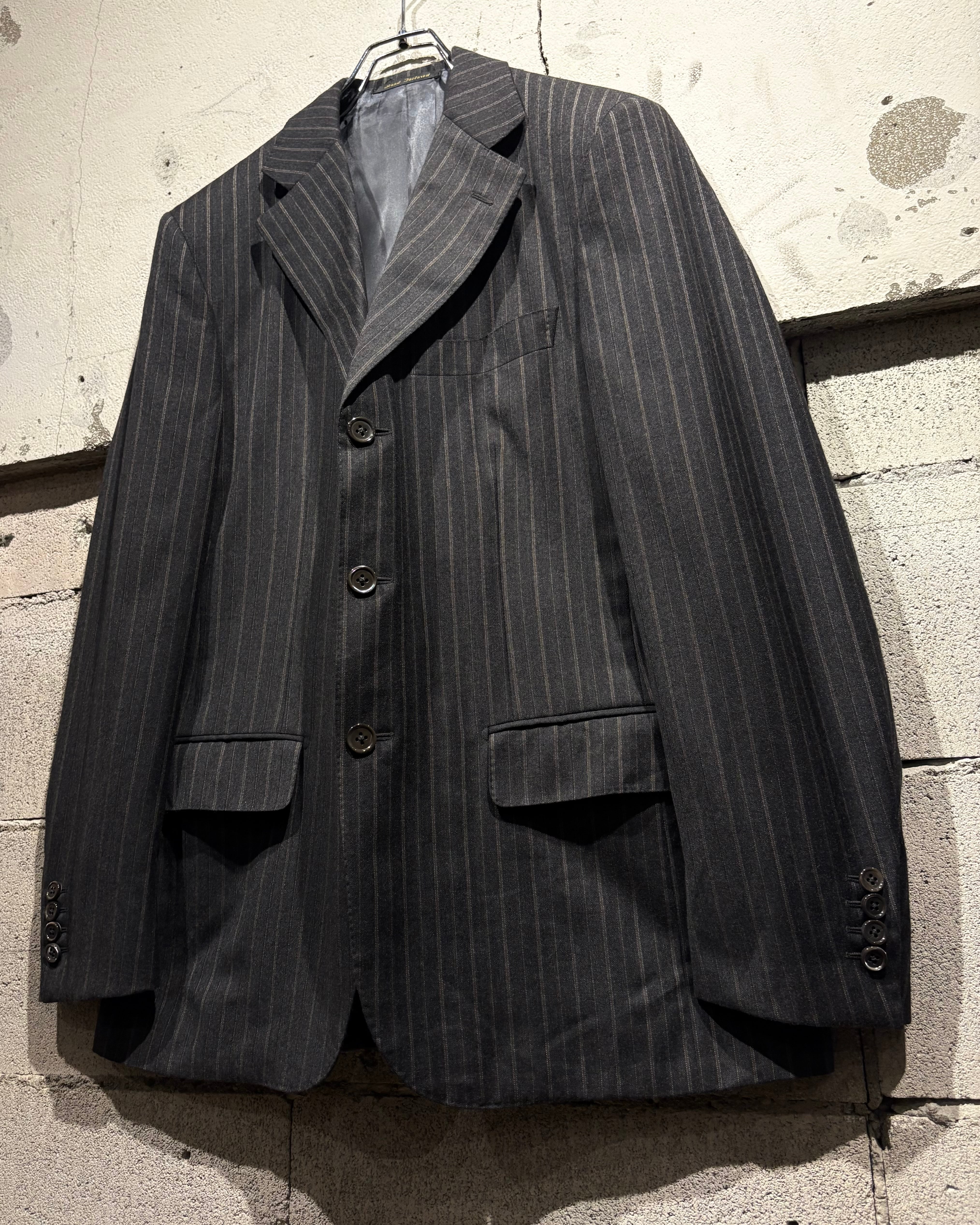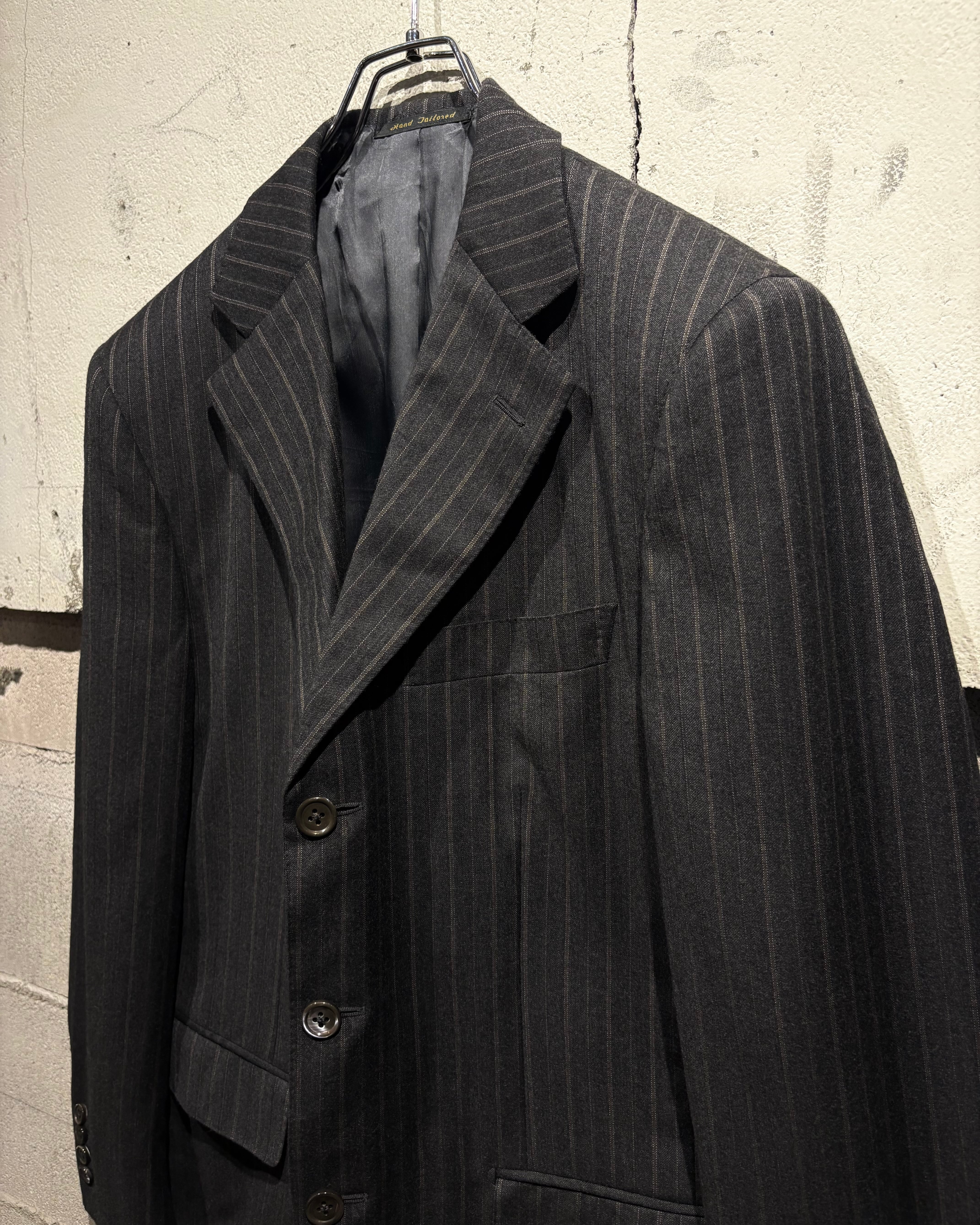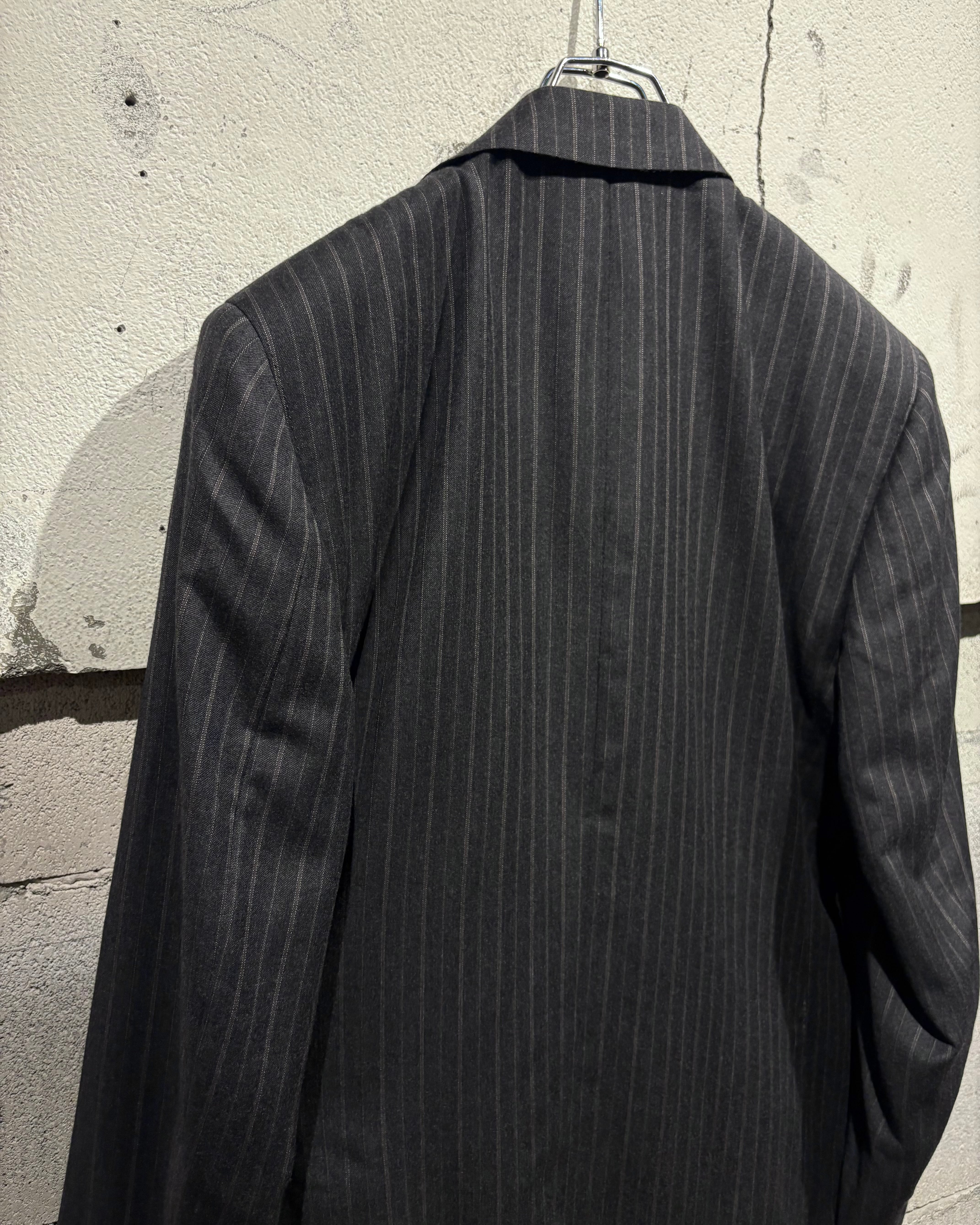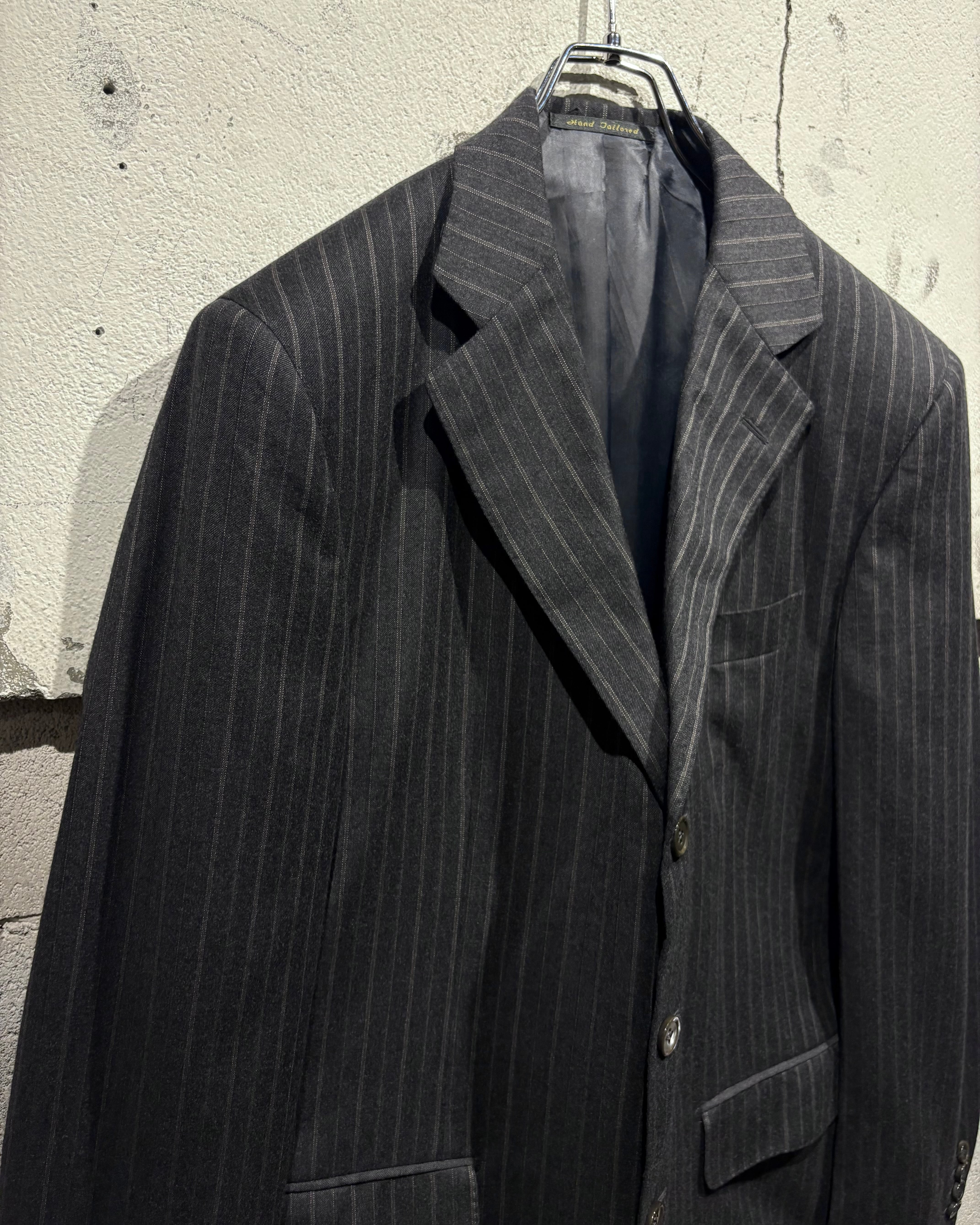 ブラックベースに繊細なストライプを走らせ、クラシックな佇まいに仕上がった1着。