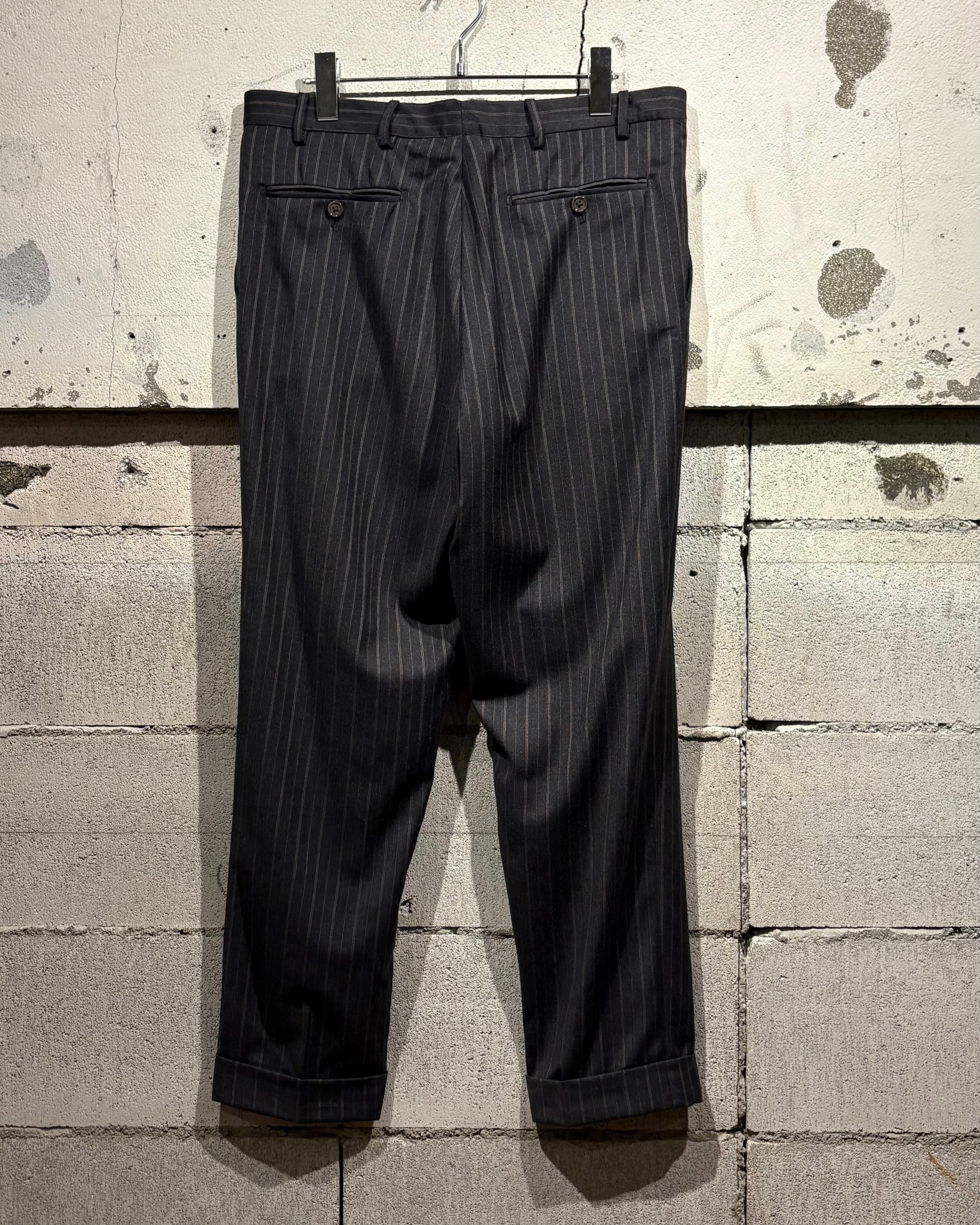 ジャケットはシングル3ボタン仕様で、イタリアンテーラリングらしい端正で無駄のない設計。ラペル、ショルダー、全体のラインに至るまで計算された美しさが際立ちます。パンツはノータックのミニマルなフロントに、裾ダブル仕様のテーパードで着用時のシルエットも抜群。