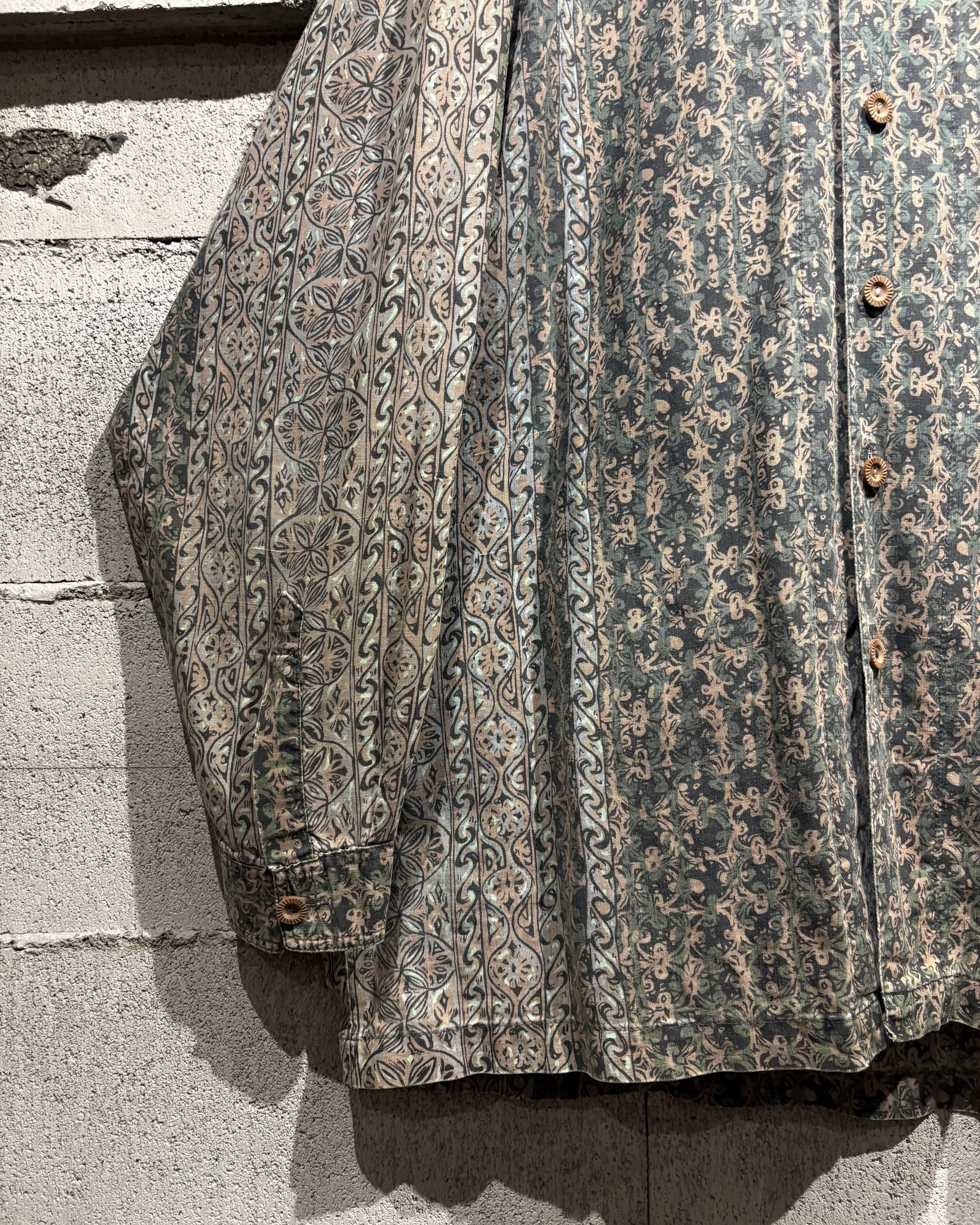 old surf香るネイティブパターンを載せた長袖シャツの逸品。ボディとアームで柄を切り替えたセンスも良く、独特な雰囲気を纏いつつストリートなエッセンスを感じられる仕上がりに。