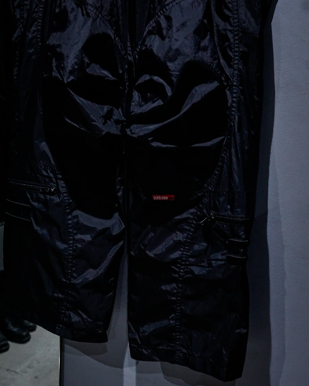 フロント膝には2段のタック、立体感を出すためのテクニカルな切り替えが効いており、着用時のシルエットも抜群に良い、、、随所に施されたECKOとMARVELタグ、背面ウエストベルトループ付近のX-MENタグも◎