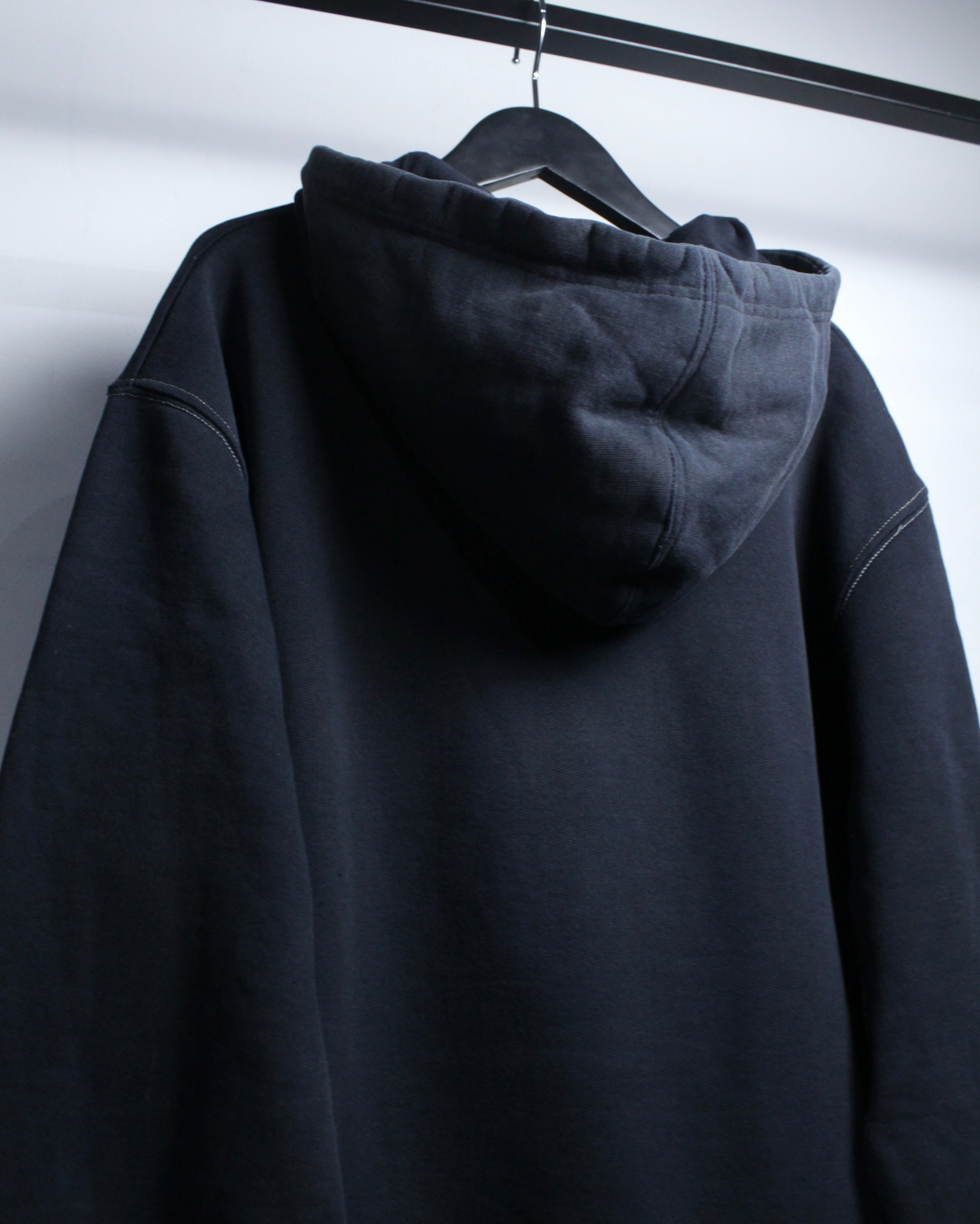 ブラックボディをベースに、長年の着用によって生まれた褪色やアタリが随所に浮かび上がり、均一ではない色ムラが唯一無二の表情を形成。柔らかく馴染んだコットン生地は、着古されたヴィンテージならではの風合いと抜群の着心地を兼ね備えています。