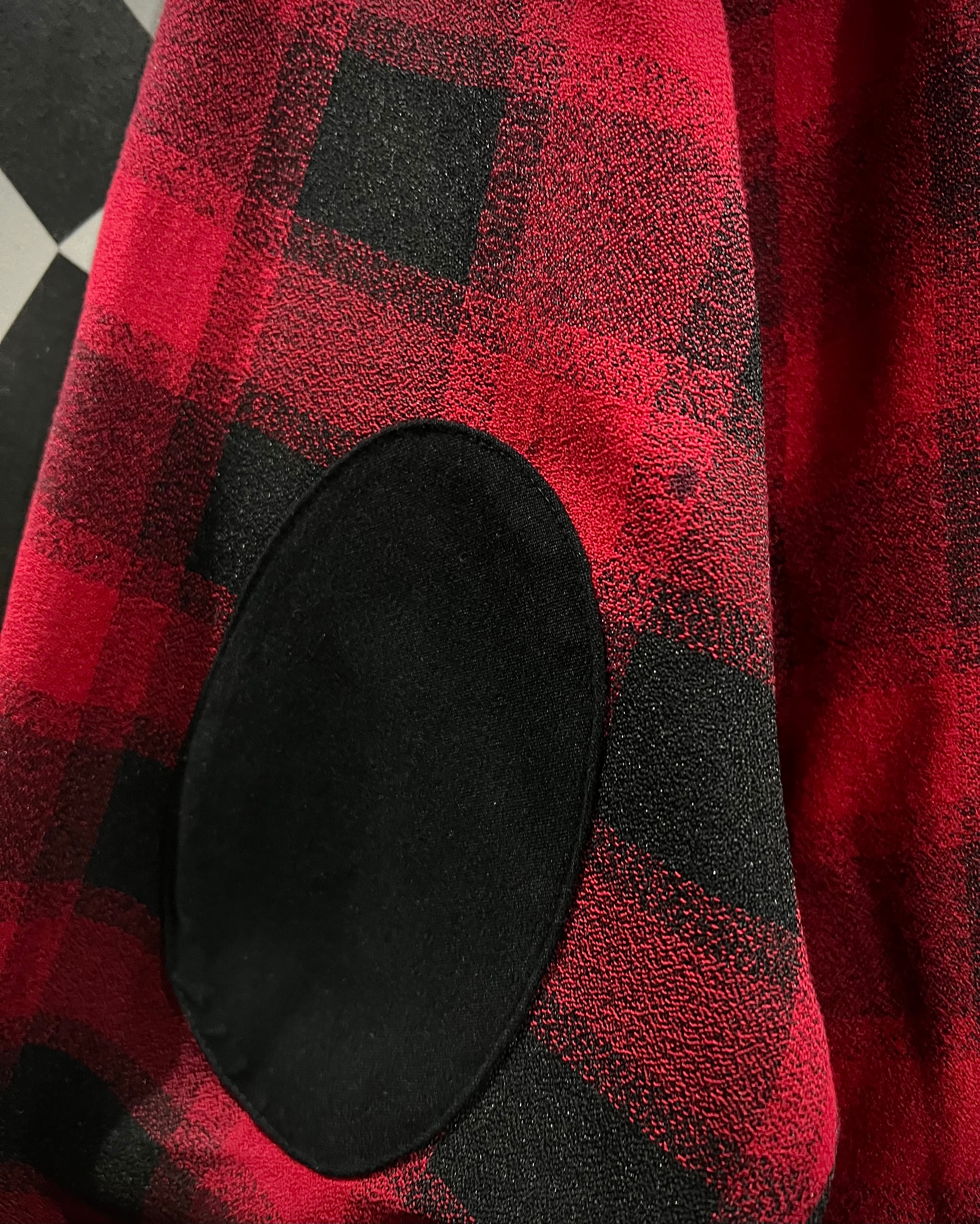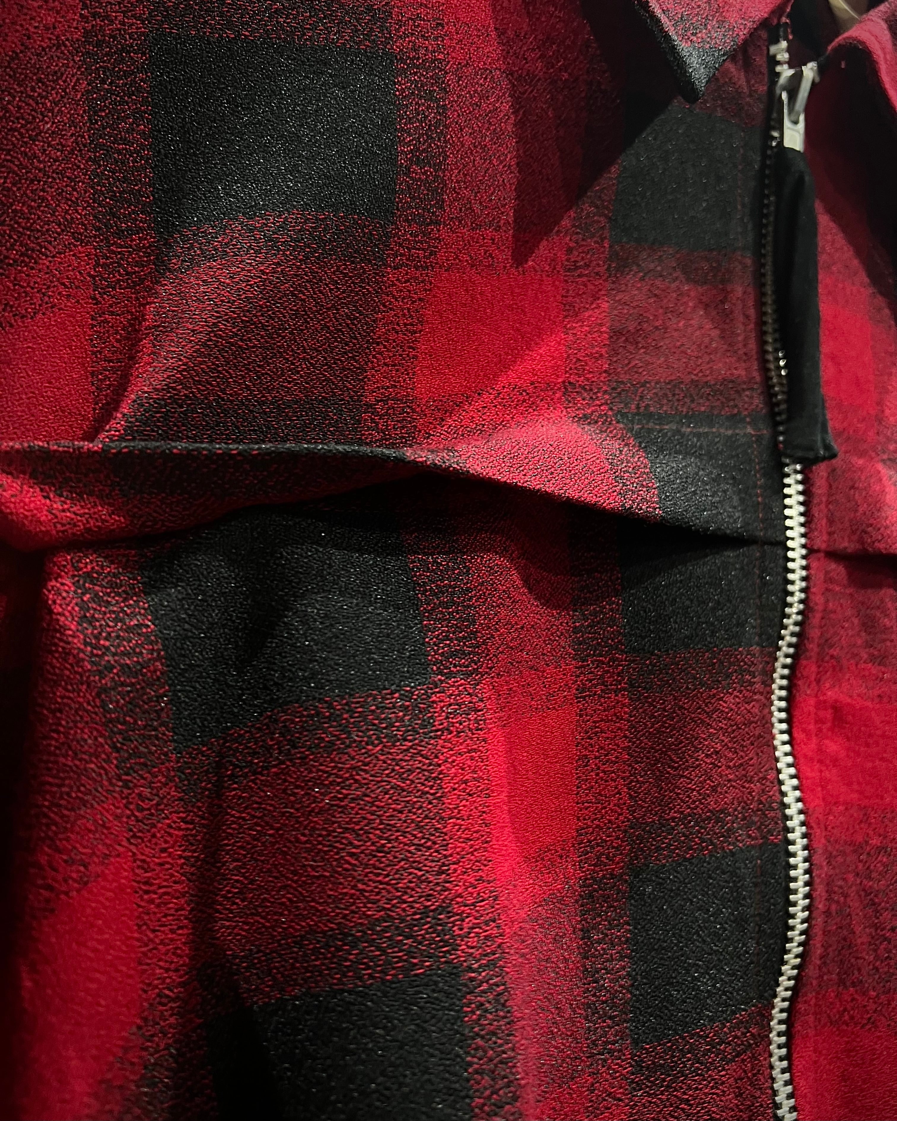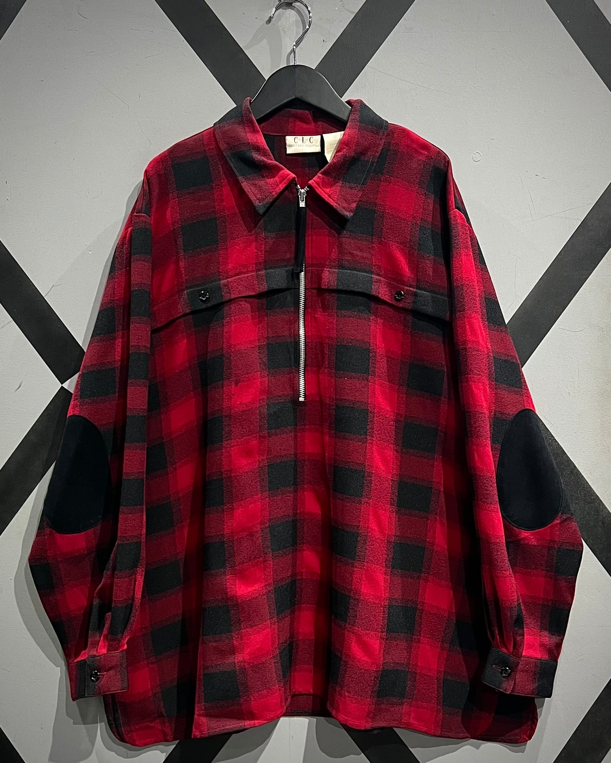 赤×黒のバッファローチェックが目を惹く、ハーフジッププルオーバーシャツをご紹介いたします。