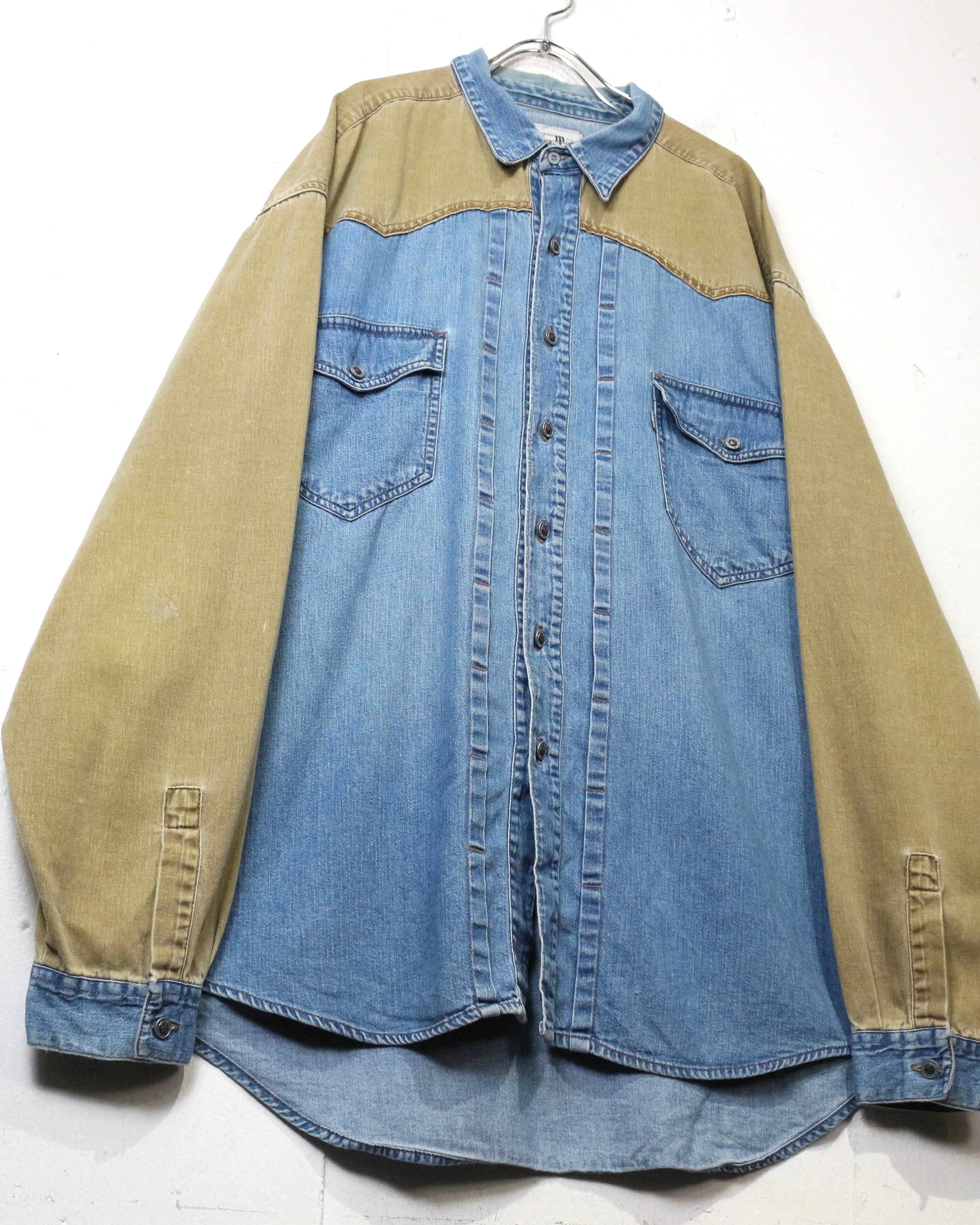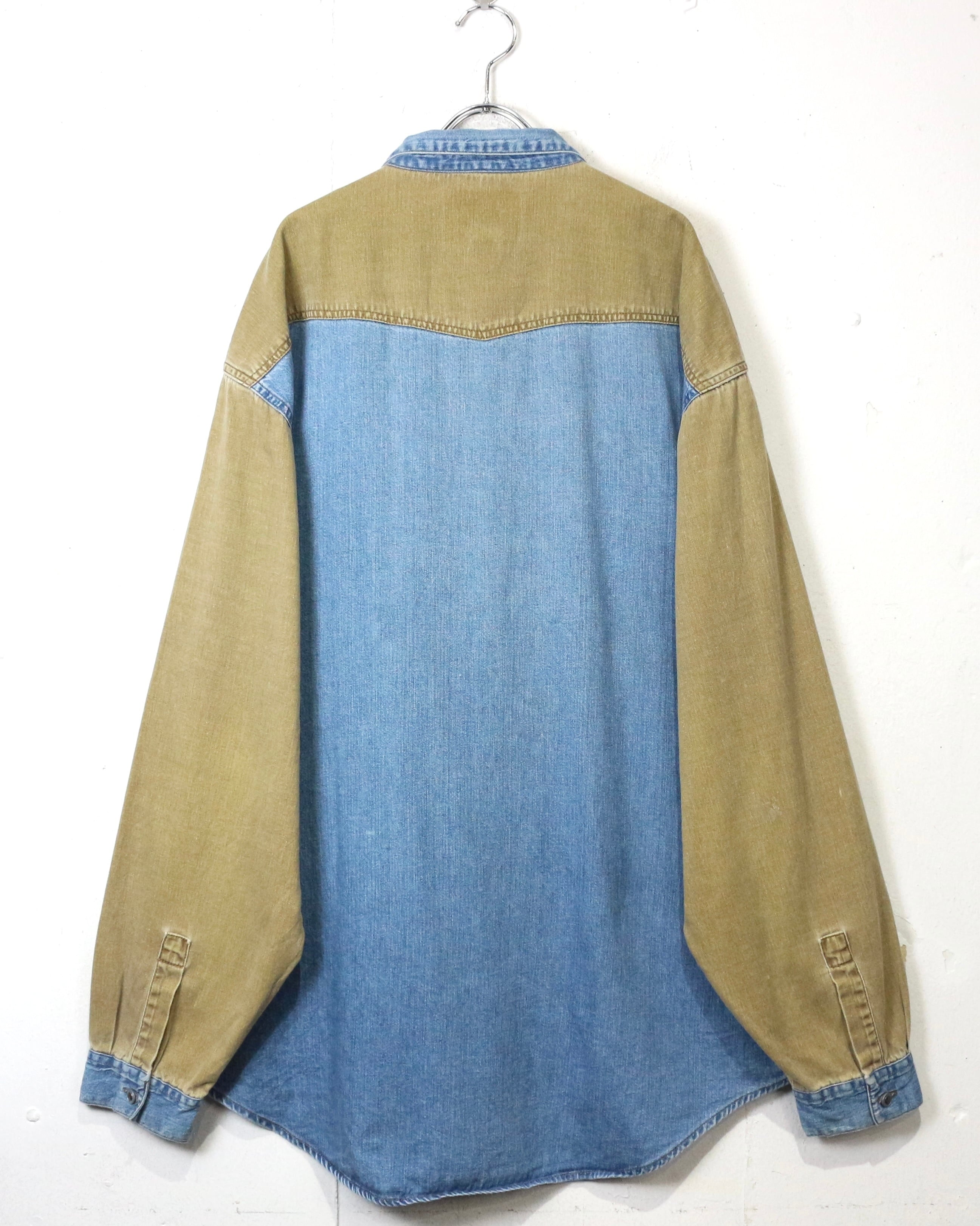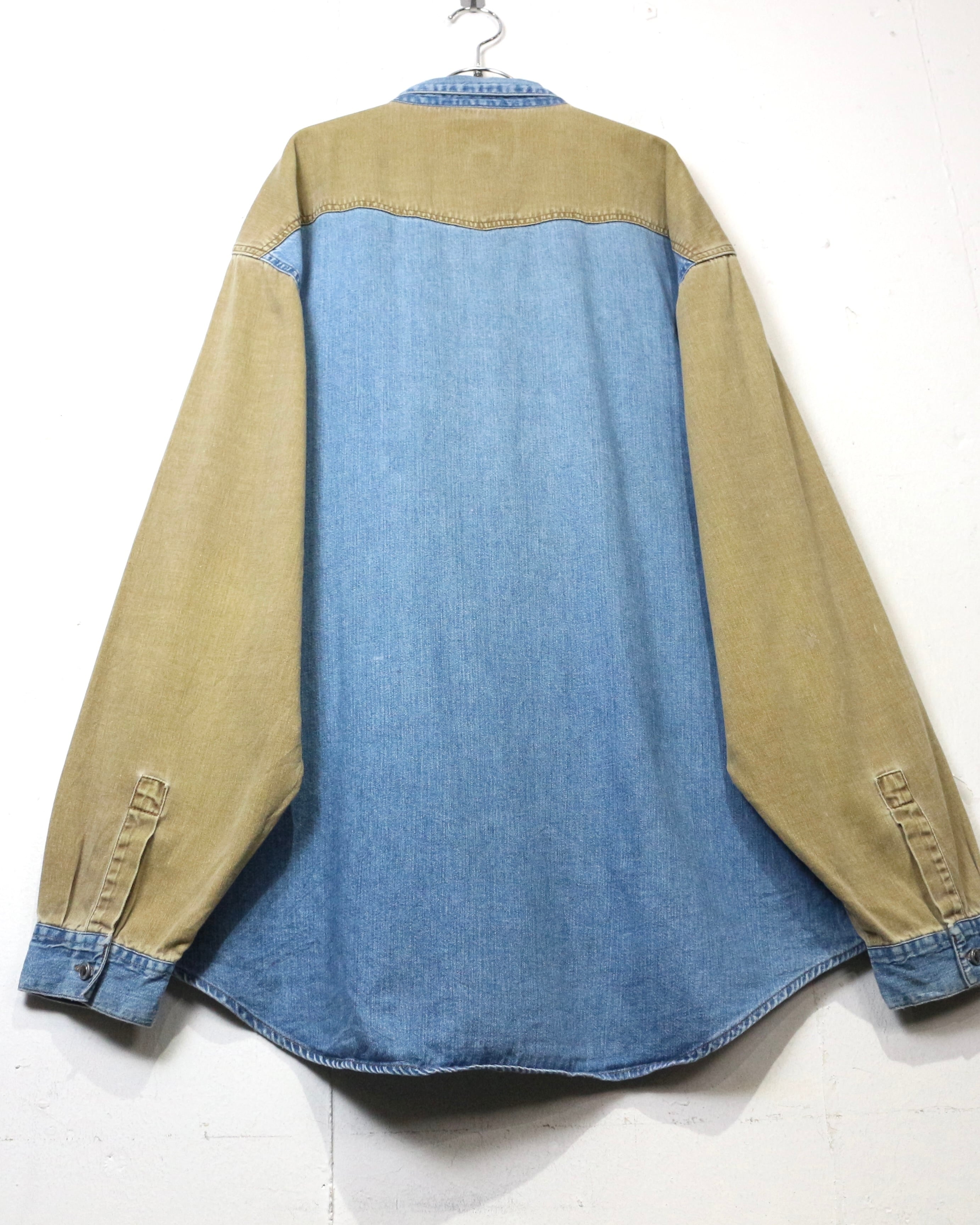 ベースとなるのは色落ちの美しいインディゴデニム。そこにウエスタンヨークからアームにかけてベージュデニムを大胆に切り替えた、コントラストの効いた1着。