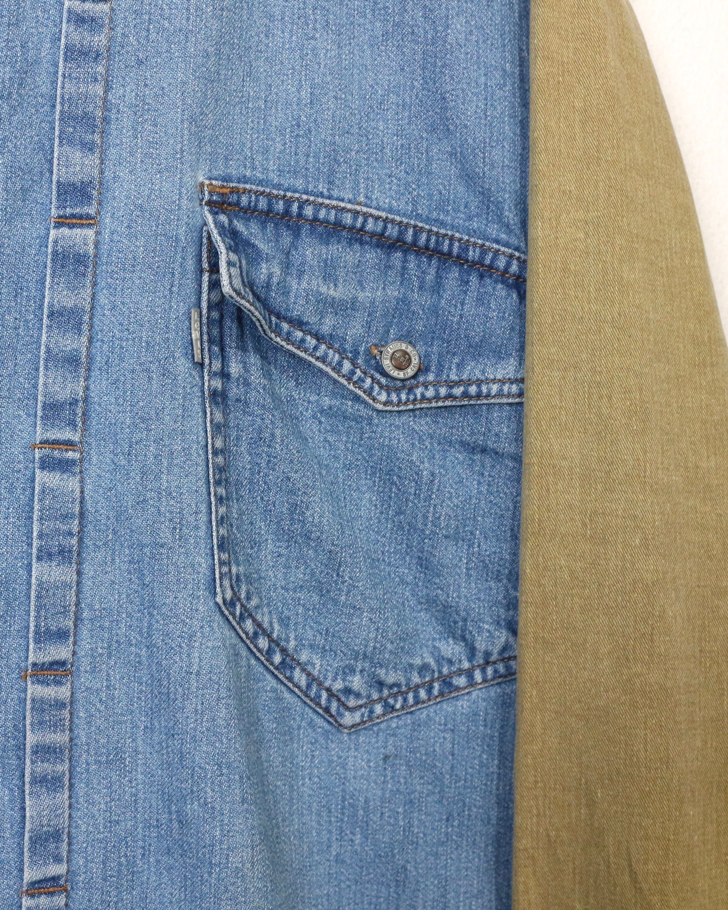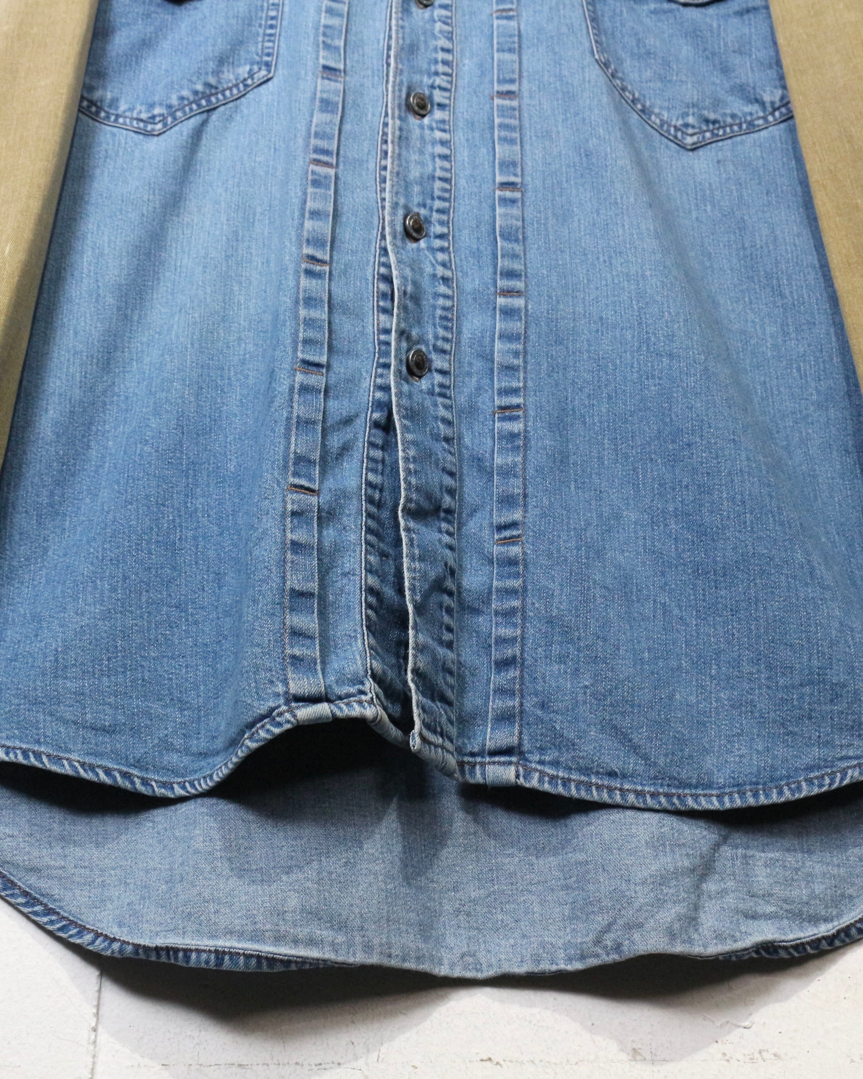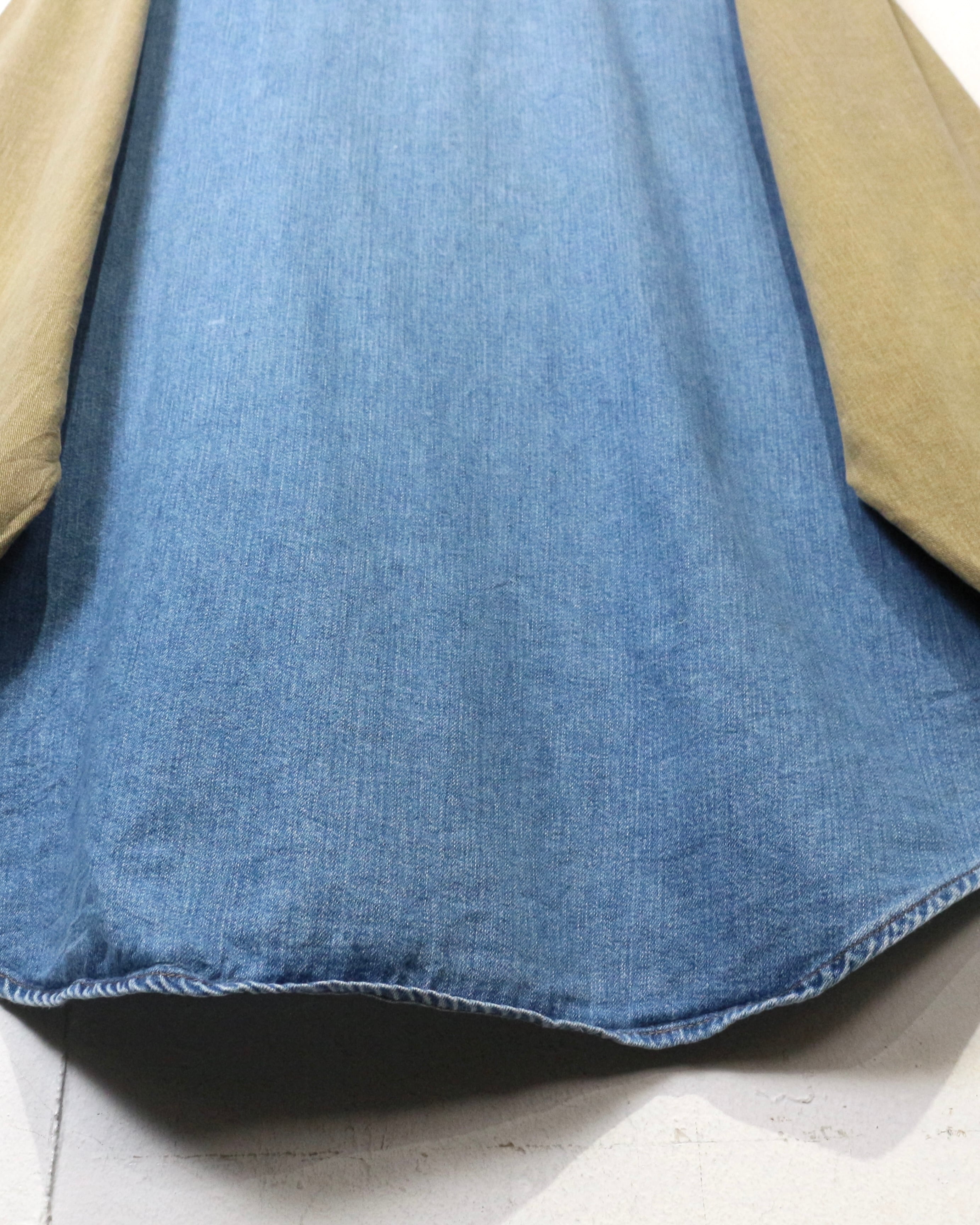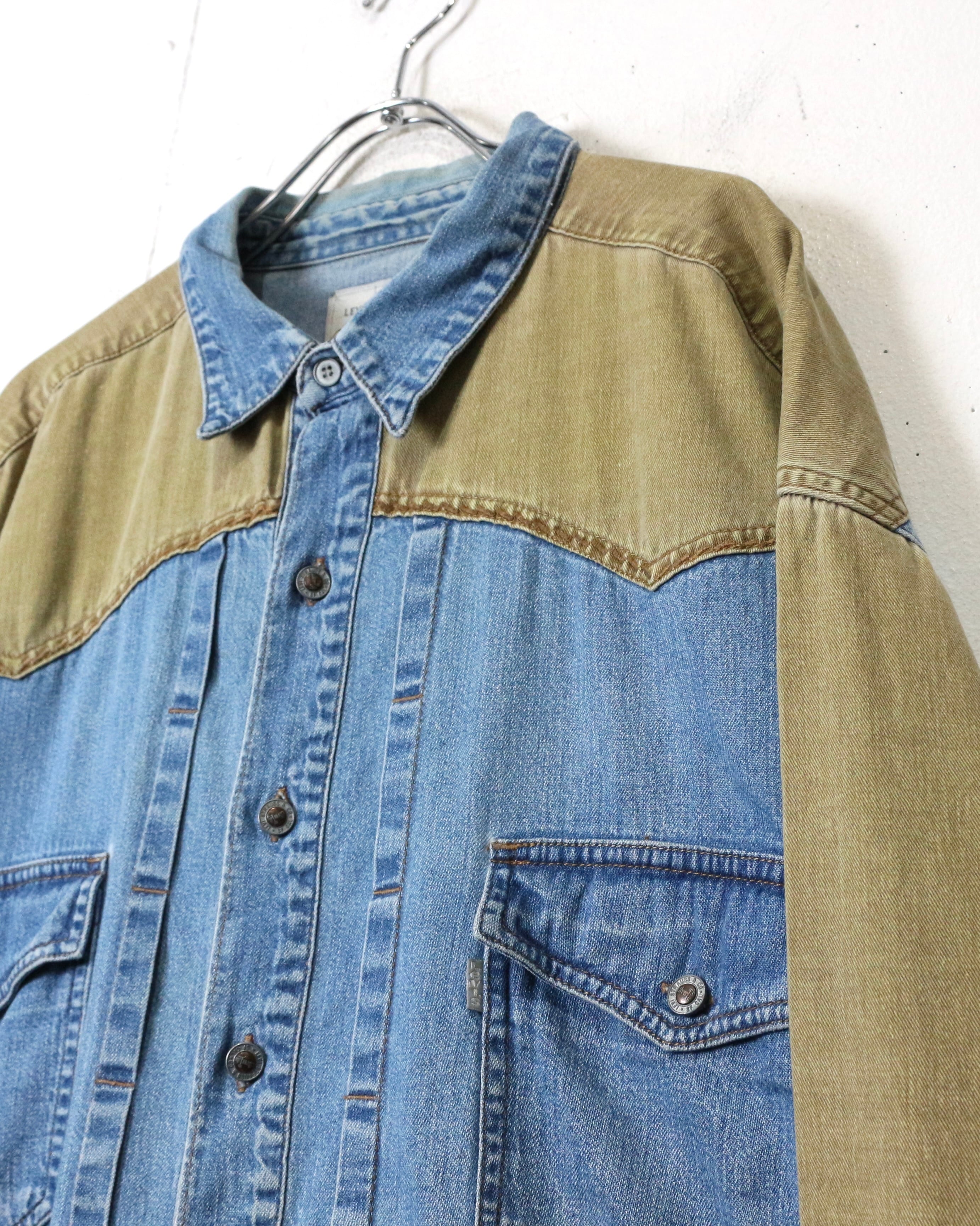 ベースとなるのは色落ちの美しいインディゴデニム。そこにウエスタンヨークからアームにかけてベージュデニムを大胆に切り替えた、コントラストの効いた1着。