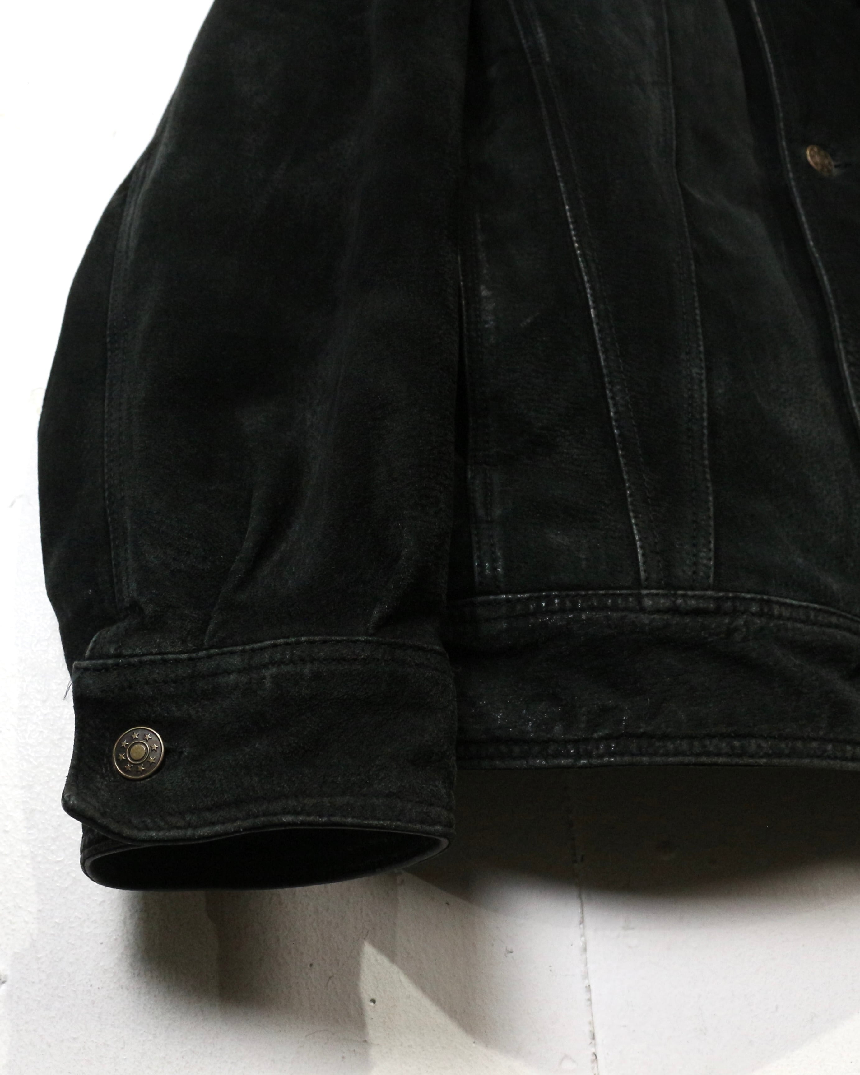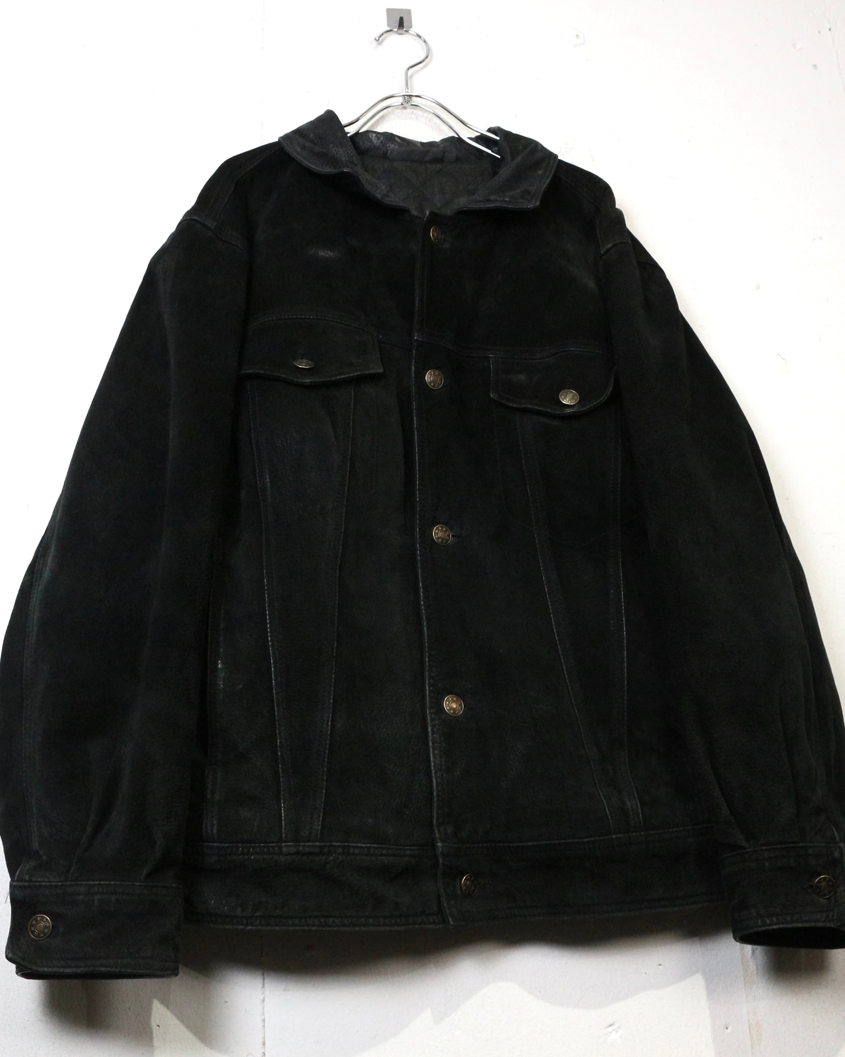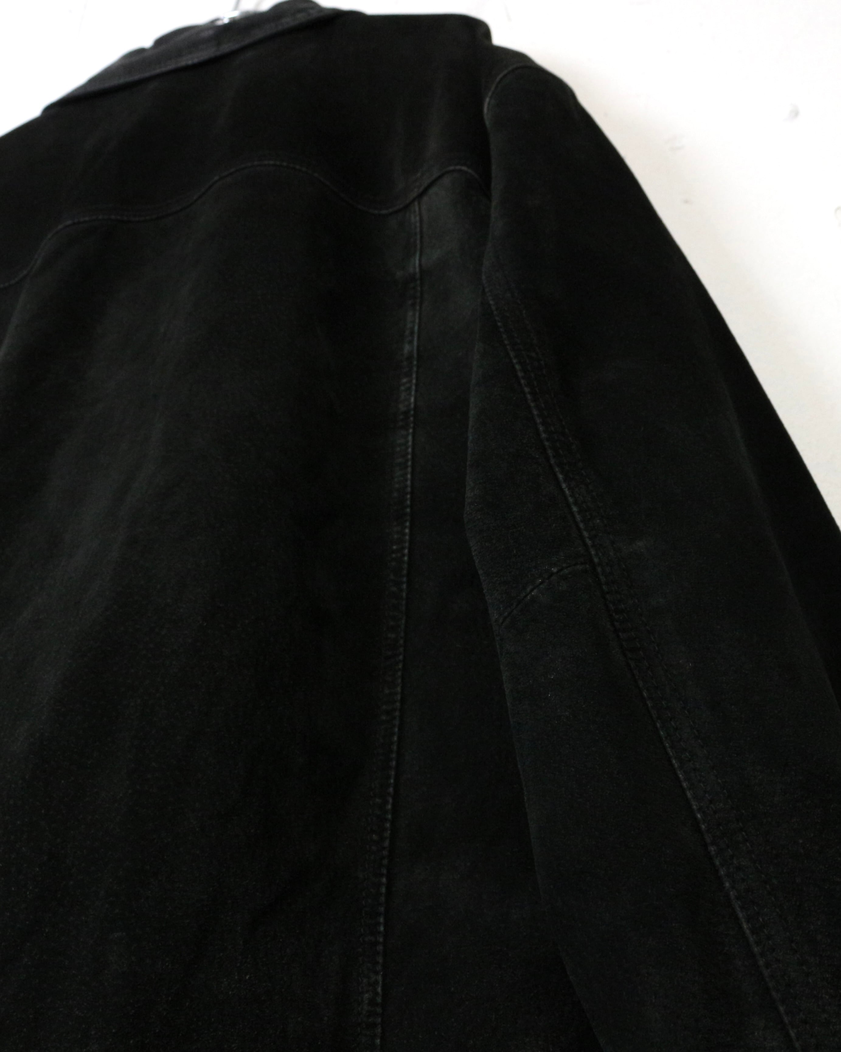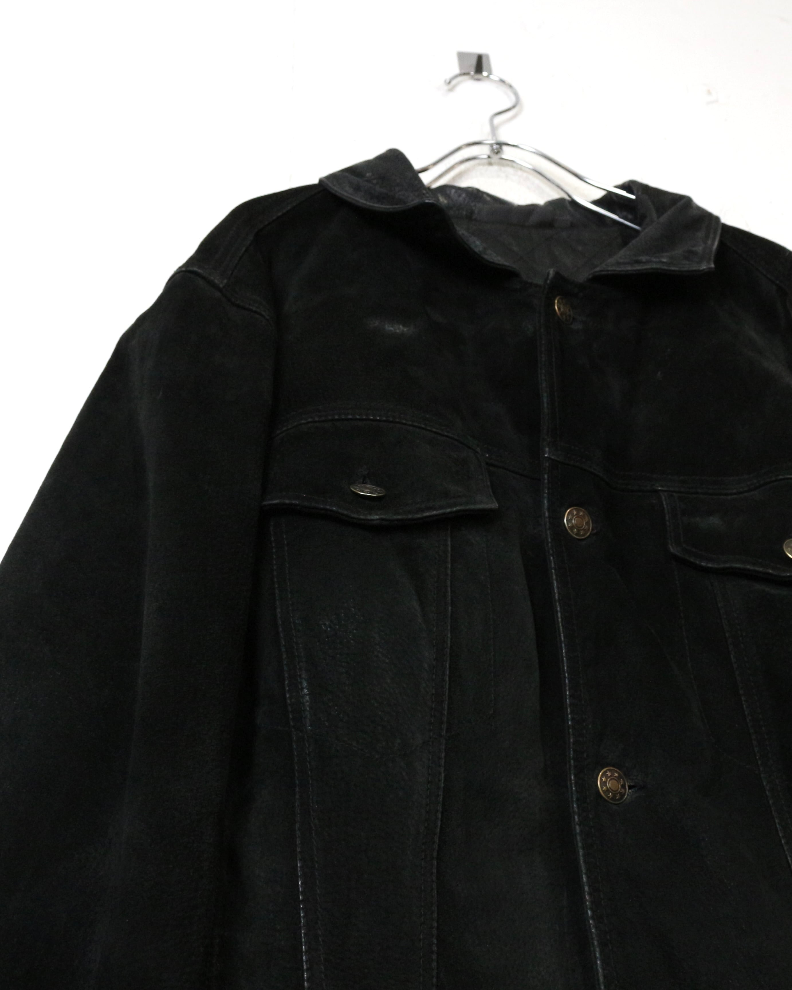 深みのあるブラックの色味と、柔らかな質感が魅力の、稀有なトラッカー型のレザージャケット。