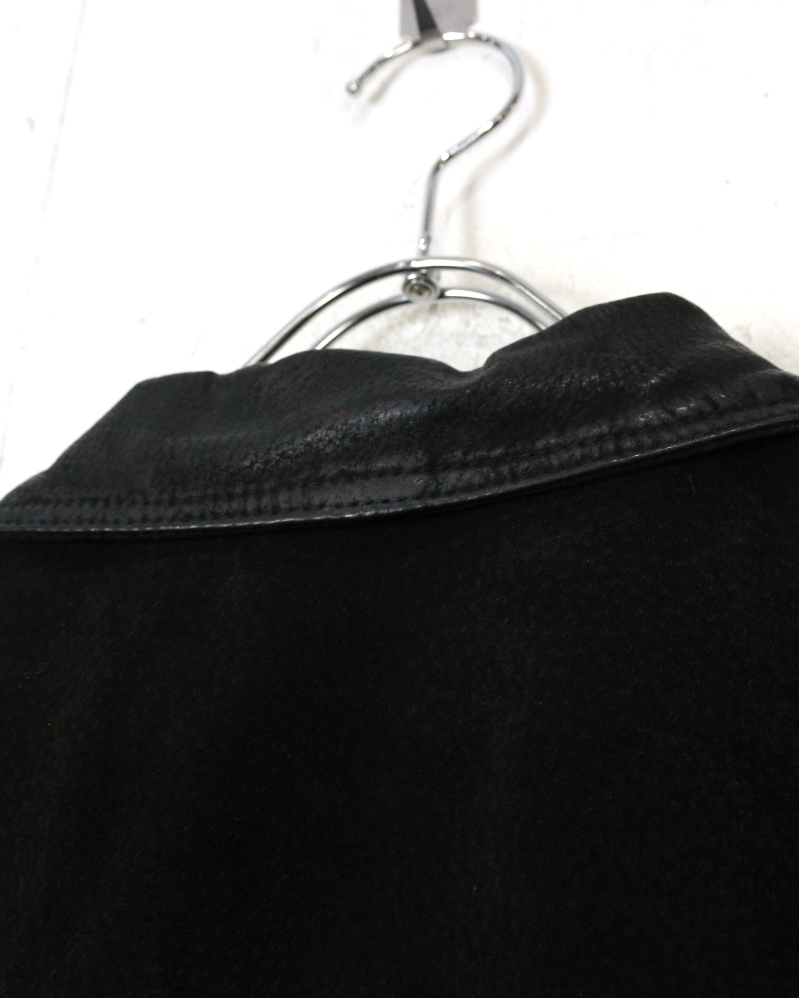 襟元は着用を重ねたことで光沢が生まれ、まるで異なる質感のレザーを用いたようなルックスに仕上がっています。