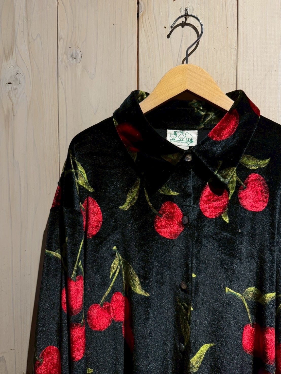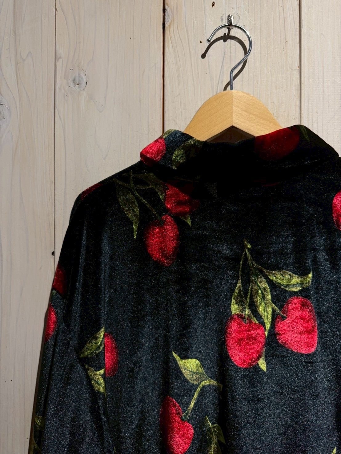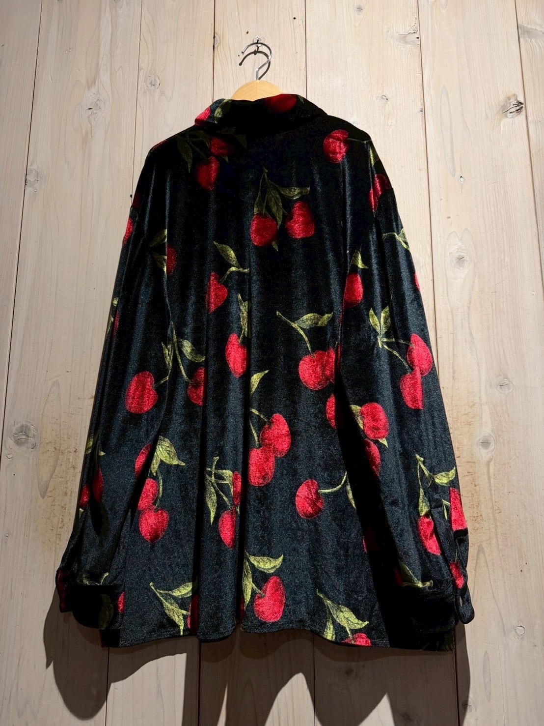 アーティスティックな存在感を放つ、チェリーパターンのベロアシャツ。