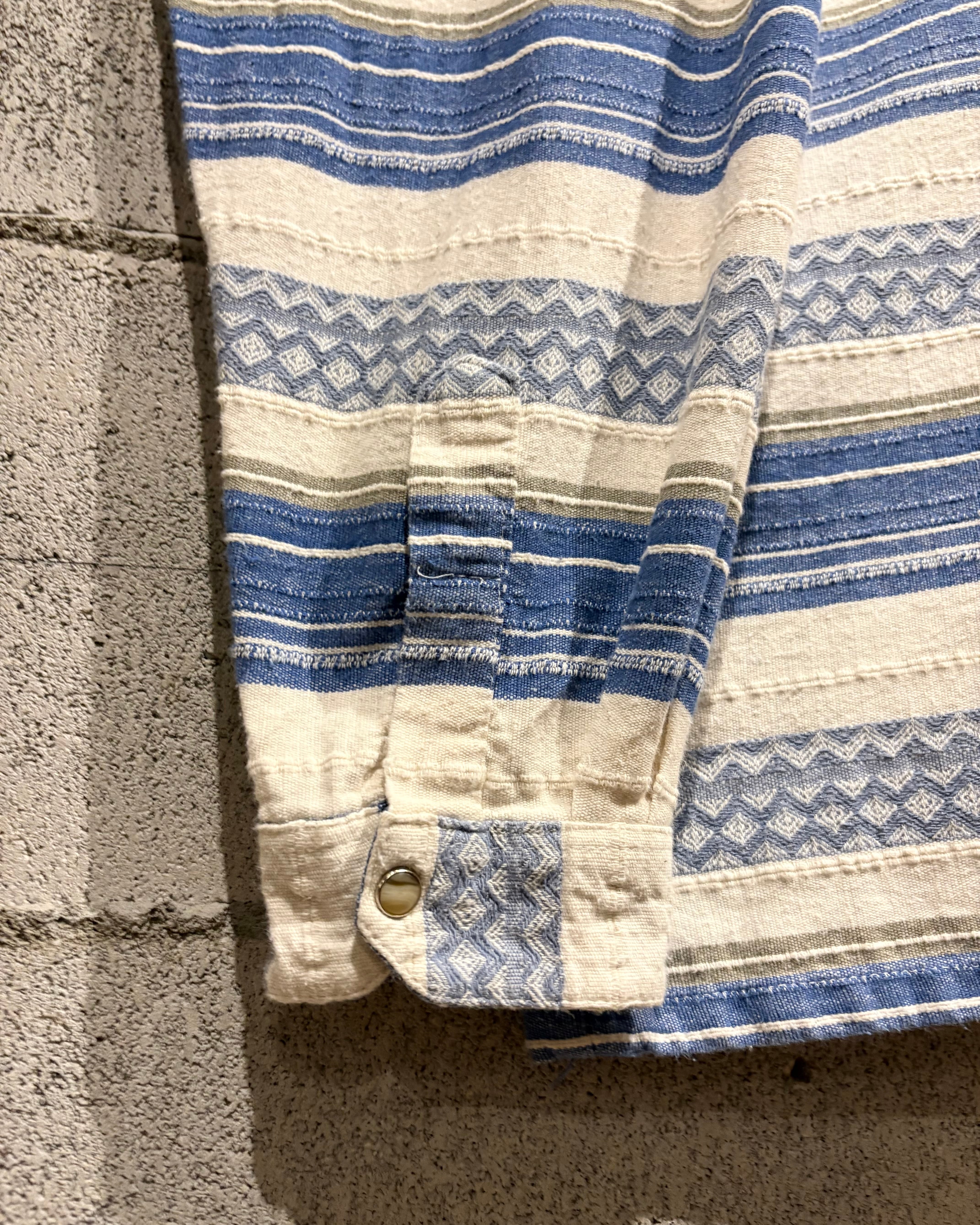 身幅を広く取ったルーズなシルエットで、ラフに羽織るだけでも抜群。ウエスタンにはもちろん、ボーダーを活かしてストリートに落とし込むのも洒落てるかと。