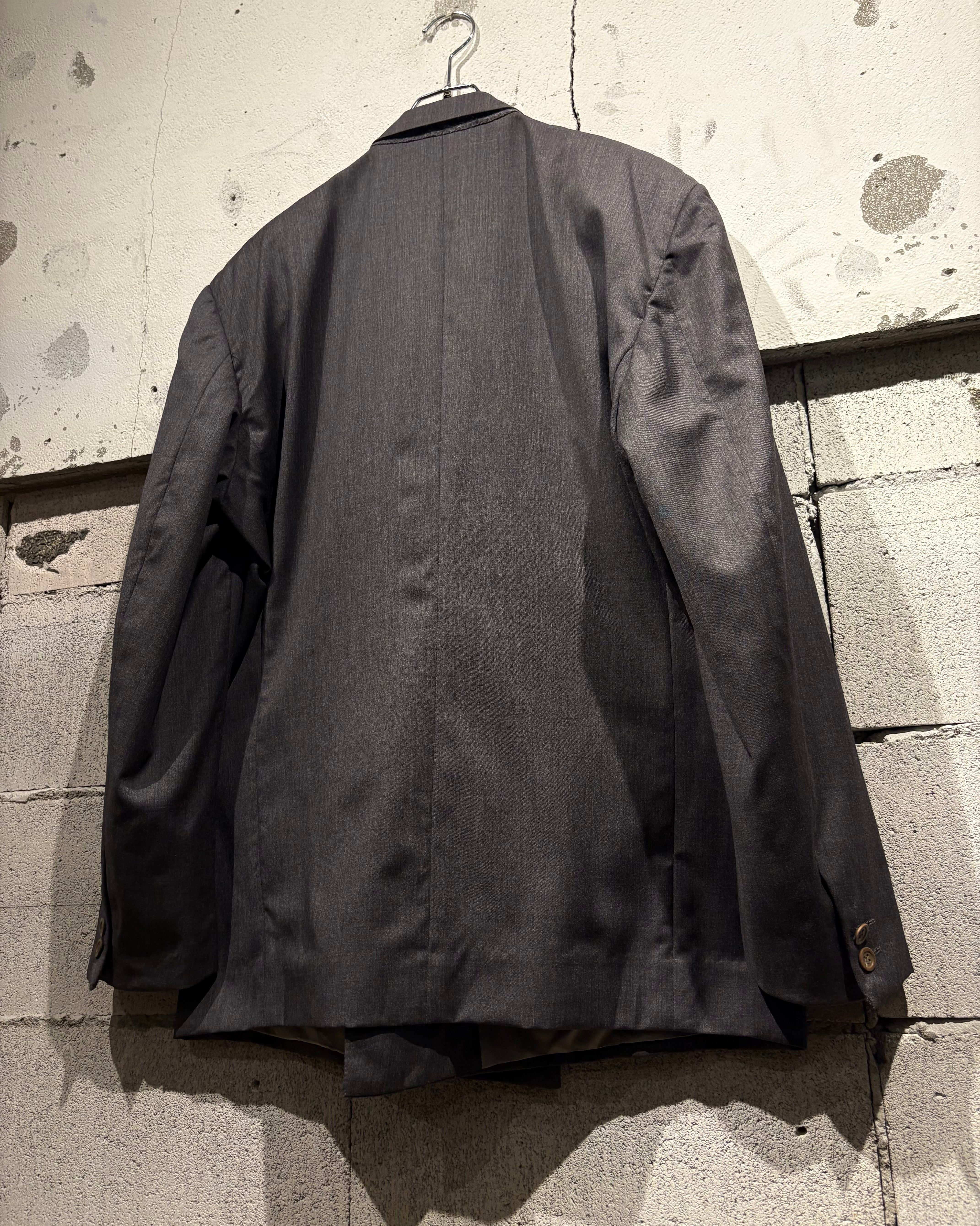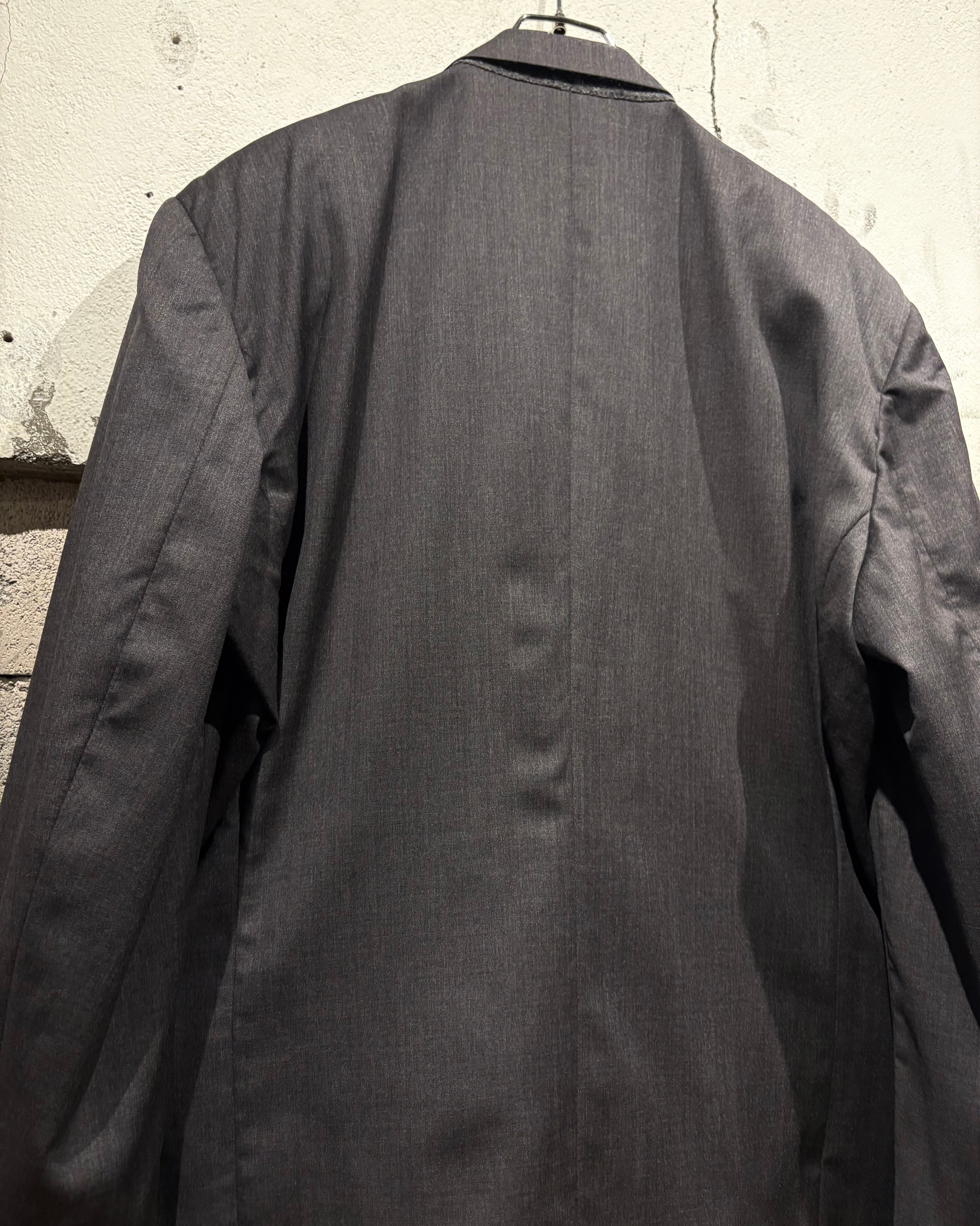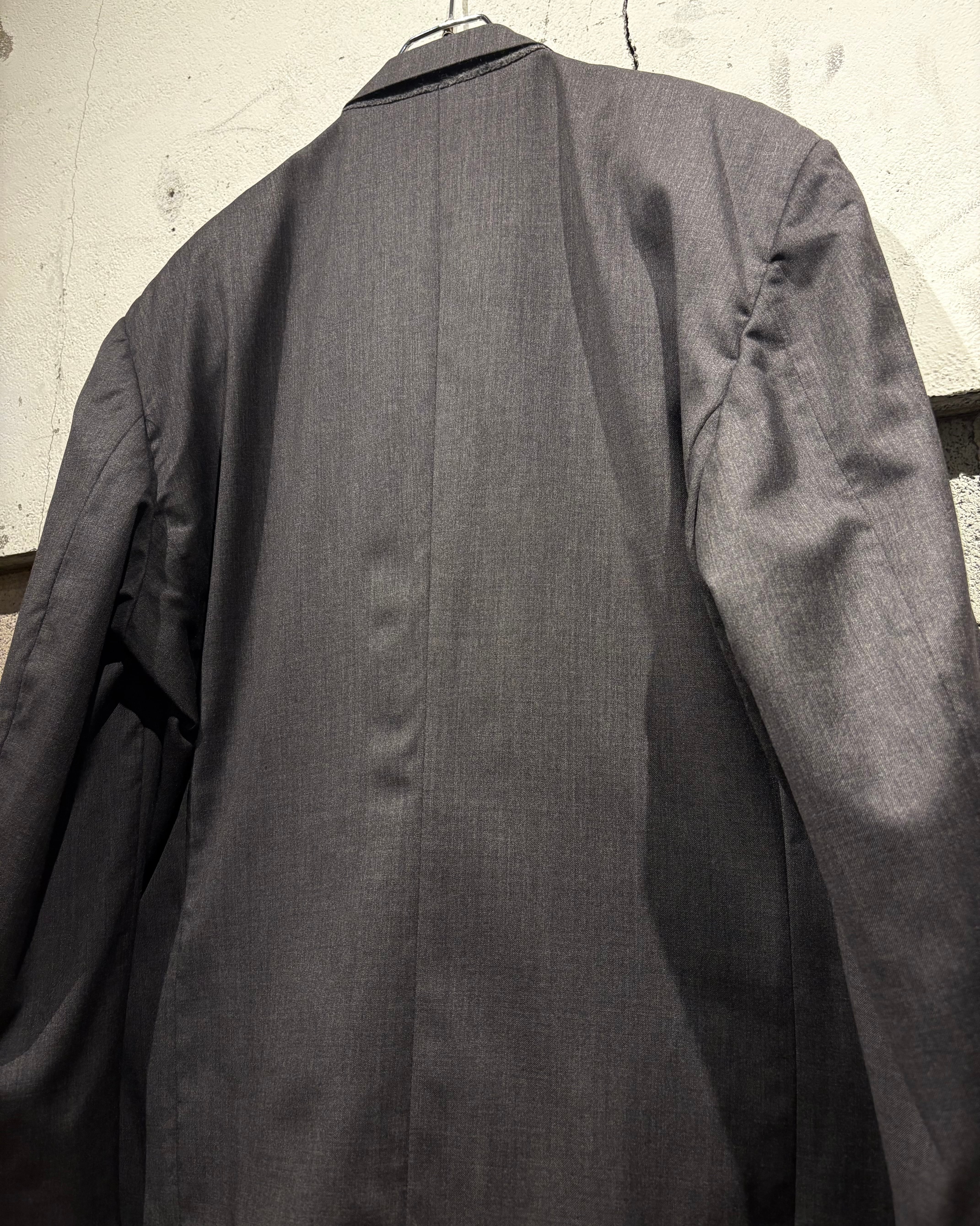 フロントはクラシックなダブルブレスト仕様に、シャープなピークドラペルを搭載。構築的でありながらも柔らかさを感じるラペルの返りやラインの美しさは、上質な生地と確かな仕立てによるもの。