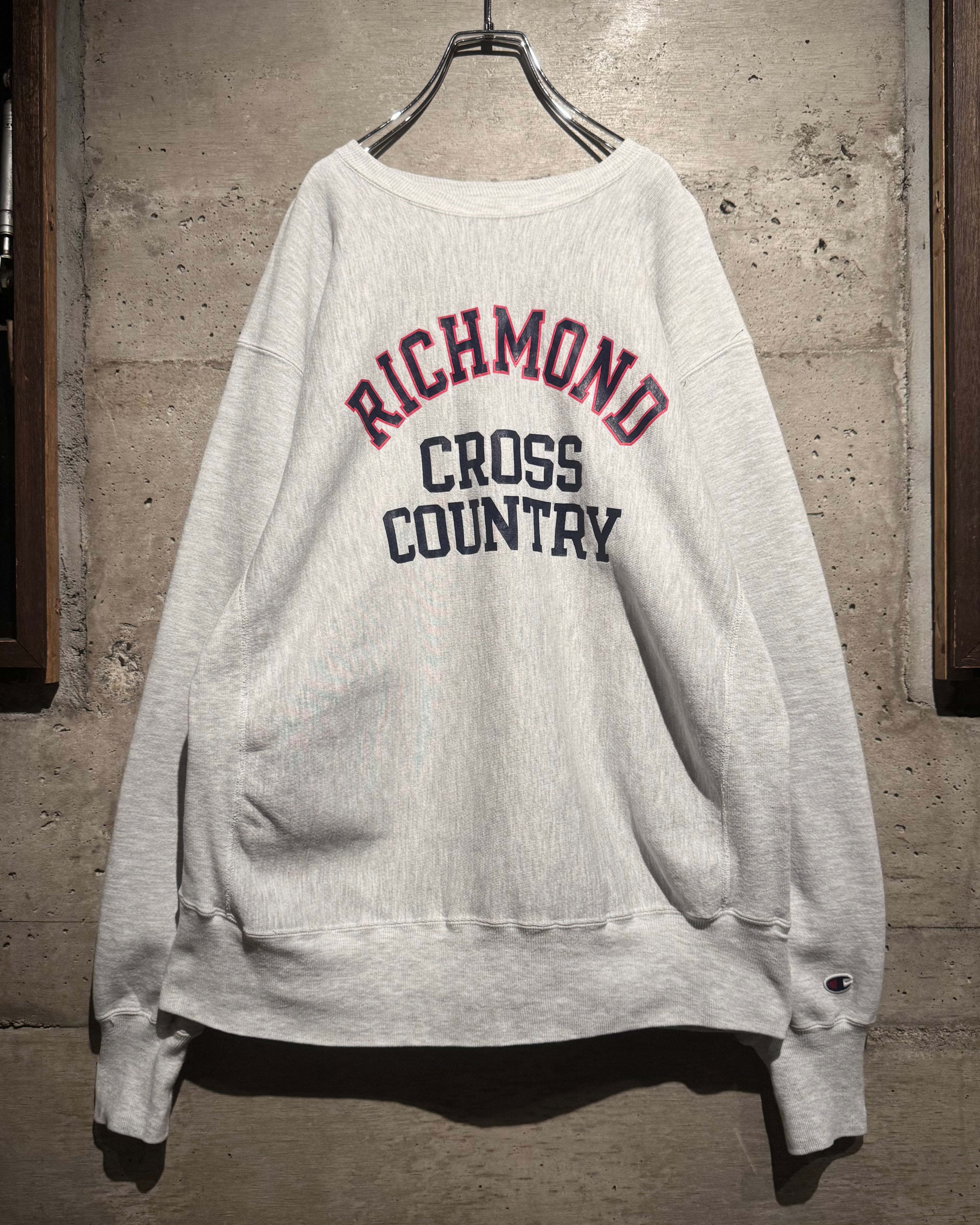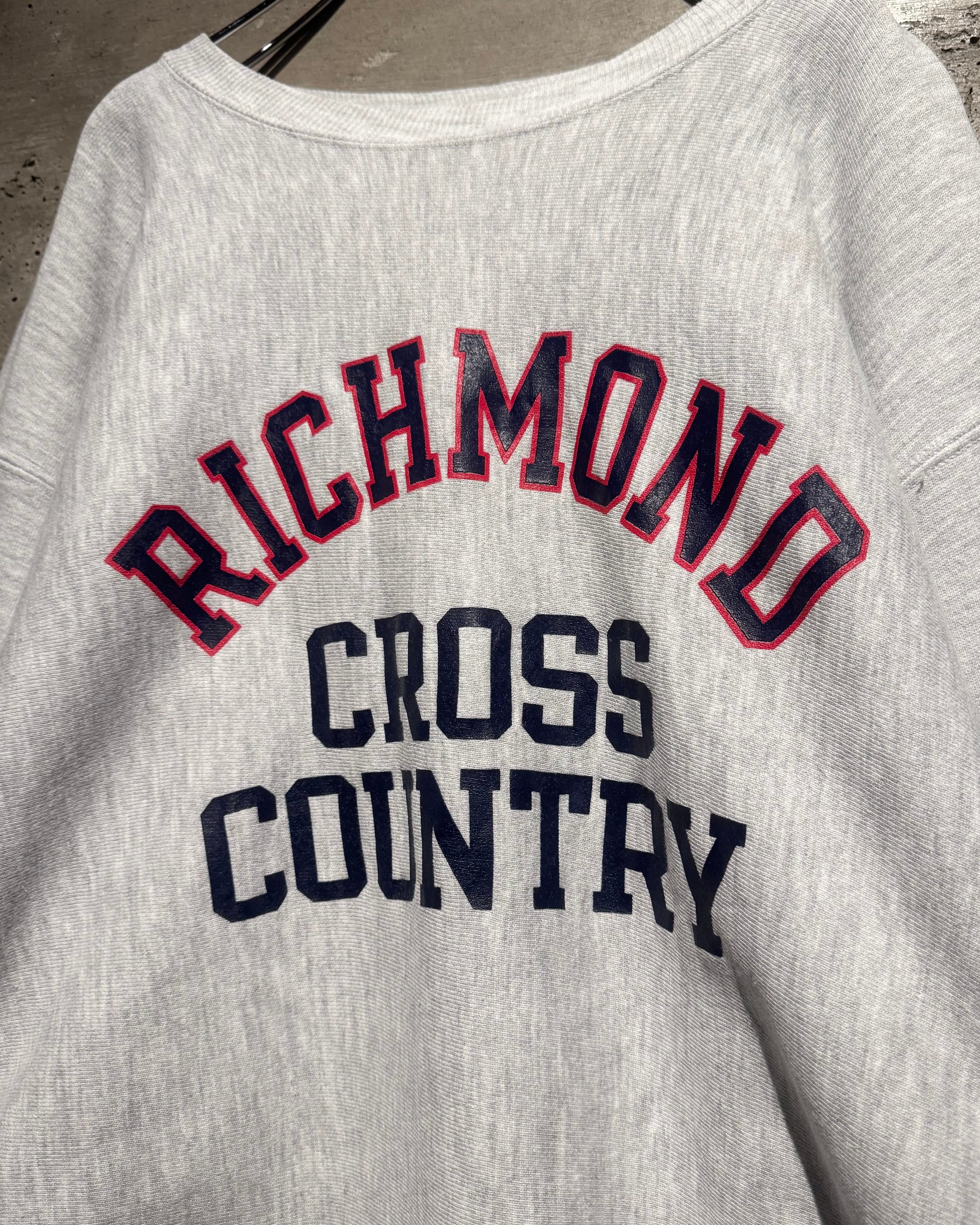 霜降りグレーの柔らかなボディに、フロントには“RICHMOND CROSS COUNTRY”の3段プリント。アーチ状に組まれたロゴバランスも非常に良く、王道ながら完成度の高さが際立ちます。