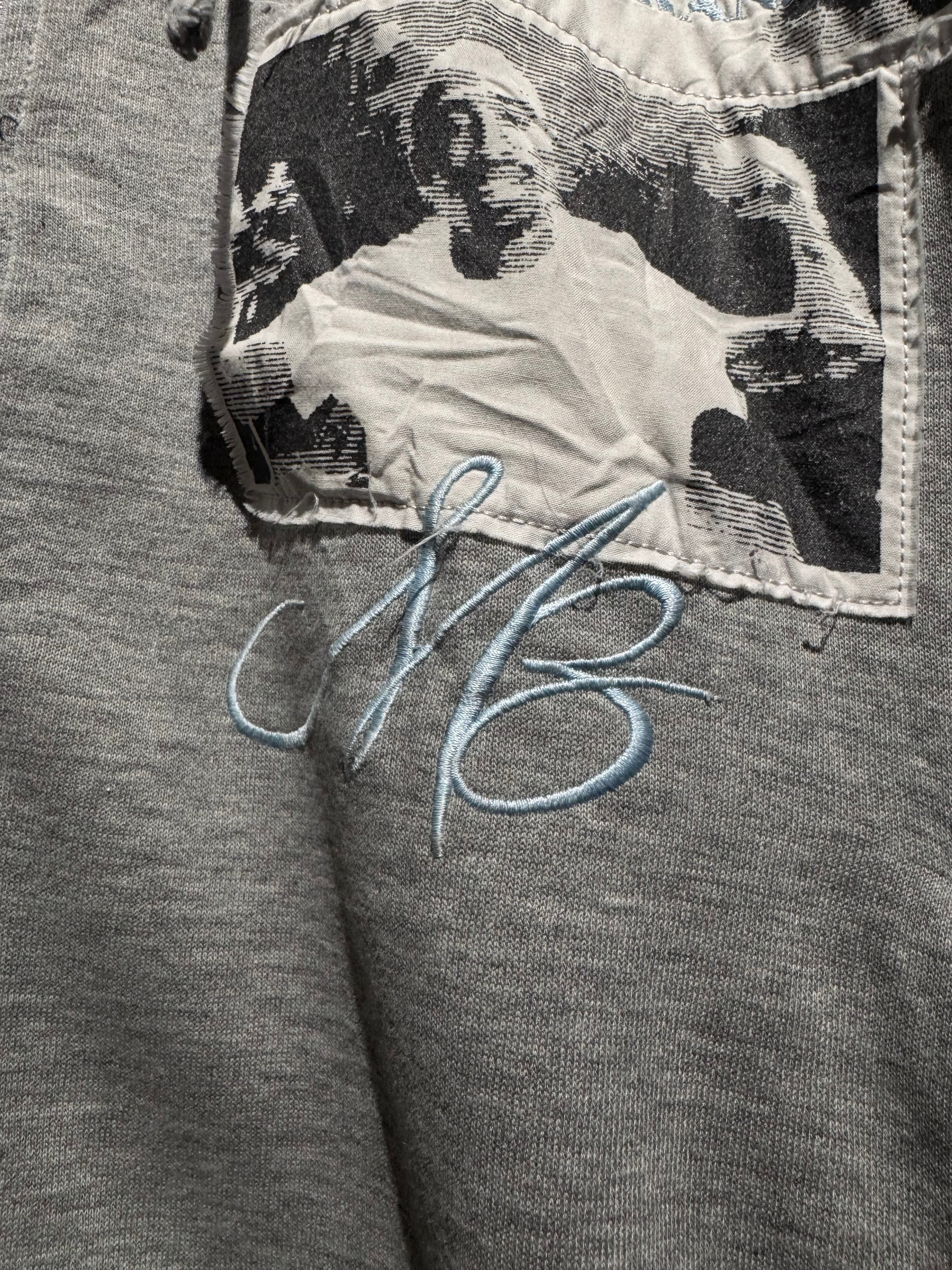 グレーのボディをベースに、フロントにはフォトパッチを重ねるように配置。ラフにカットオフされたエッジや、水色の糸で走る“MAKAVELI BRANDED”の刺繍など、シンプルながらしっかりと作り込まれたデザインが光ります。