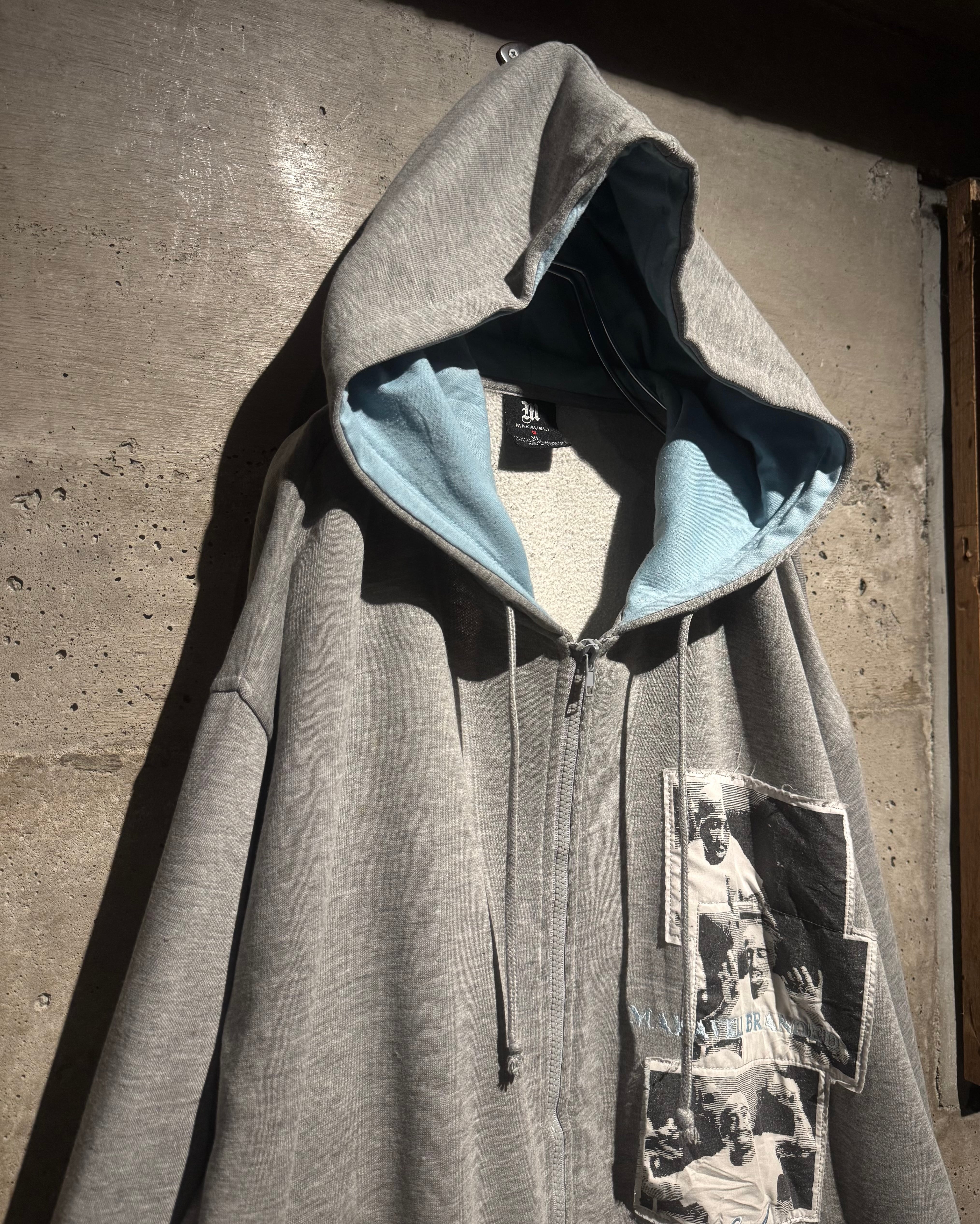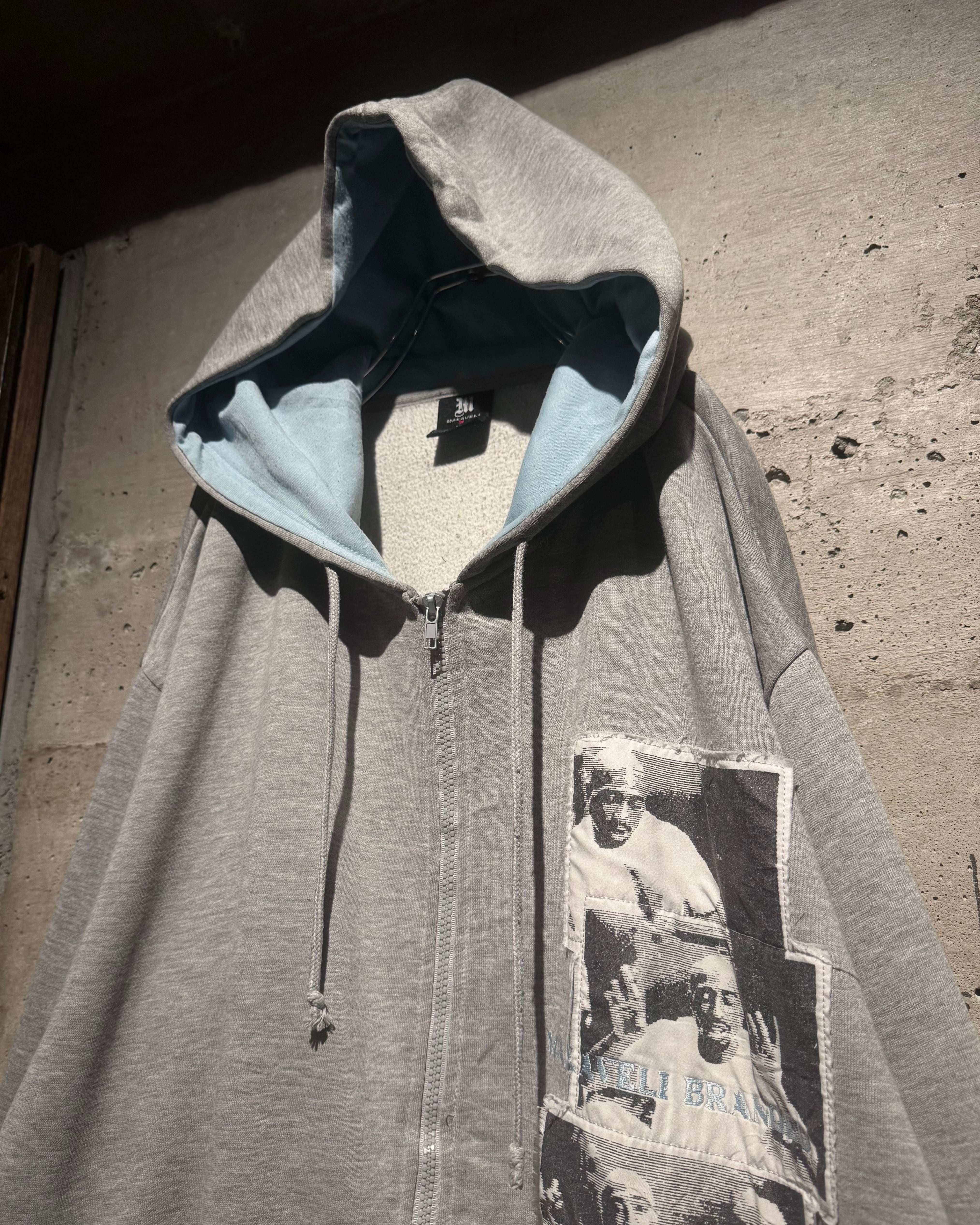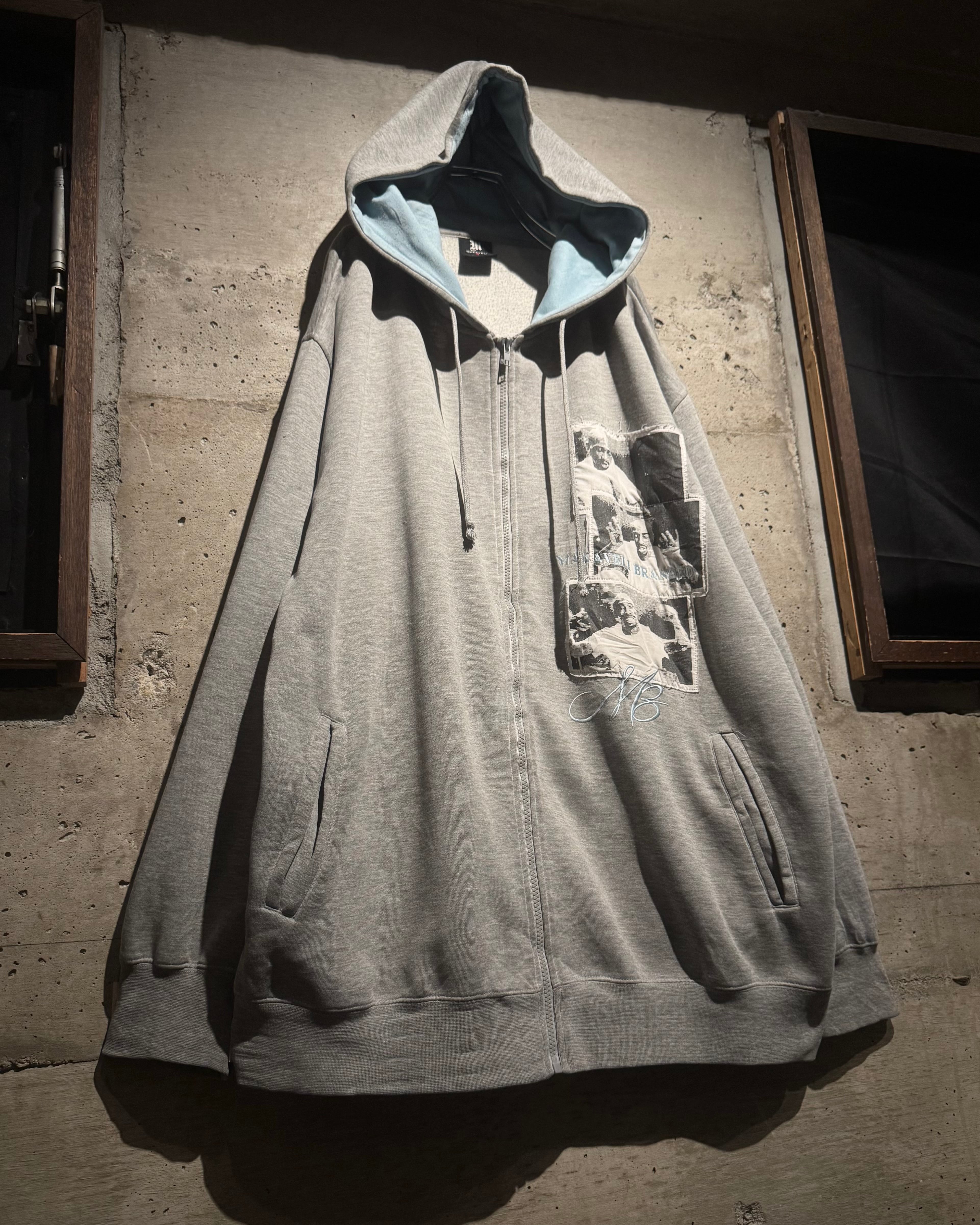 HIPHOP界のレジェンド、2PACが別名義として用いていた“Makaveli”をブランドネームに掲げる“MAKAVELI”より、カルチャーとメッセージ性を色濃く反映したジップアップフーディ。
