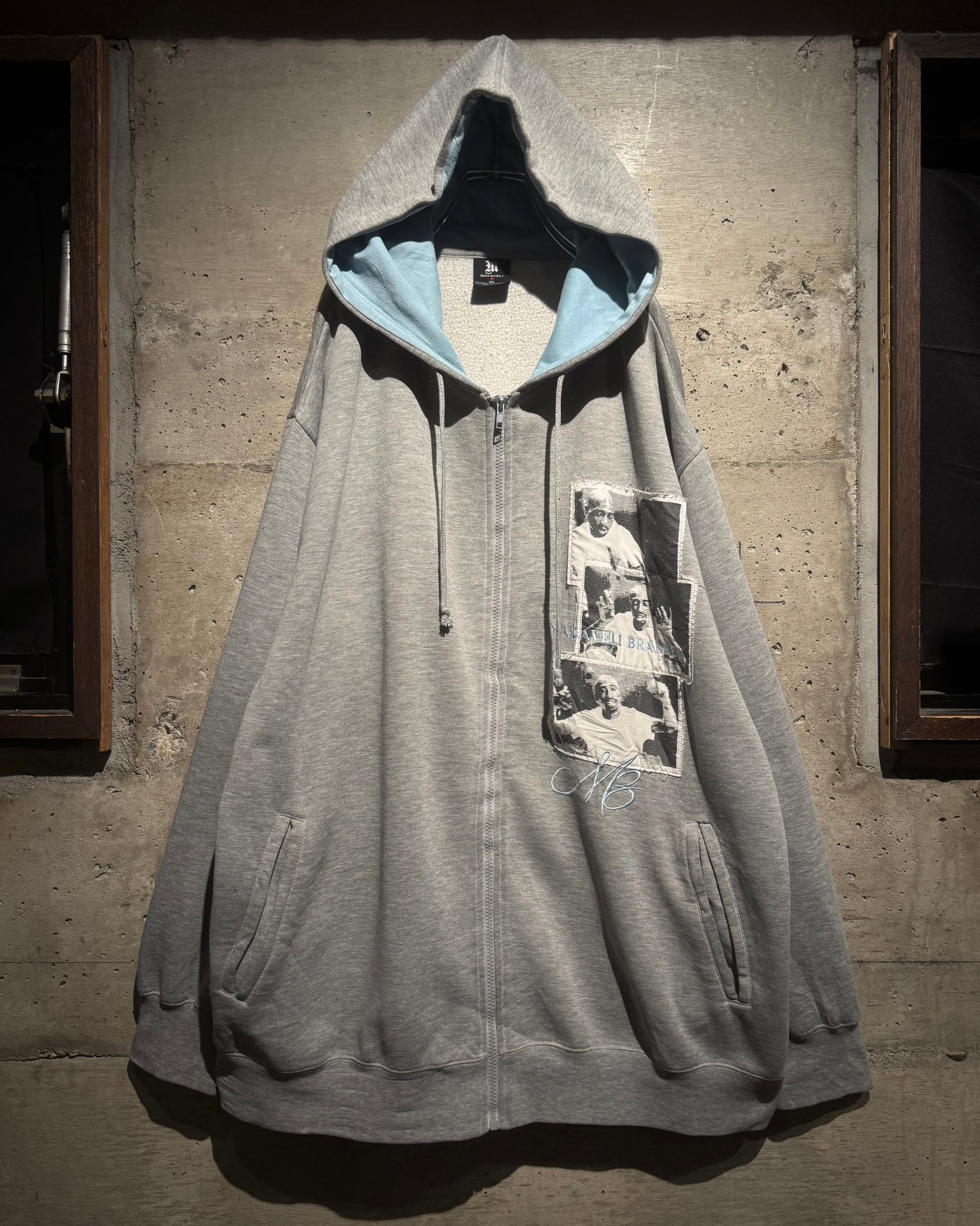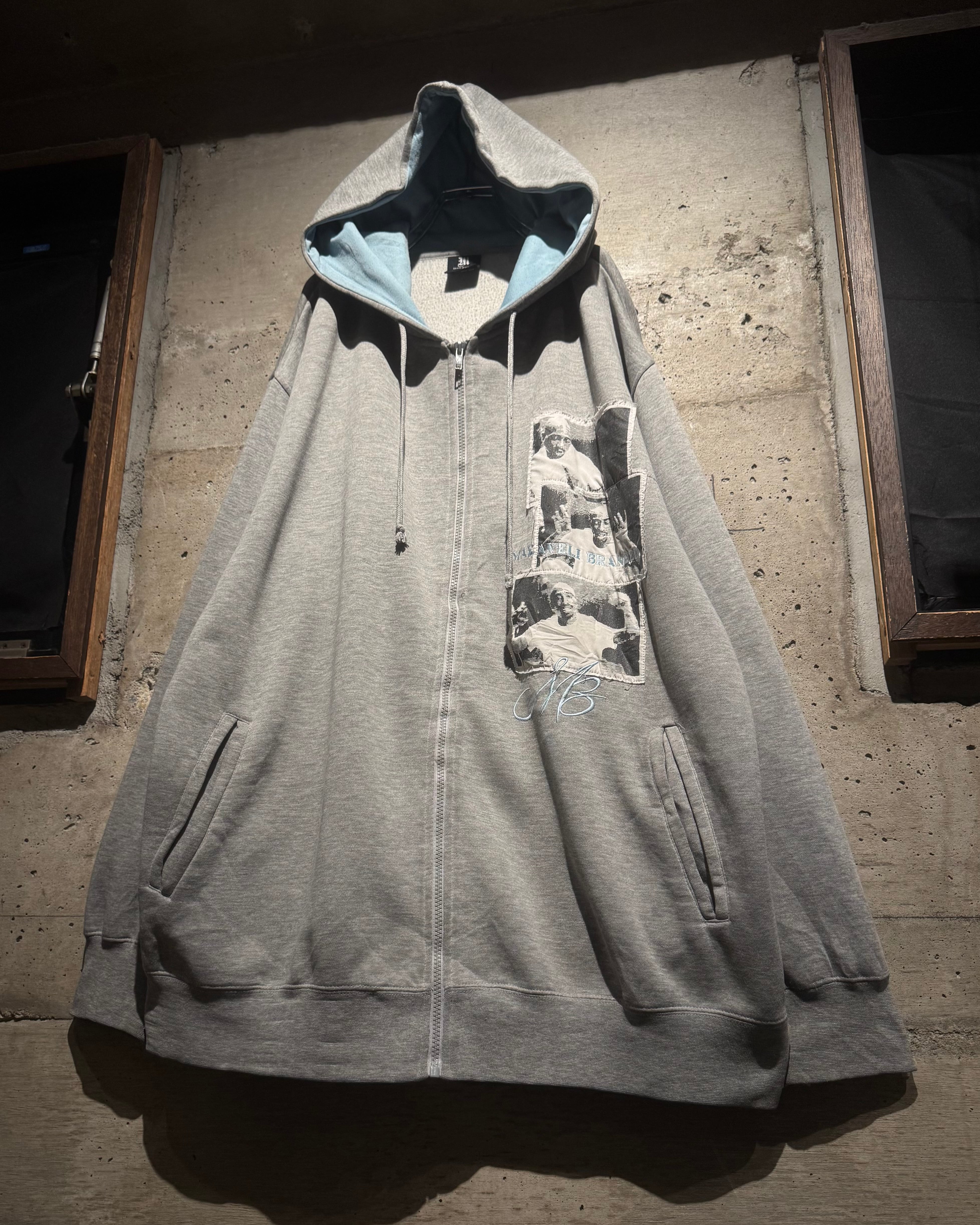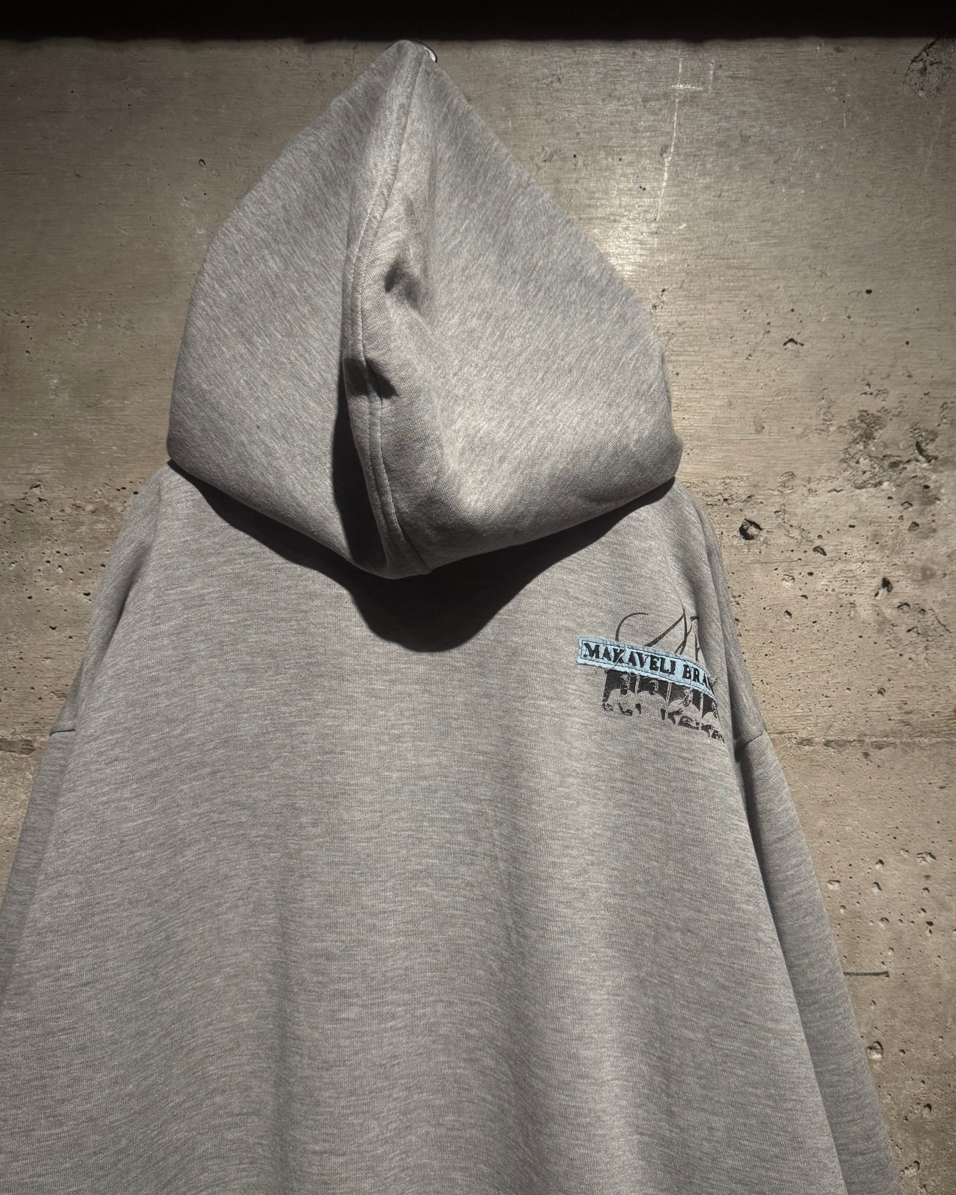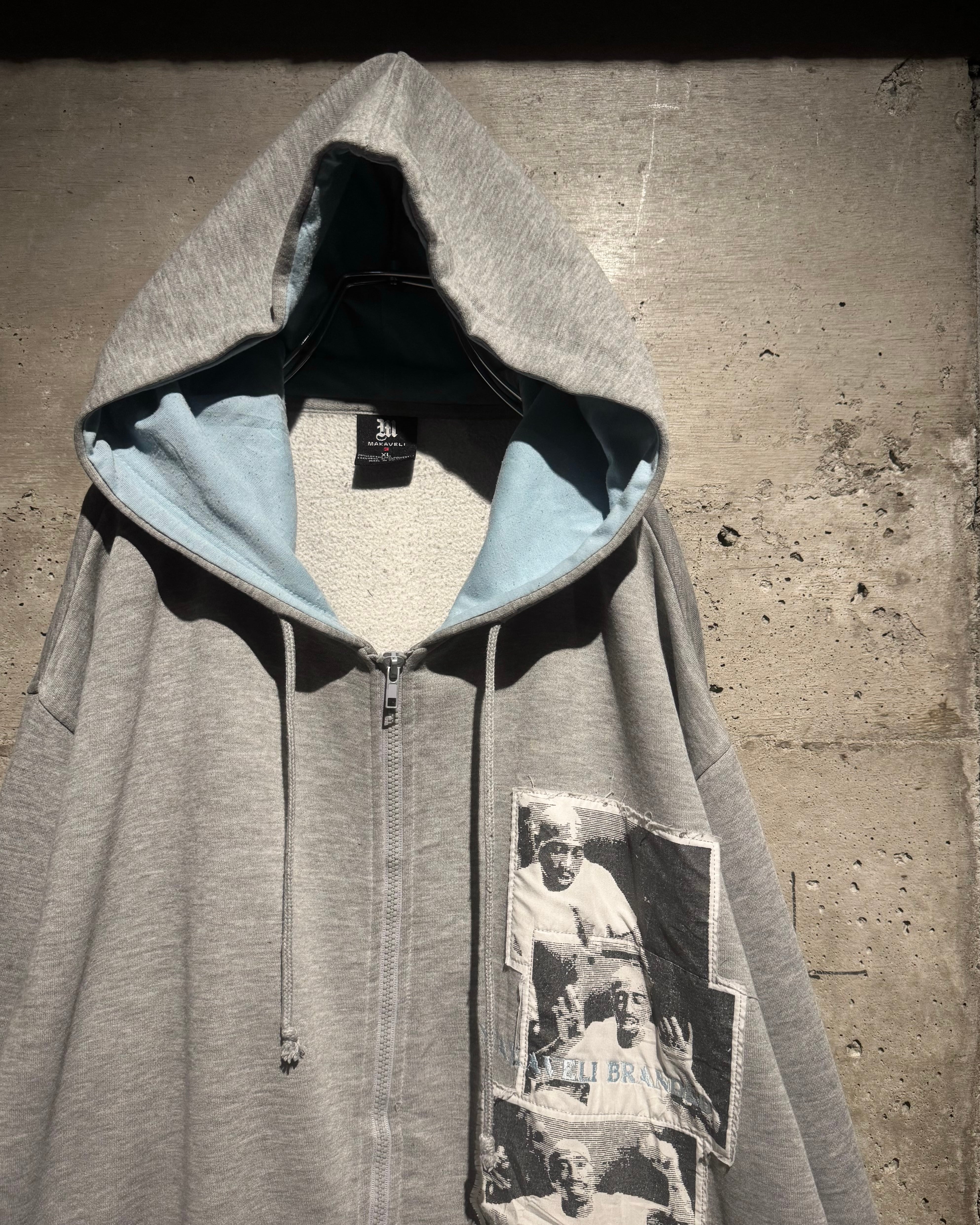 HIPHOP界のレジェンド、2PACが別名義として用いていた“Makaveli”をブランドネームに掲げる“MAKAVELI”より、カルチャーとメッセージ性を色濃く反映したジップアップフーディ。