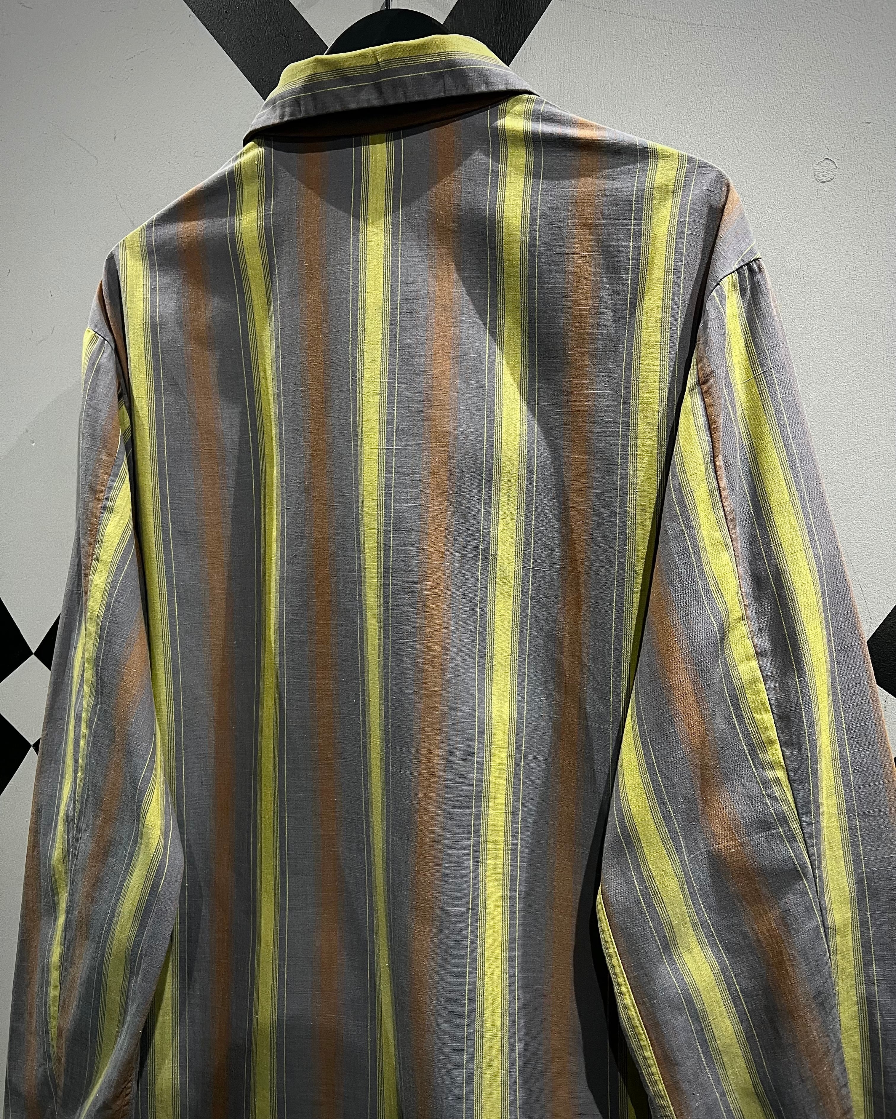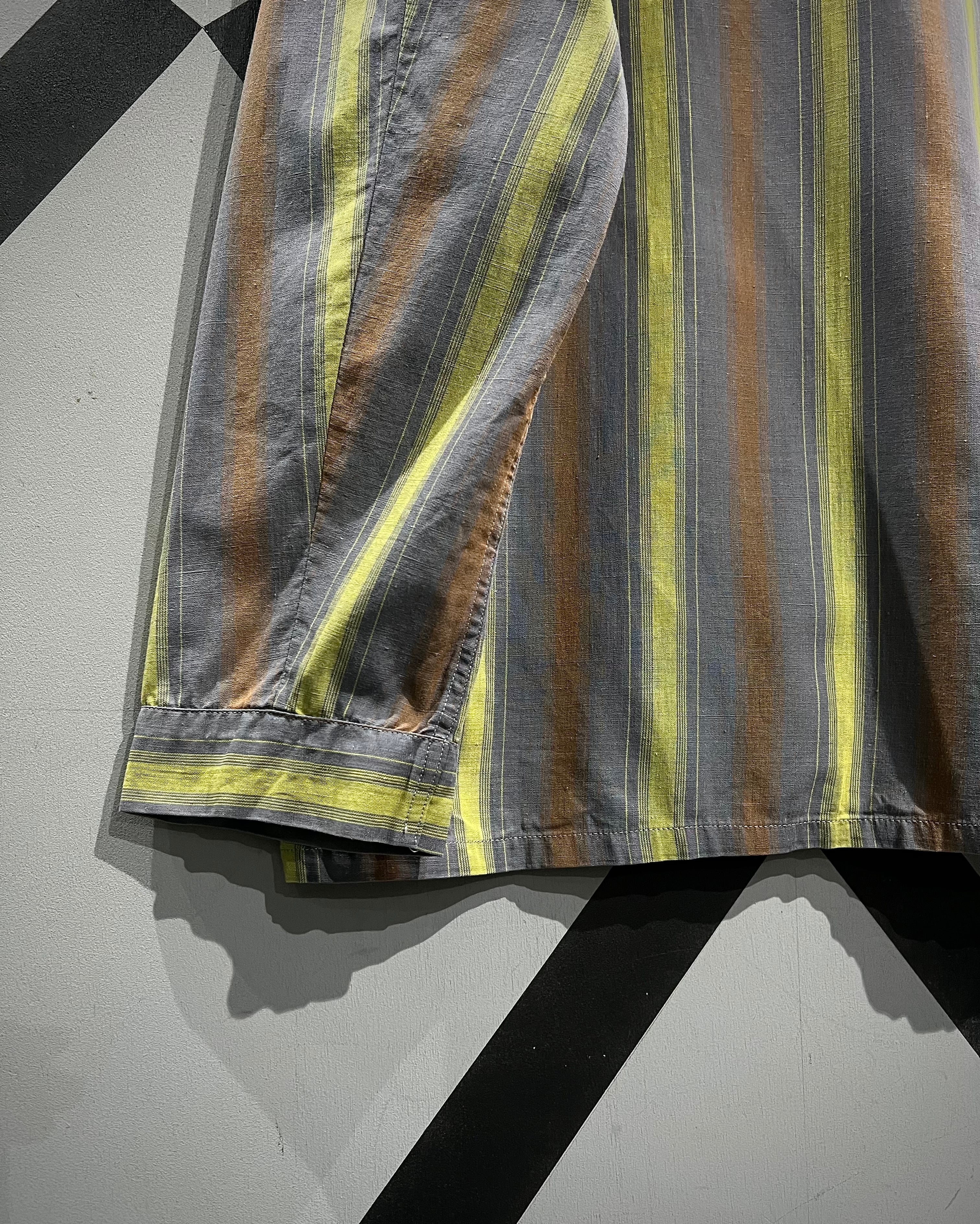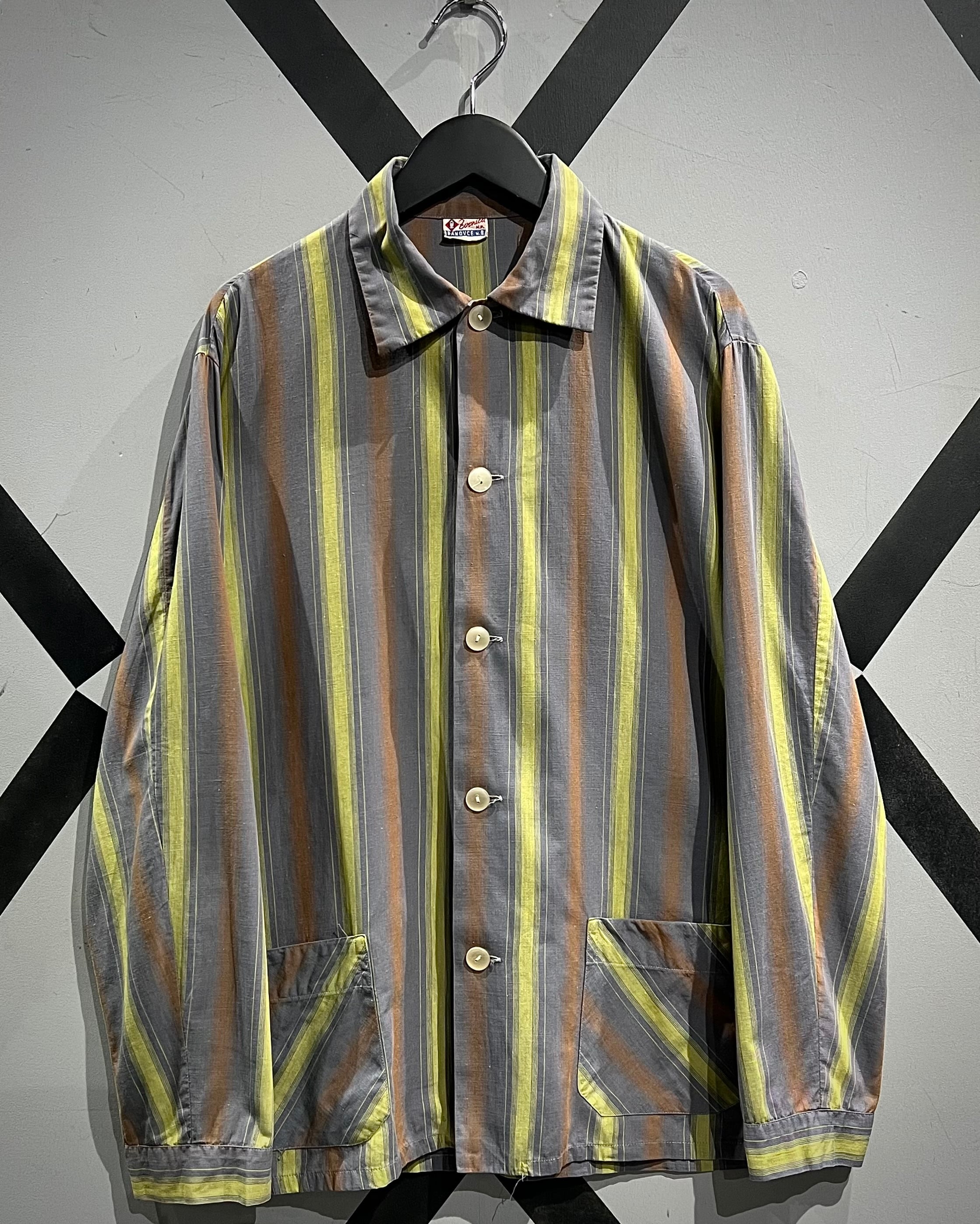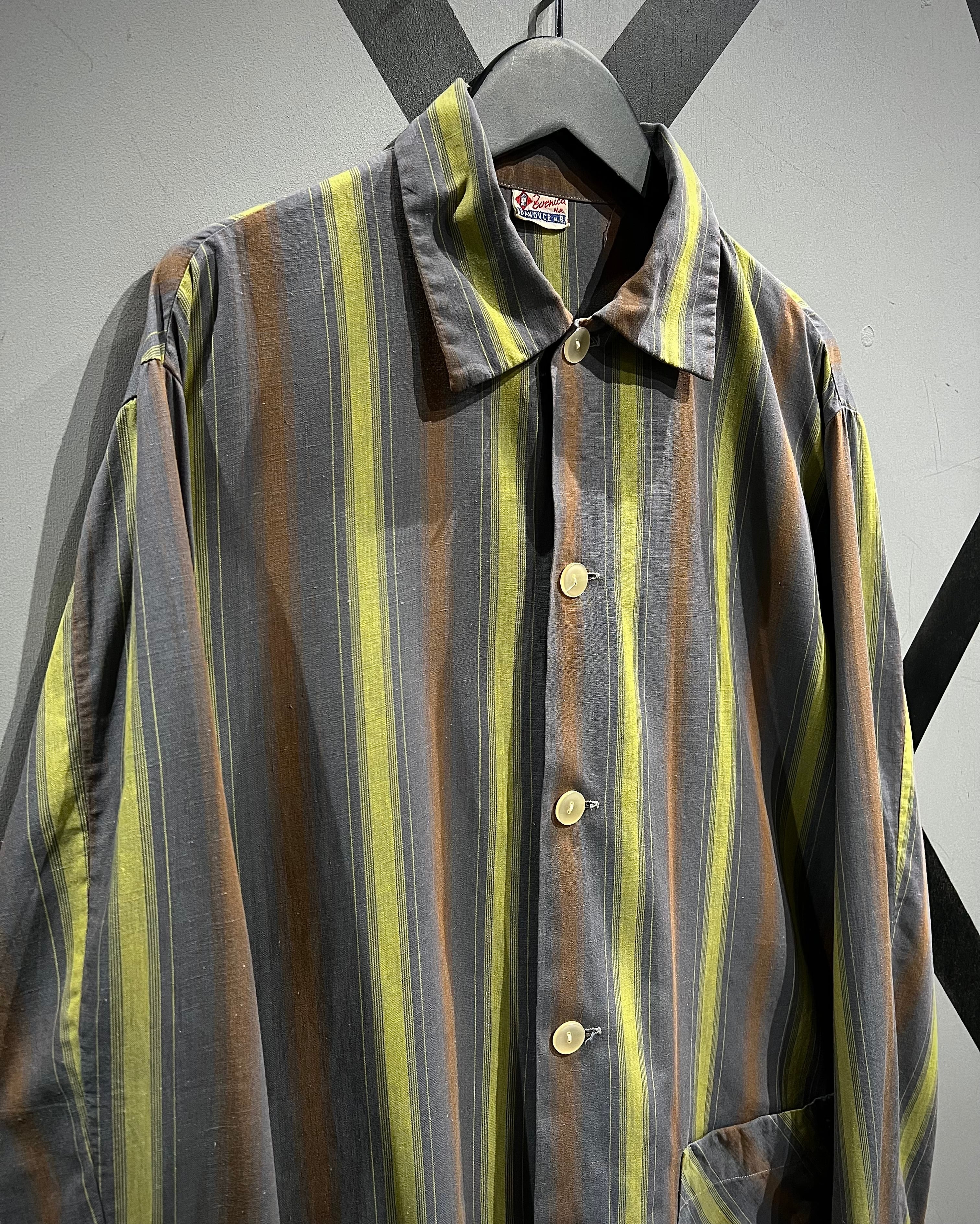 グレー、ブラウン、イエローを基調とした柔らかな配色に、縦に走るストライプが印象的な50'sスリーピングシャツ。