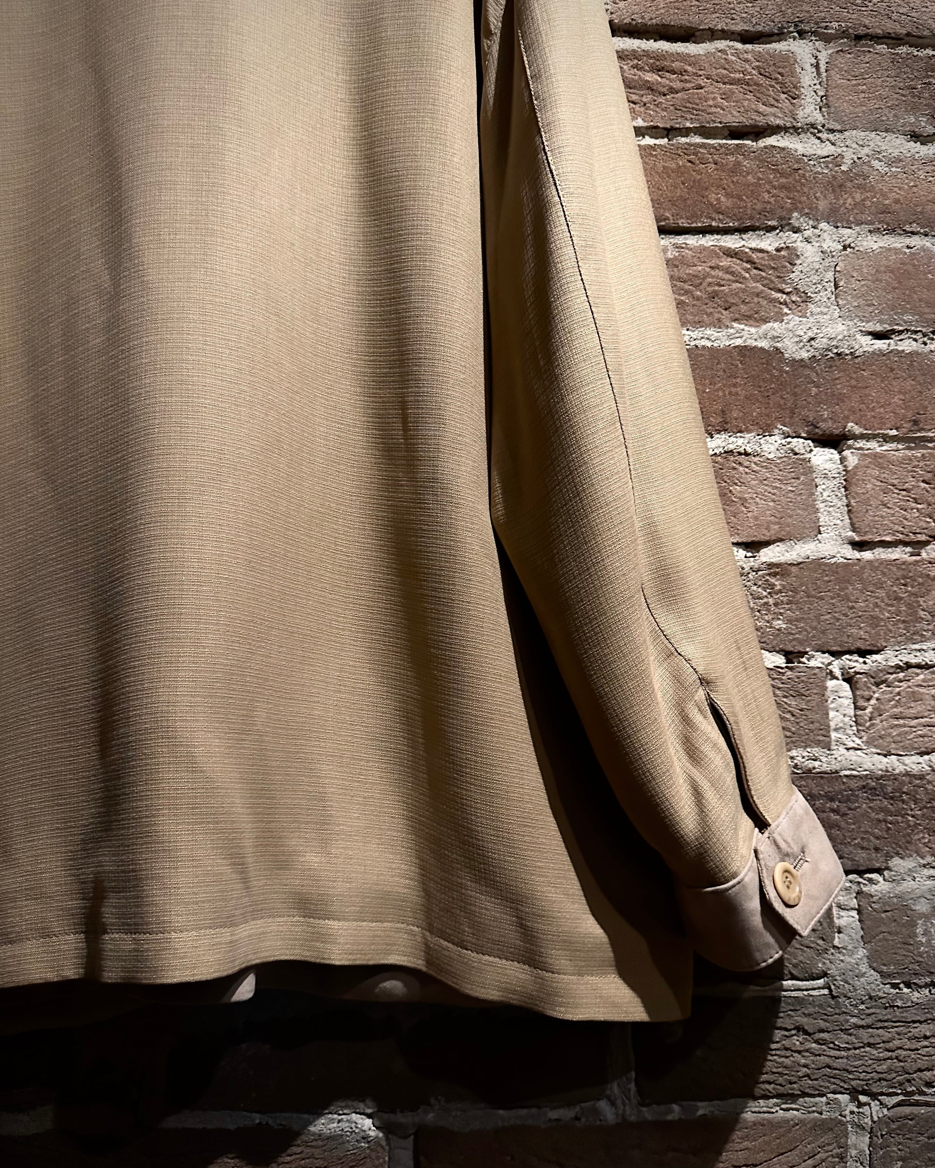 ハリ、トロみを併せ持った上質なベージュのシルク素材を贅沢に用いて仕立てられたシャツジャケット。