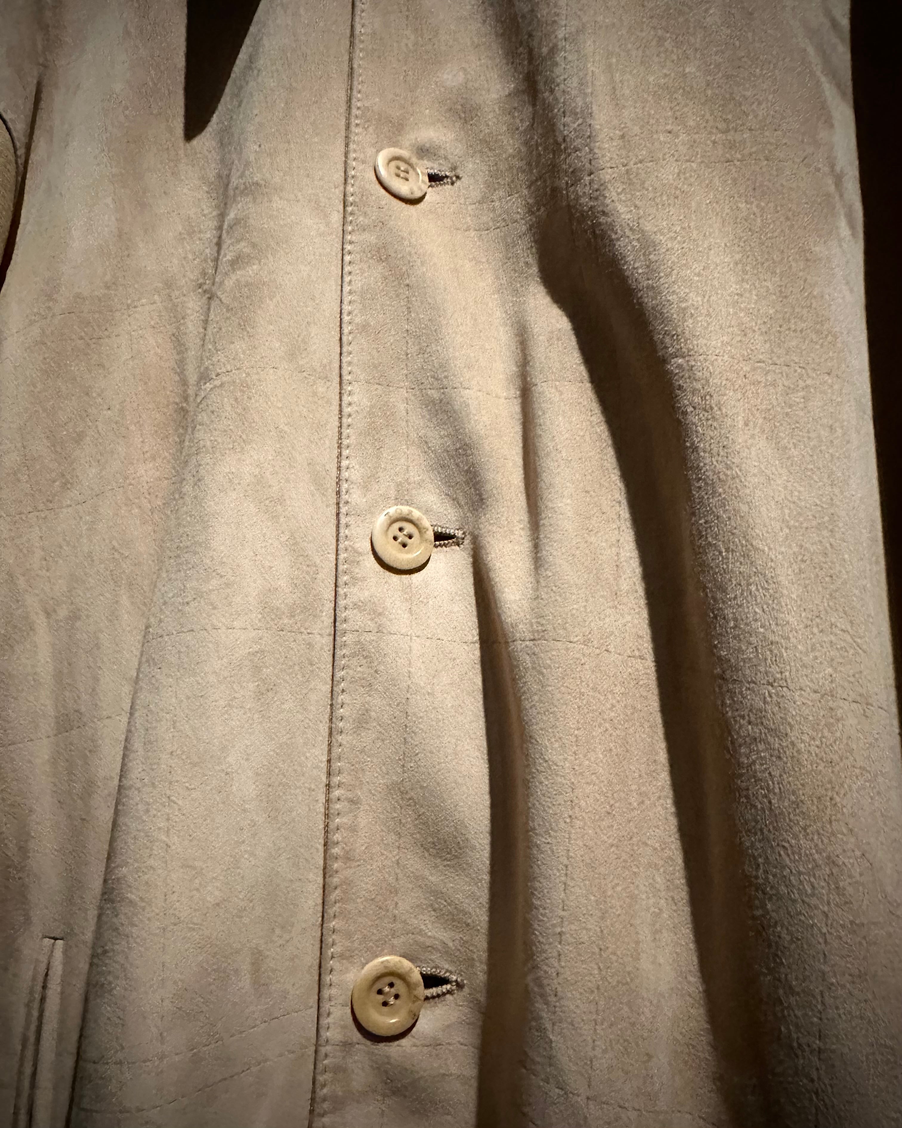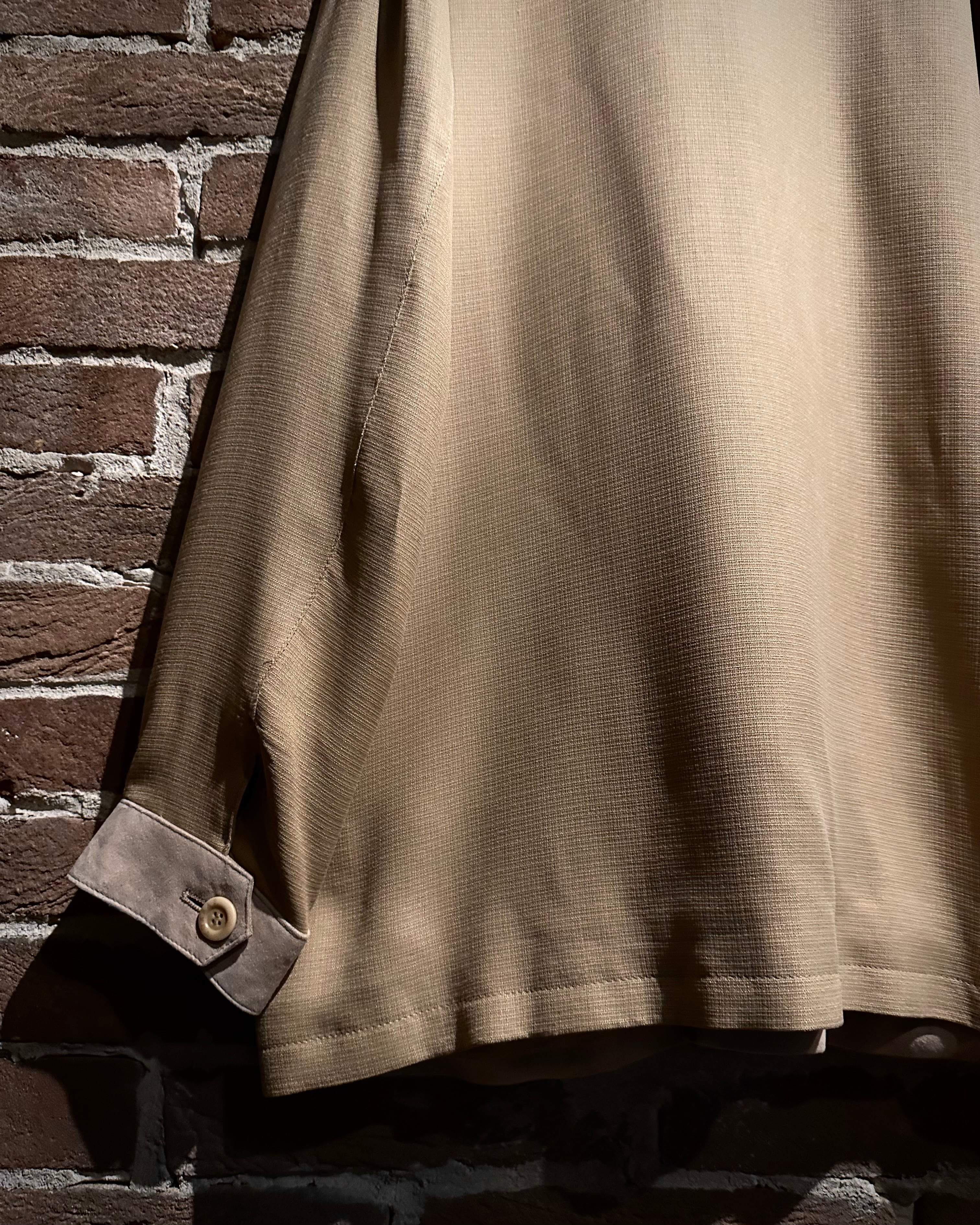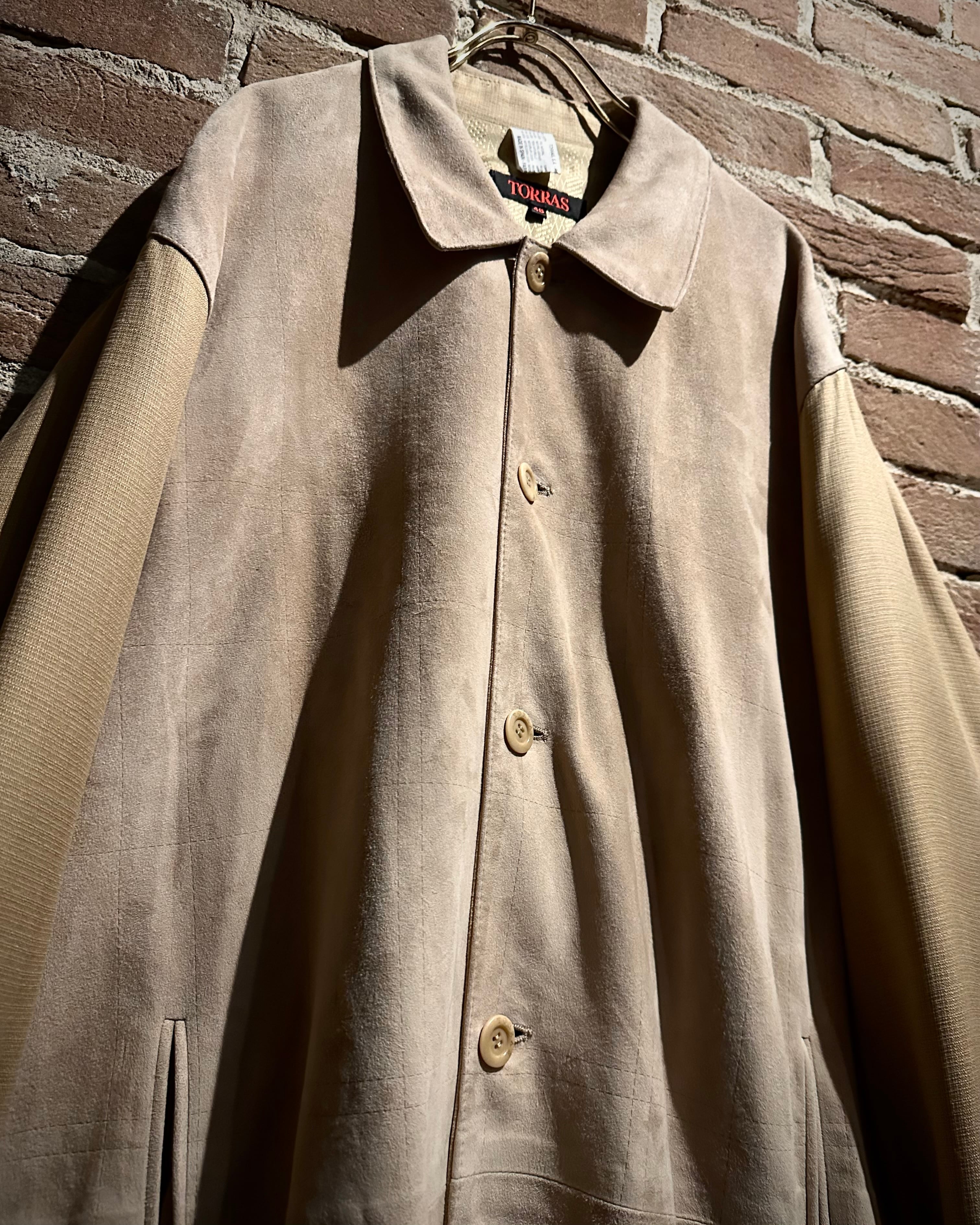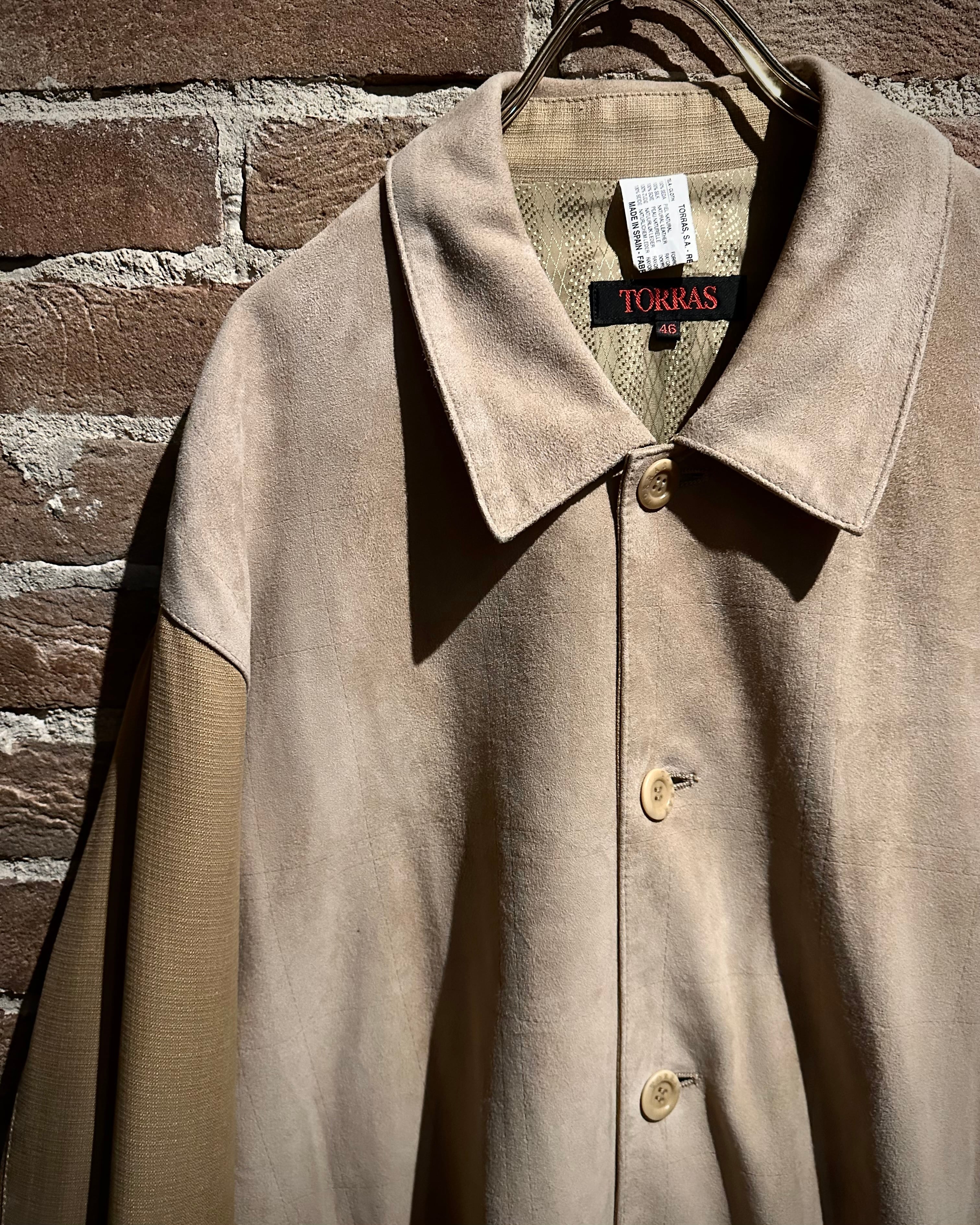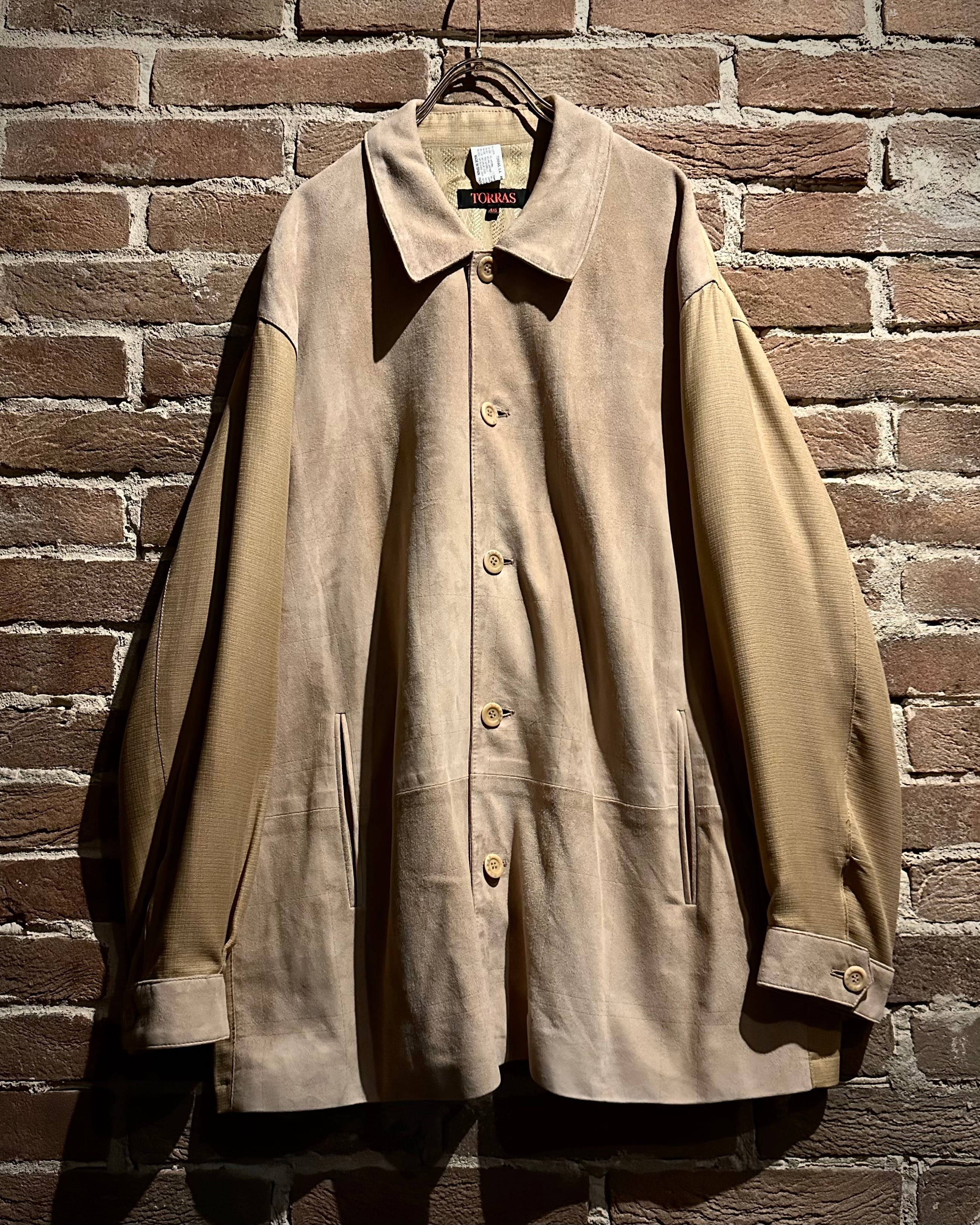 前身頃、袖口にベージュの極上スエードを切り替えたデザインの1着。老舗レザーブランドと言われるだけあって、切り替えられたレザーのクオリティも非常に高い、、、