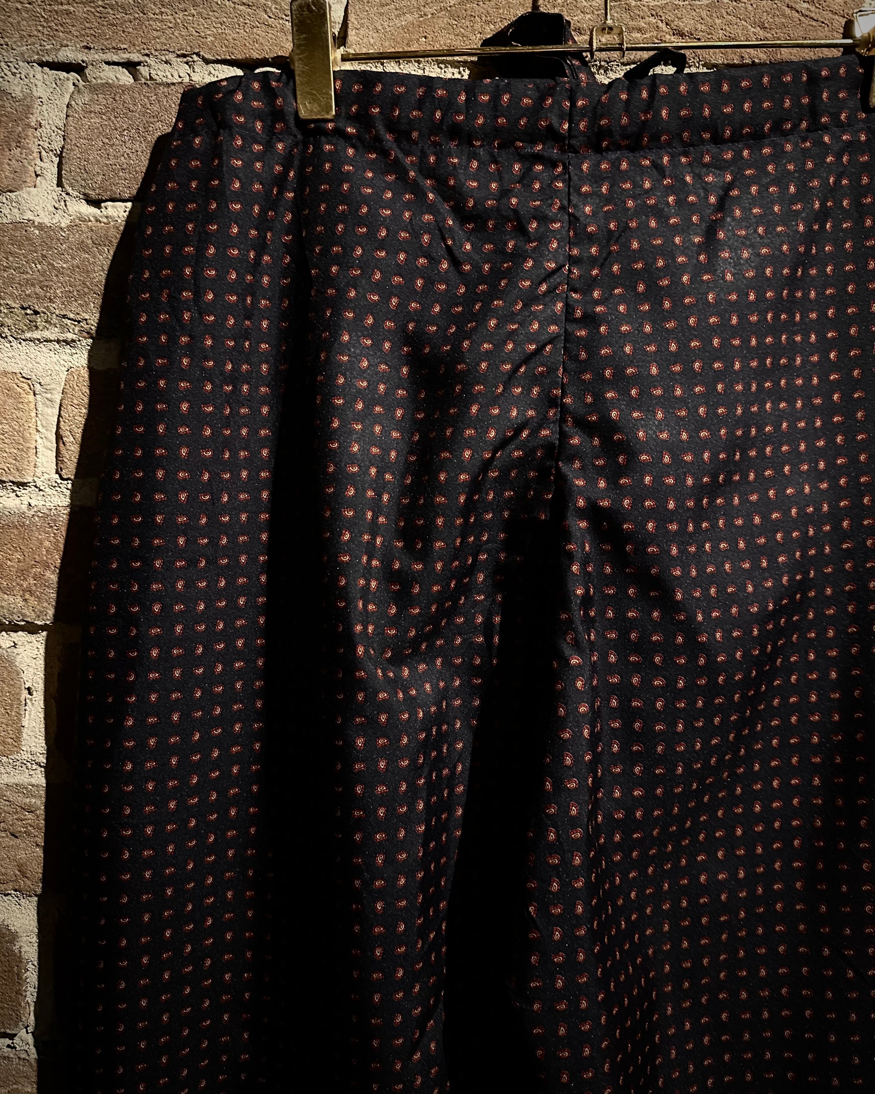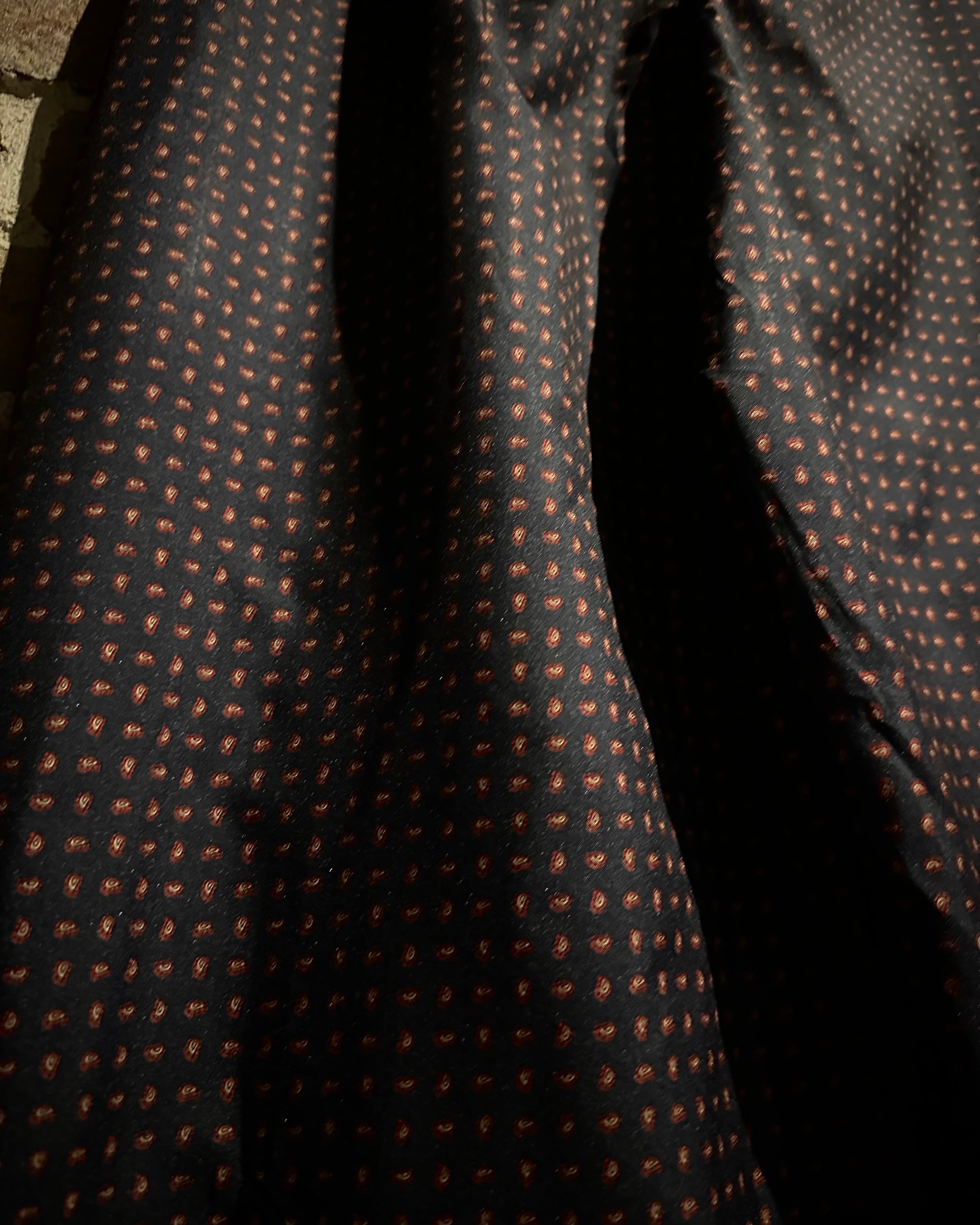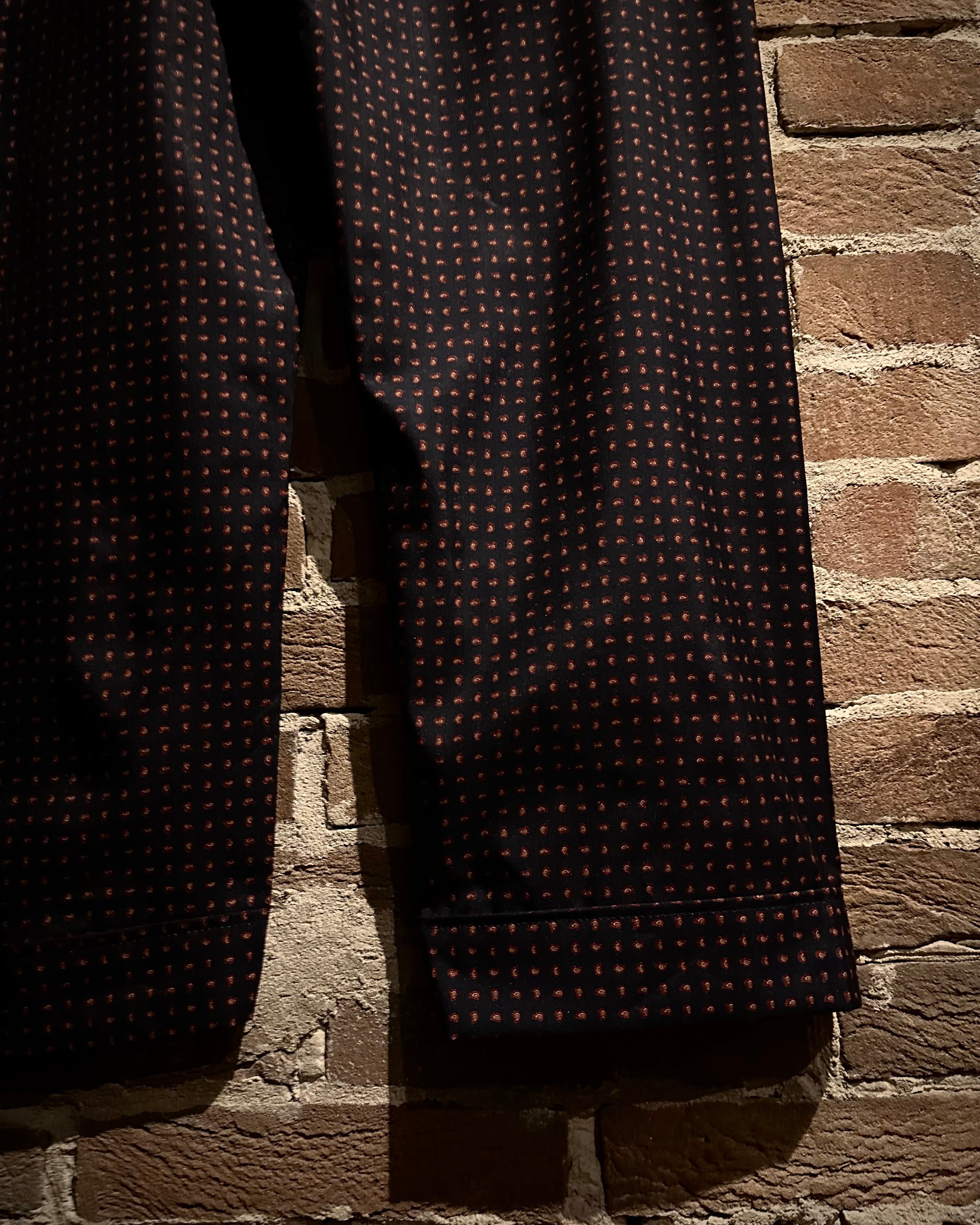 ダークトーンのボディに細やかなペイズリー柄を全面に配した、奥行きのあるデザインに仕上げられた1着。