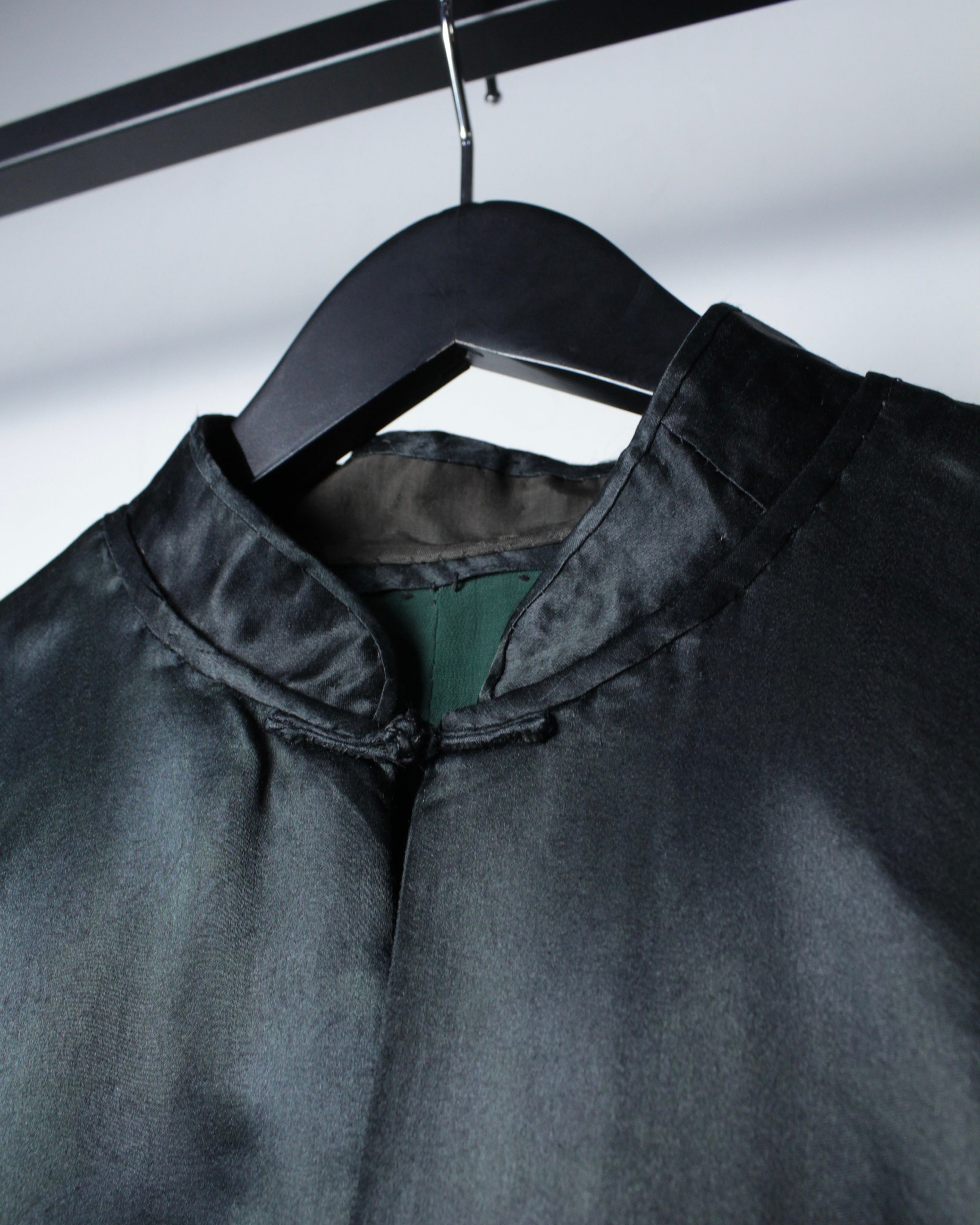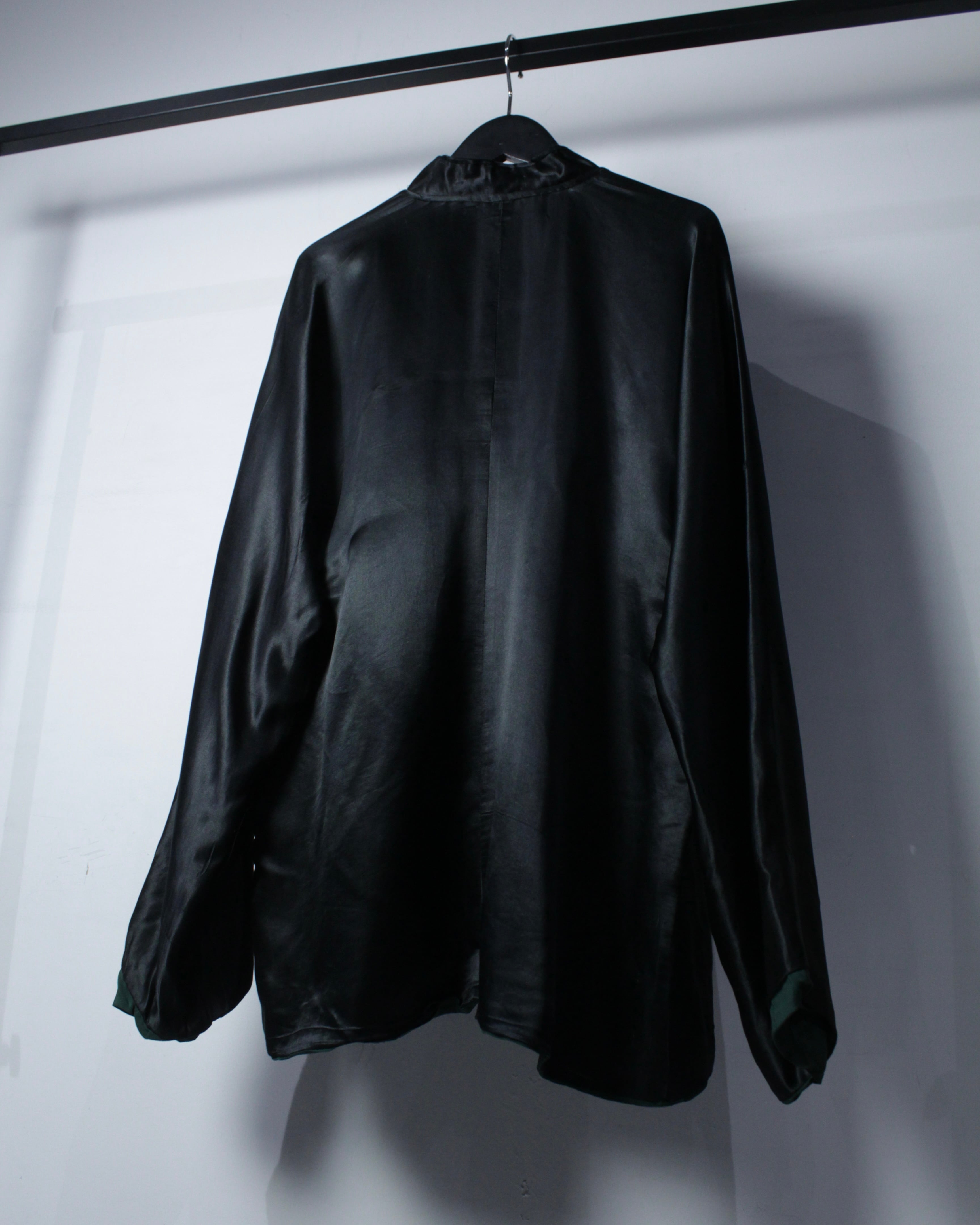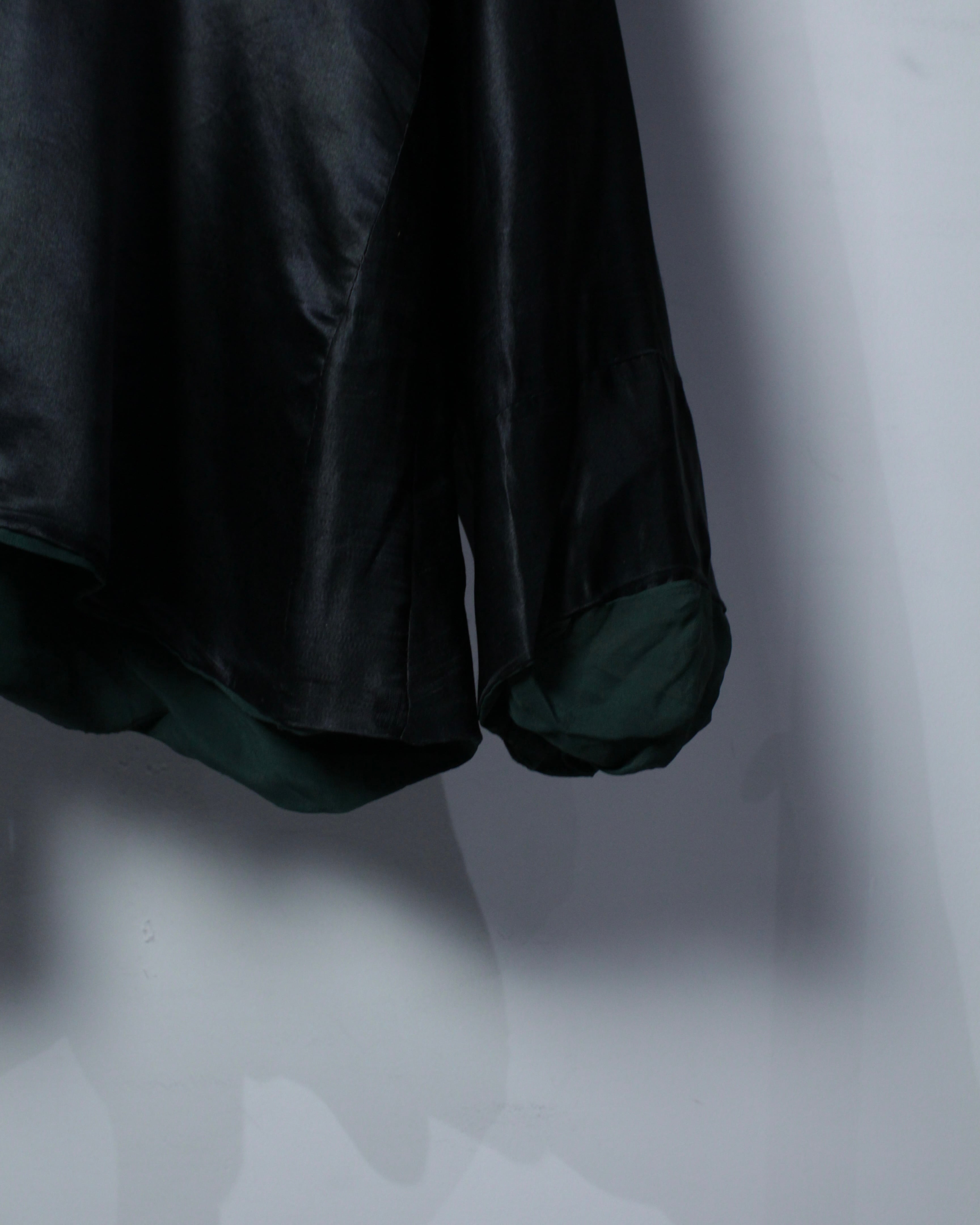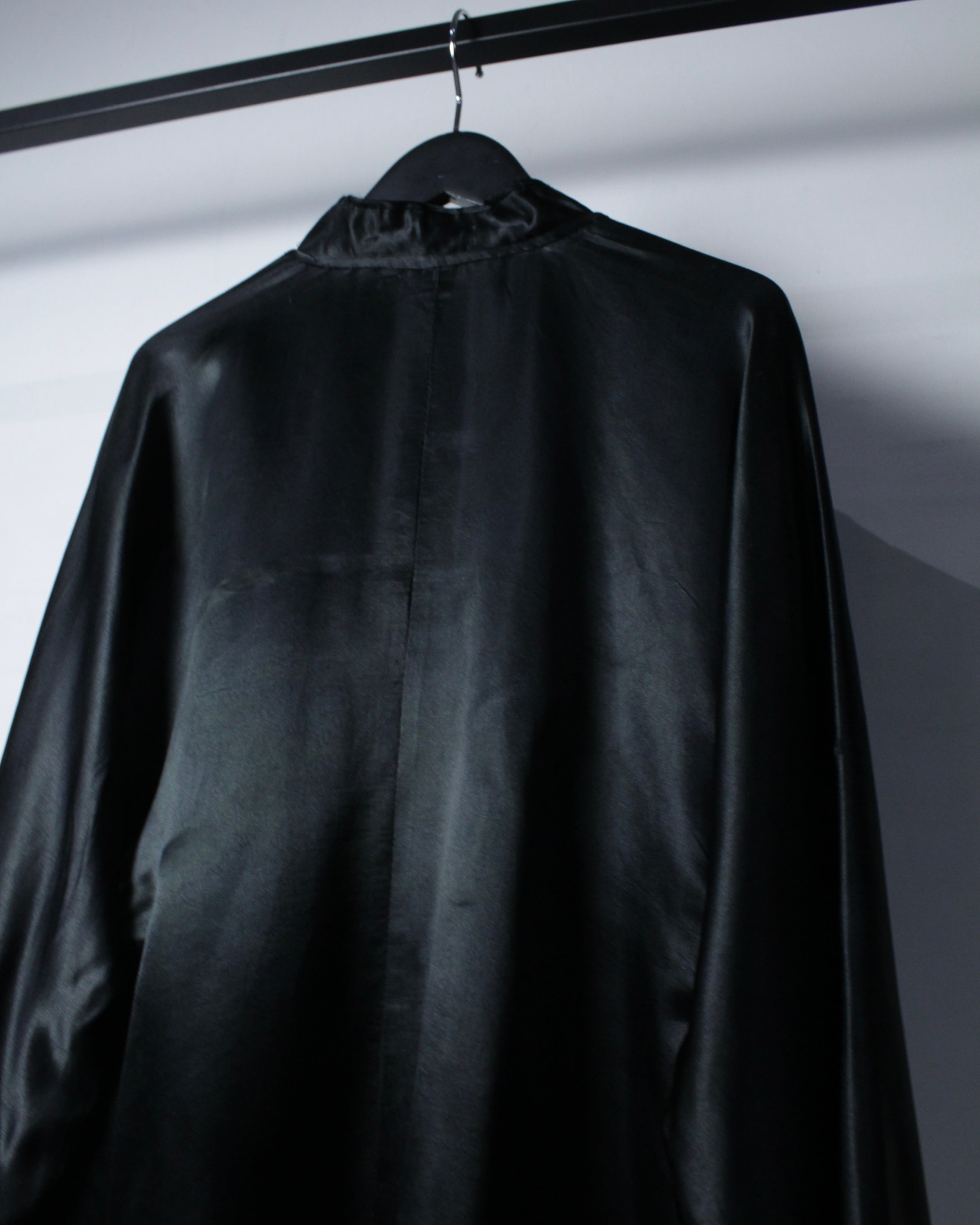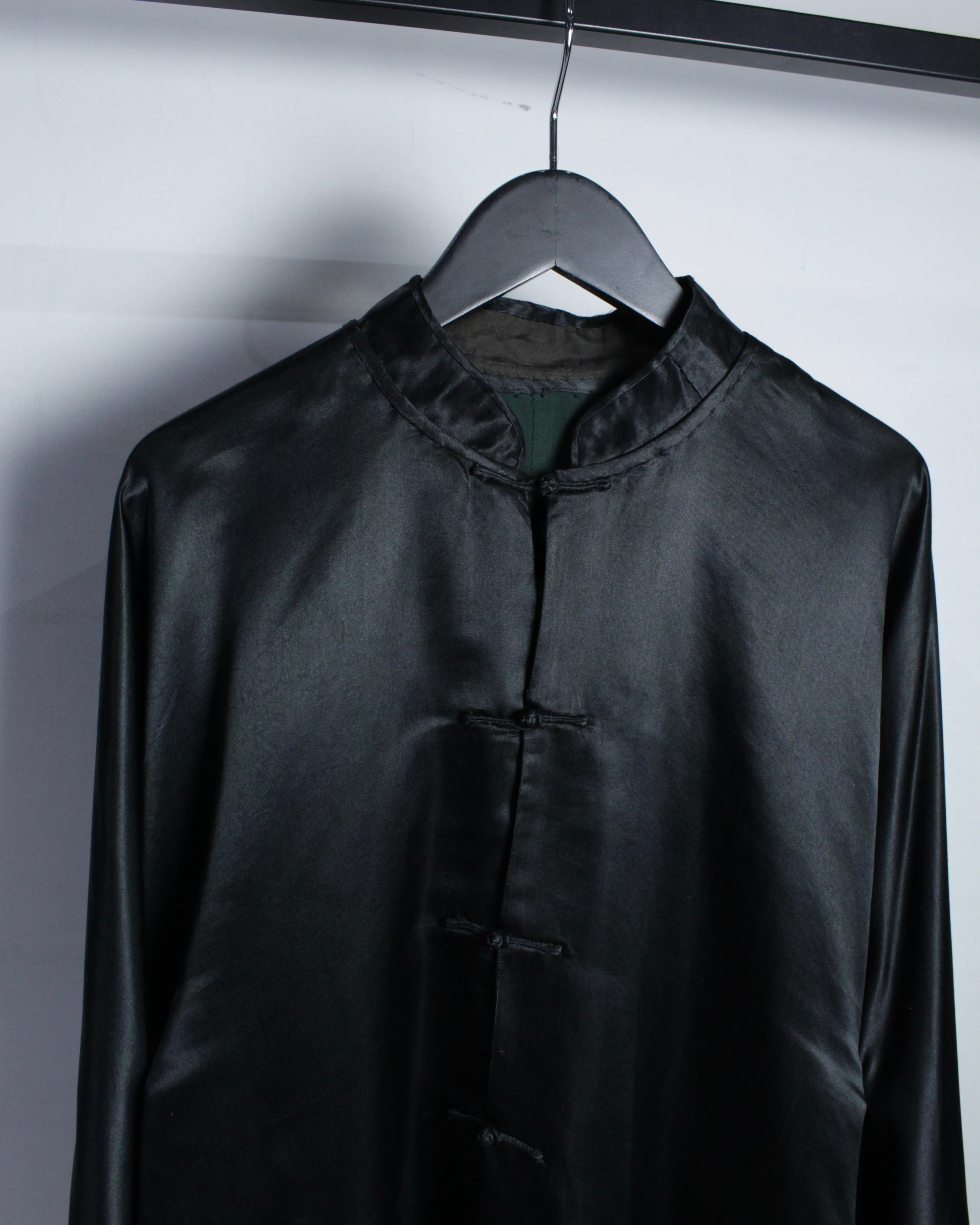 フロントにはチャイナ特有のボタンを採用し、マオカラーでスッキリとさせた洗練されたルックスも◎ 加えて、サイドに生地を足すことで横への広がりを持たせ、着用時には独特なドレープを生むデザインに仕上げられています。